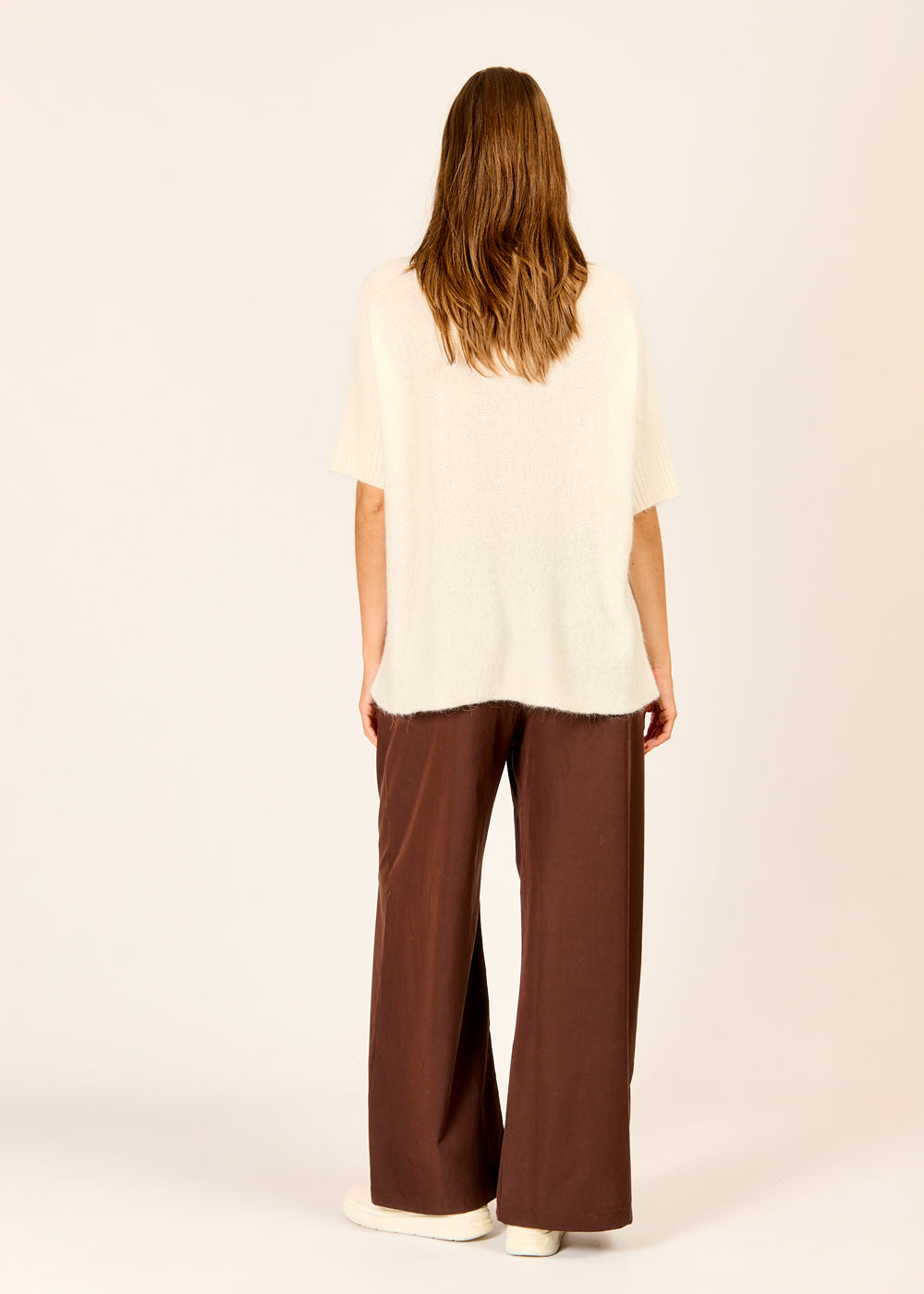In der zeitlosen Eleganz dieses Pullovers in einem cremigen Weiß findet Gemütlichkeit eine stilvolle Ausdrucksform. Die weite Passform und die kurzen Ärmel schaffen eine moderne Silhouette, die mühelos kombiniert werden kann. Ein vielseitiges Kleidungsstück, das sowohl für entspannte Momente als auch für schicke Anlässe perfekt geeignet ist.