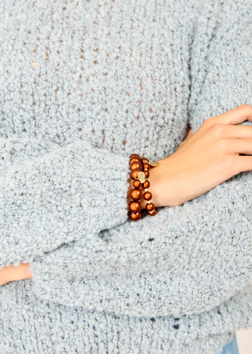 Der Bouclé-Pullover in zartem celeste verleiht jedem Outfit eine frische und zugleich edle Note. Seine charakteristische, strukturierte Oberfläche macht ihn zu einem besonderen Blickfang mit kuscheligem Wohlfühlfaktor. Der lockere Schnitt sorgt für lässige Eleganz und hohen Tragekomfort. Perfekt kombiniert zu Jeans oder Rock wird er zum stilvollen Begleiter für moderne Alltagslooks.