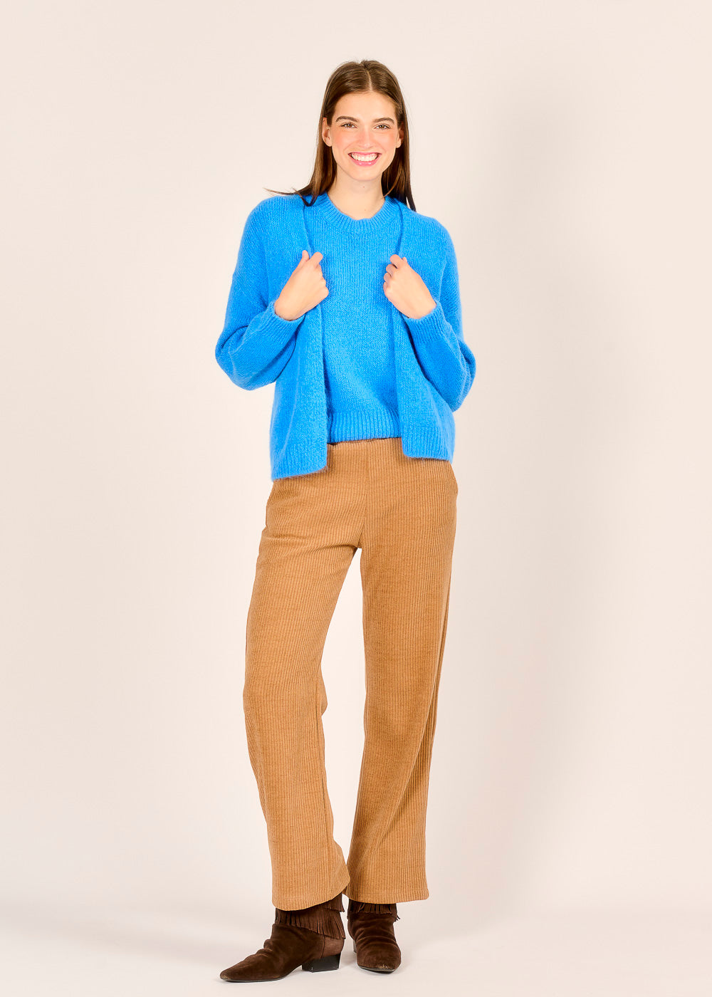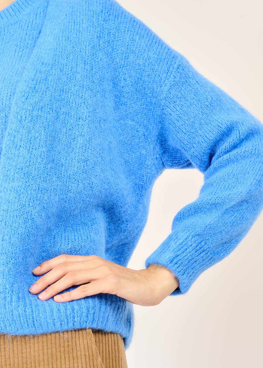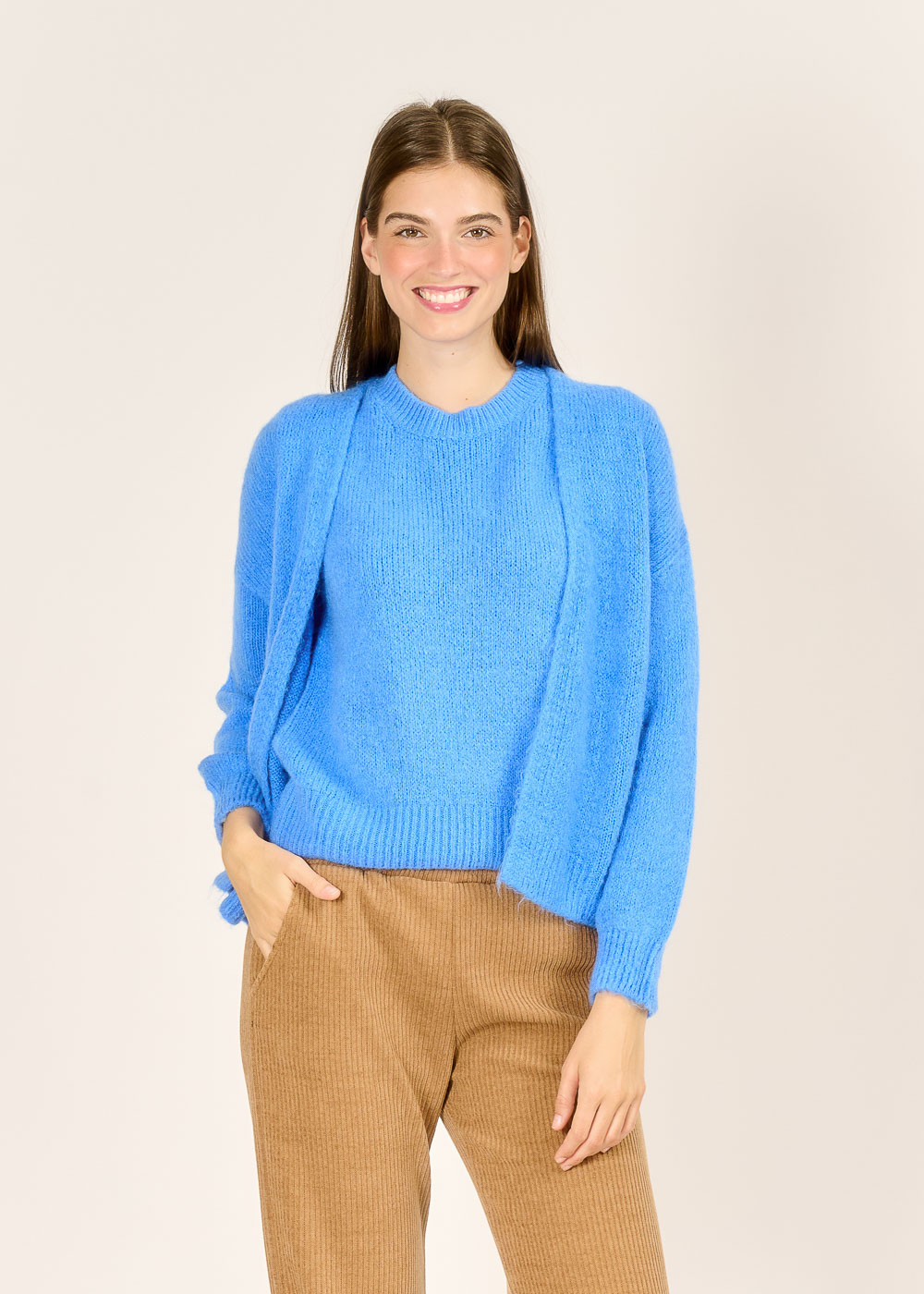 Das ist aber ein schönes Twinset! Mit diesem Set in strahlendem Himmelblau bist du der Hingucker. Die Mischung mit Alpaka macht das Material herrlich weich und flauschig und sorgt für einen luxuriösen Tragekomfort. Die Strickjacke und das passende Stricktop lassen sich auch einzeln tragen und vielseitig kombinieren.