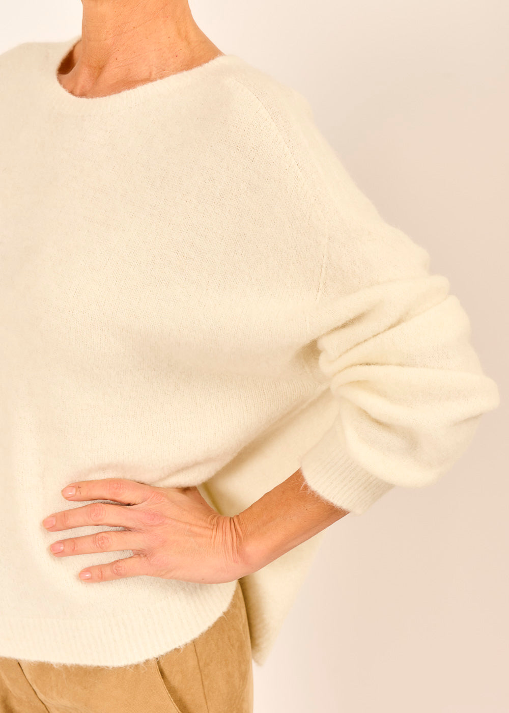 Unser beliebter Wohlfühlpullover mit alpakaweicher Haptik umhüllt dich mit Leichtigkeit. Ob lässig zu Jeans oder stilvoll zur Pantalone getragen – dieser Pullover in der Farbe Panna passt sich mühelos an. Ein zeitloses Lieblingsstück für alle, die den leisen und hochwertigen Look lieben.