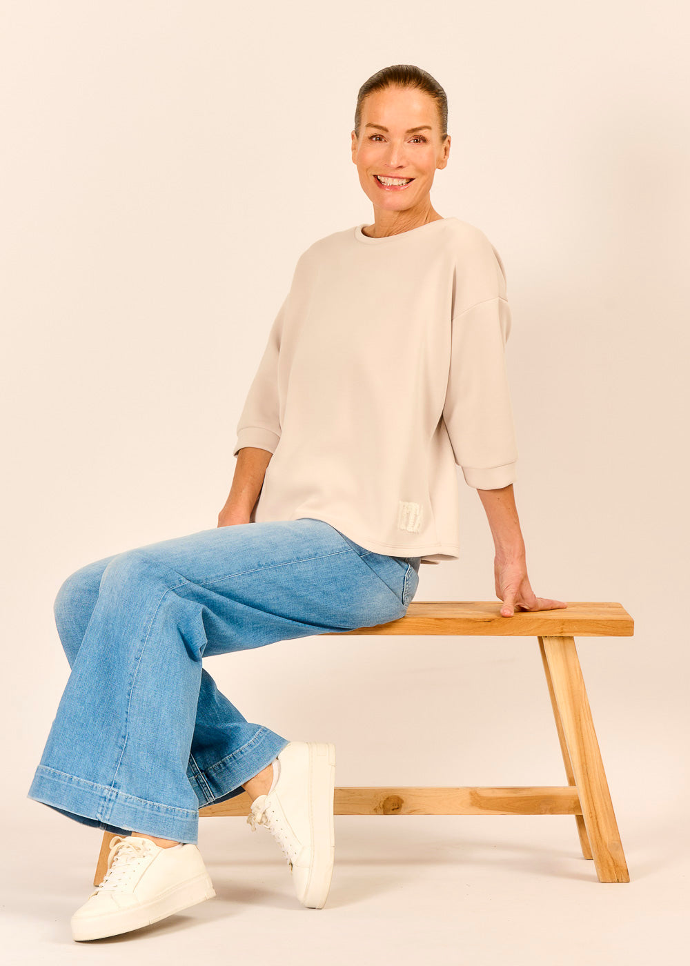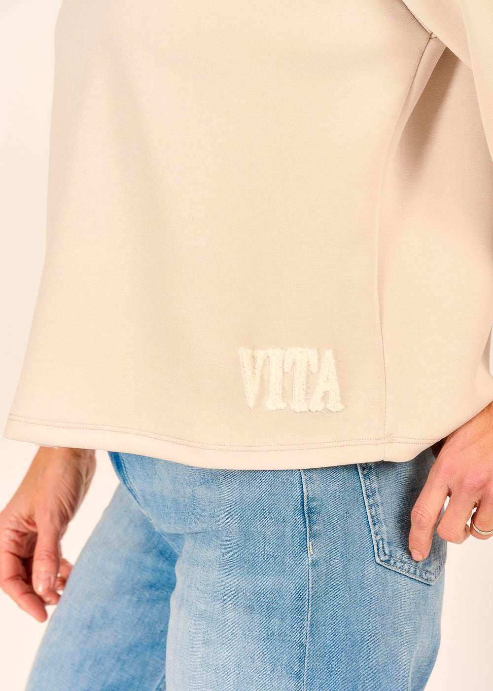 Das lässige Viskose-Shirt mit Vita-Schriftzug überträgt die Lebensfreude Italiens direkt in deinen Look. Perfekt für alle, die den sportlichen Stil lieben und sich auf die Leichtigkeit des Frühlings freuen.