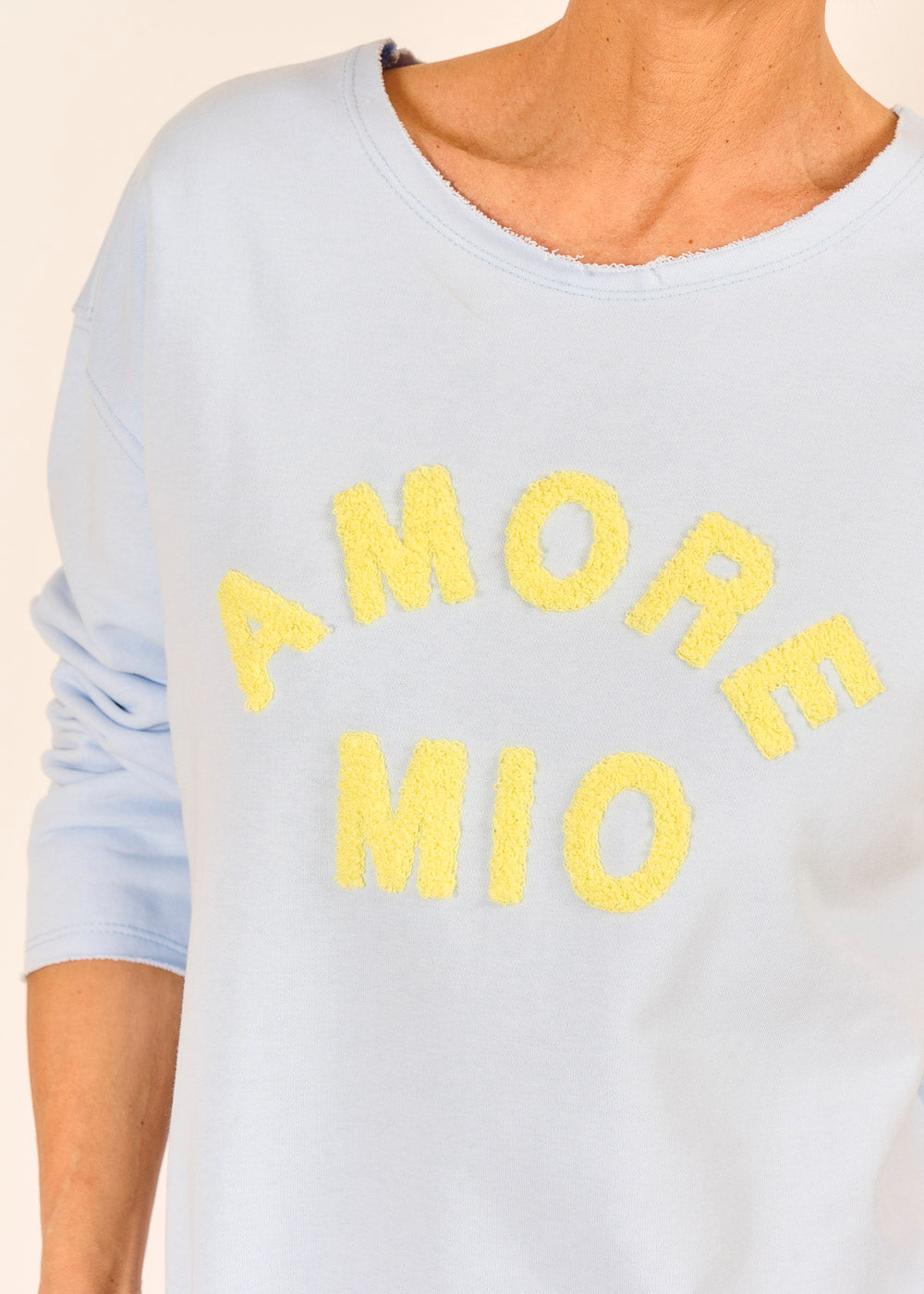 Das lässige Sweatshirt bringt italienische Herzlichkeit direkt in deinen Alltag. Die fröhliche Amore-Mio-Stickerei ist eine Liebeserklärung an das Leben. Der entspannte Schnitt und die weiche Baumwolle sorgen für ein angenehmes Tragegefühl.