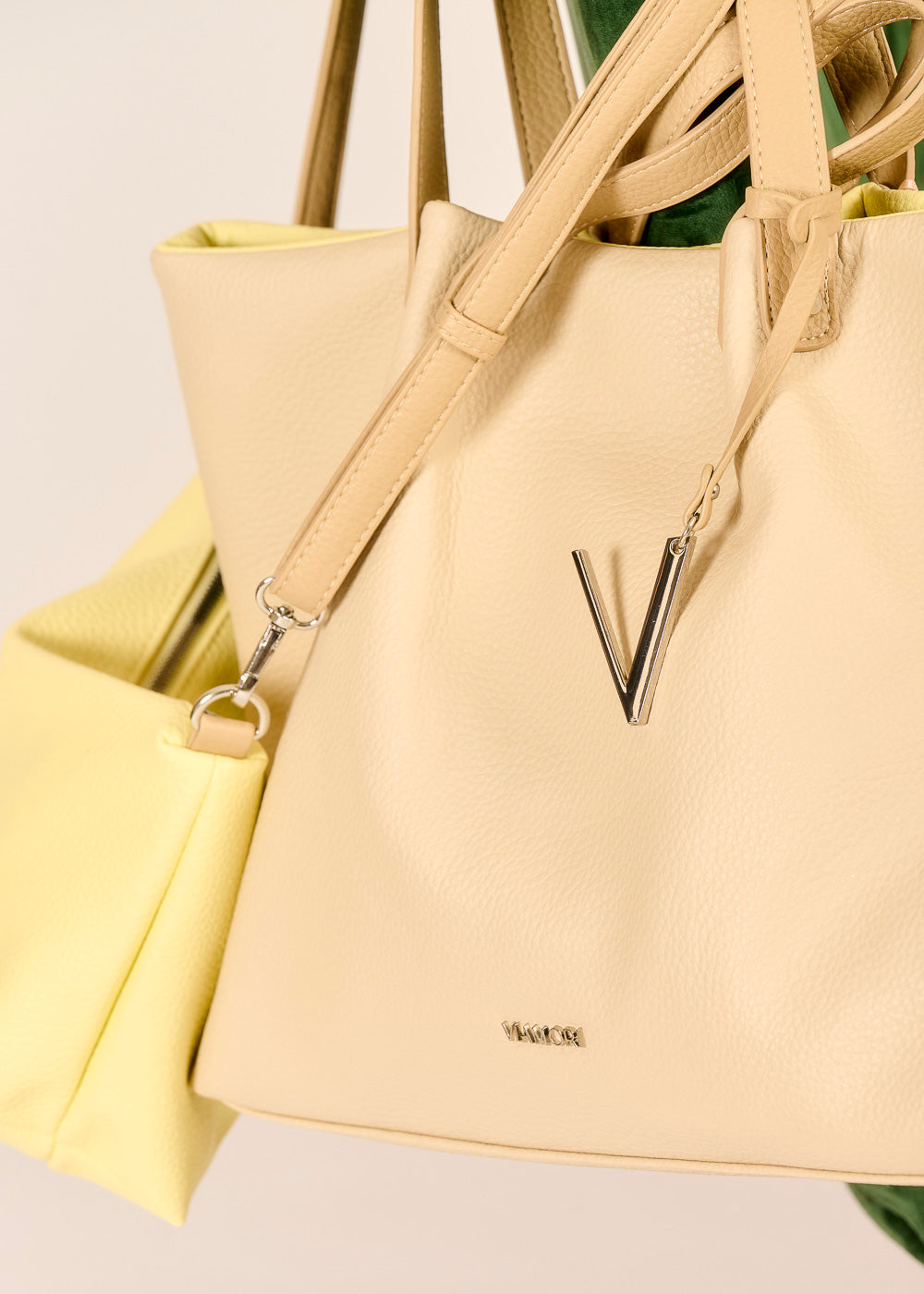 Dieser Shopper ist ein überraschendes Multitalent und dein praktischer und stilvoller Begleiter für den Alltag. Das neutrale Beige passt zu jedem Outfit, während die Innentasche einen überraschenden Farbtupfer setzt und gute Laune garantiert. Die clevere Innentasche ist nicht nur ein Ordnungwunder, sondern strahlt auch einzeln.