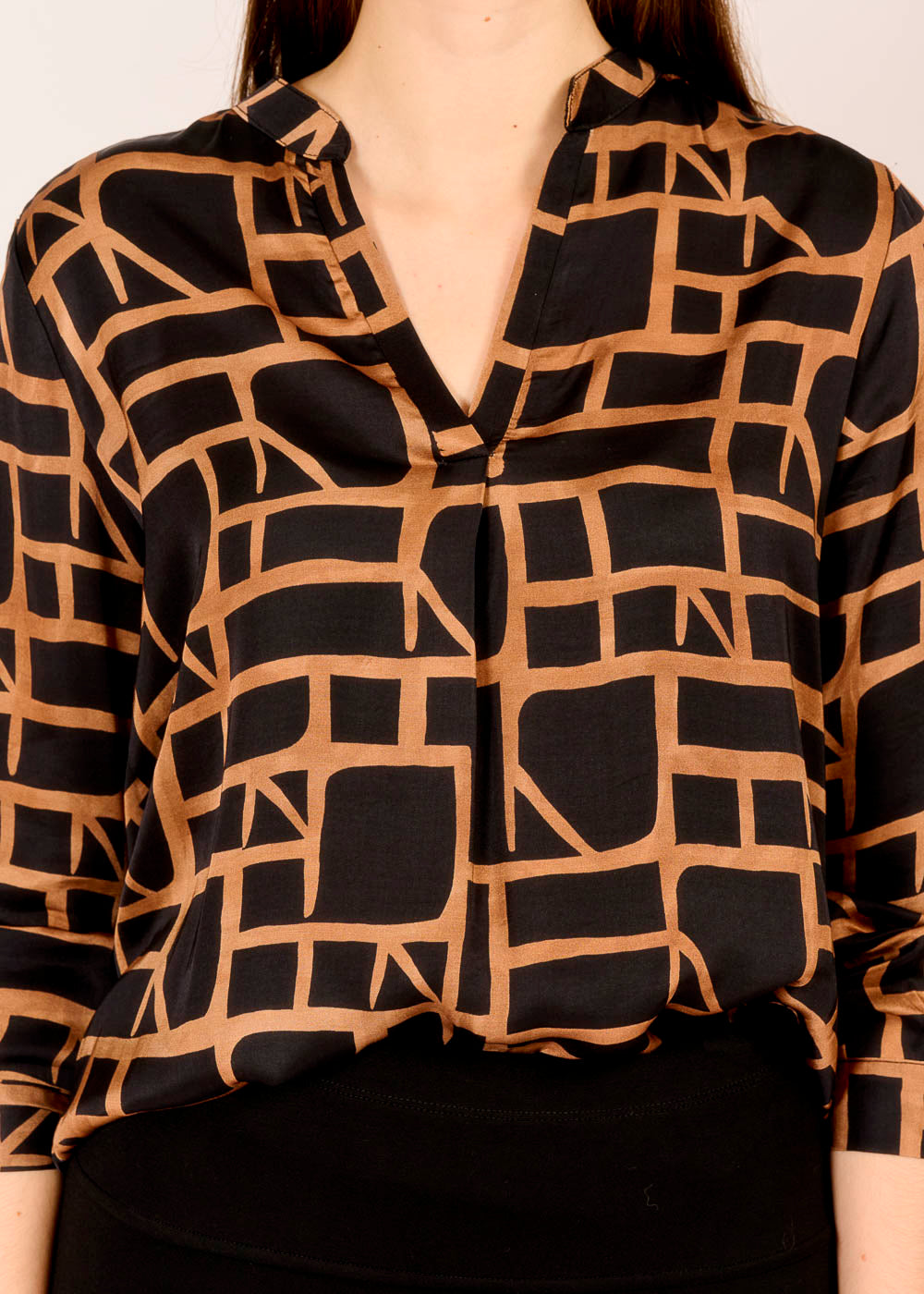 Diese edle Satin-Tunika wird dank fließendem Schnitt und modernem Muster zum absoluten Hingucker für die Festtage. Die Bluse verleiht aber auch jedem Alltagslook eine stilvoll feminine Note.