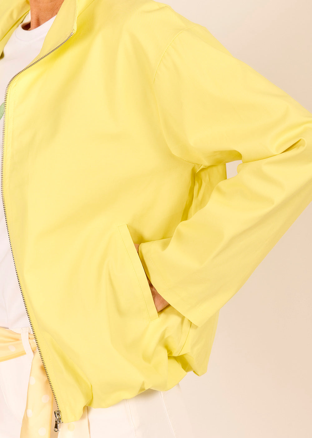 Diese gelbe Jacke ist wie ein Sonnenstrahl zum Anziehen. Kombiniert mit weißem Shirt und Denim entsteht der perfekte Look für den Frühlingsspaziergang. Der geschoppte Bund sorgt für eine sportliche und gleichzeitig trendbewusste Ausstrahlung.