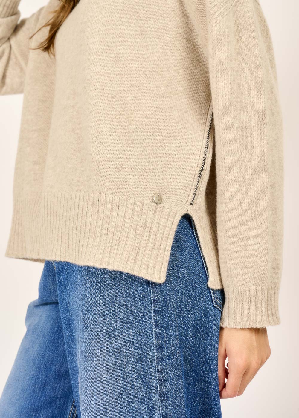 Der Pullover mit Ziernaht verbindet schlichte Eleganz mit raffinierten Details. Die feine Naht setzt einen dezenten Akzent und verleiht dem zeitlosen Design eine moderne Note. Sein weiches Material sorgt für angenehmen Tragekomfort und macht ihn zum perfekten Alltagsbegleiter. Ob lässig zur Jeans oder edel kombiniert – dieser Pullover passt zu jedem Look.