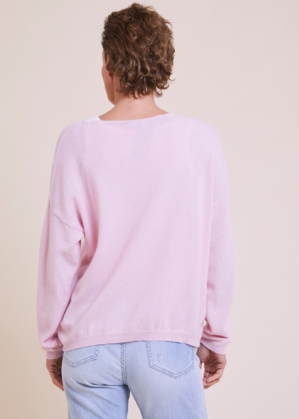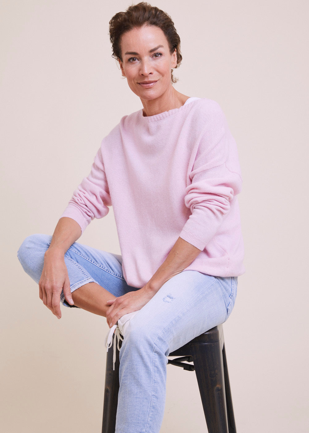 Feinstrickpullover mit U-Boot Ausschnitt und überschnittenen Schultern. Mit großartigen Strickdetails. Rippenbündchen am Saum und an den Armen. Länge:62cm.