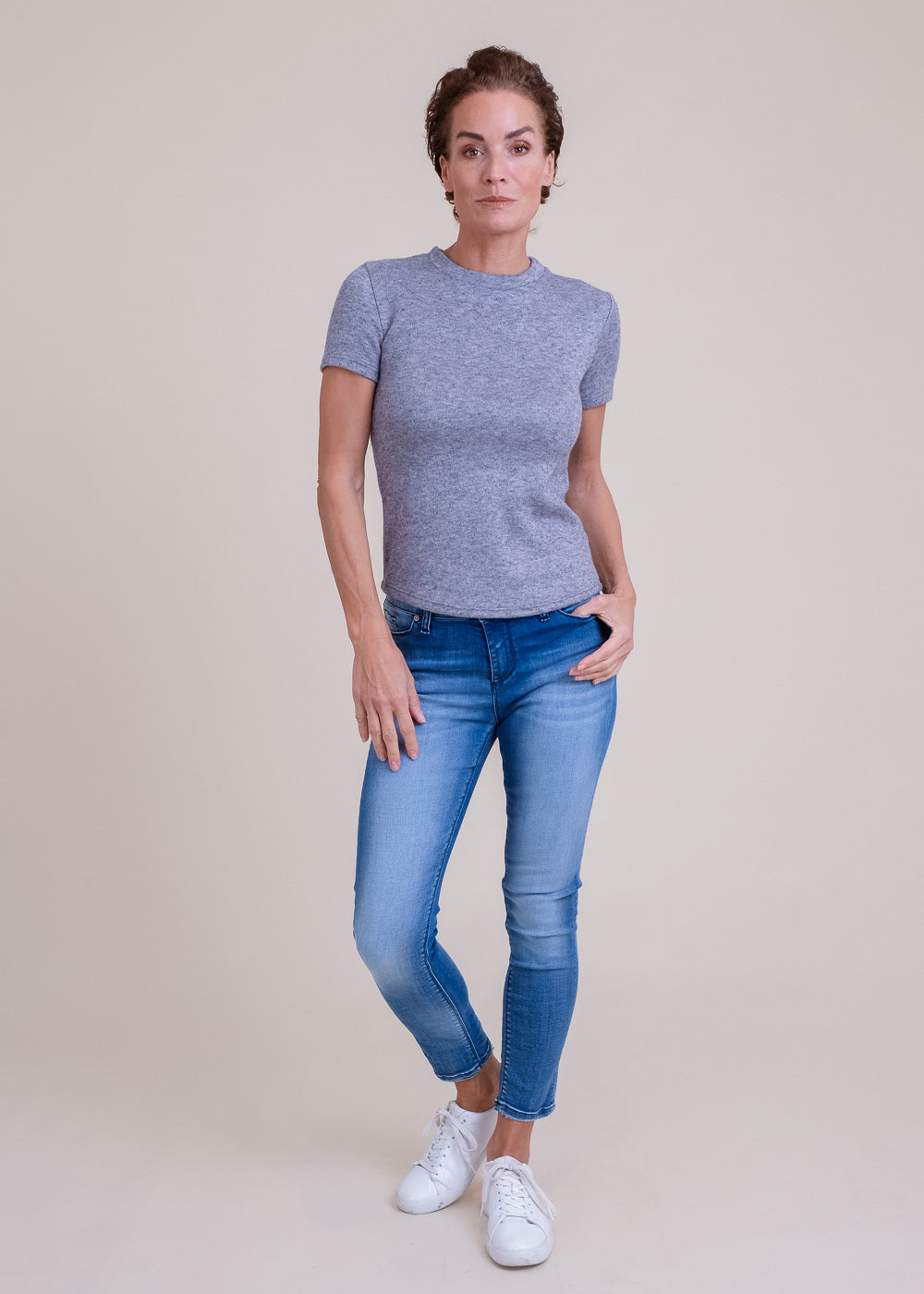 Hoch geschlossenes Halbarmshirt aus einem Kuschelweichen Material. Schmal geschnitten. Ein stilvolles Basic. Länge:58cm.