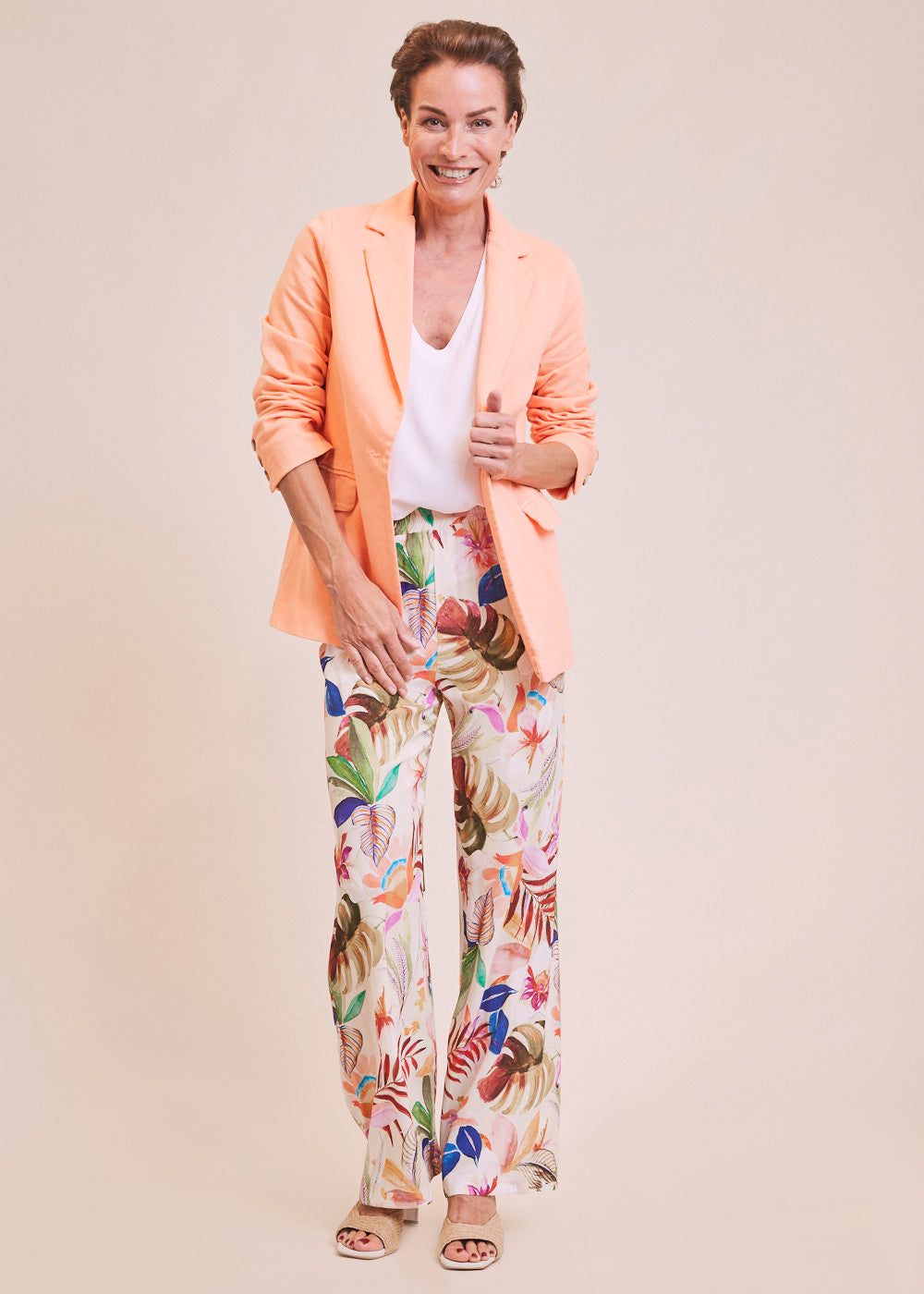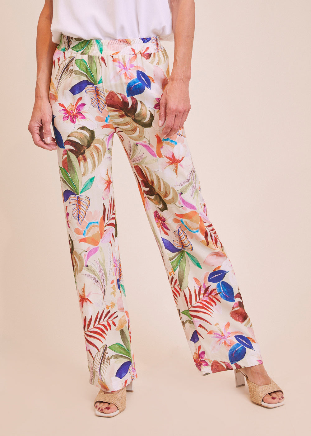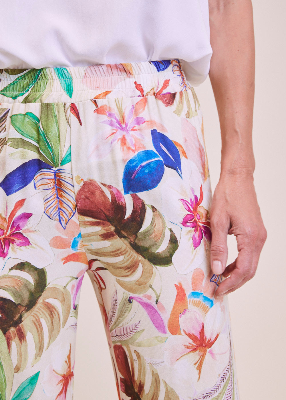Die perfekte Hose für angenehme Sommertage. Sie hat eine bequeme Passform durch den Gummizug. Durch das großartige Viskosematerial fließt diese Hose besonders schön am Körper und ist daher perfekt für warme Temperaturen geeignet. Das besondere Muster lässt sich wunderbar mit unserem Viskoseshirt kombinieren. Länge:105cm .