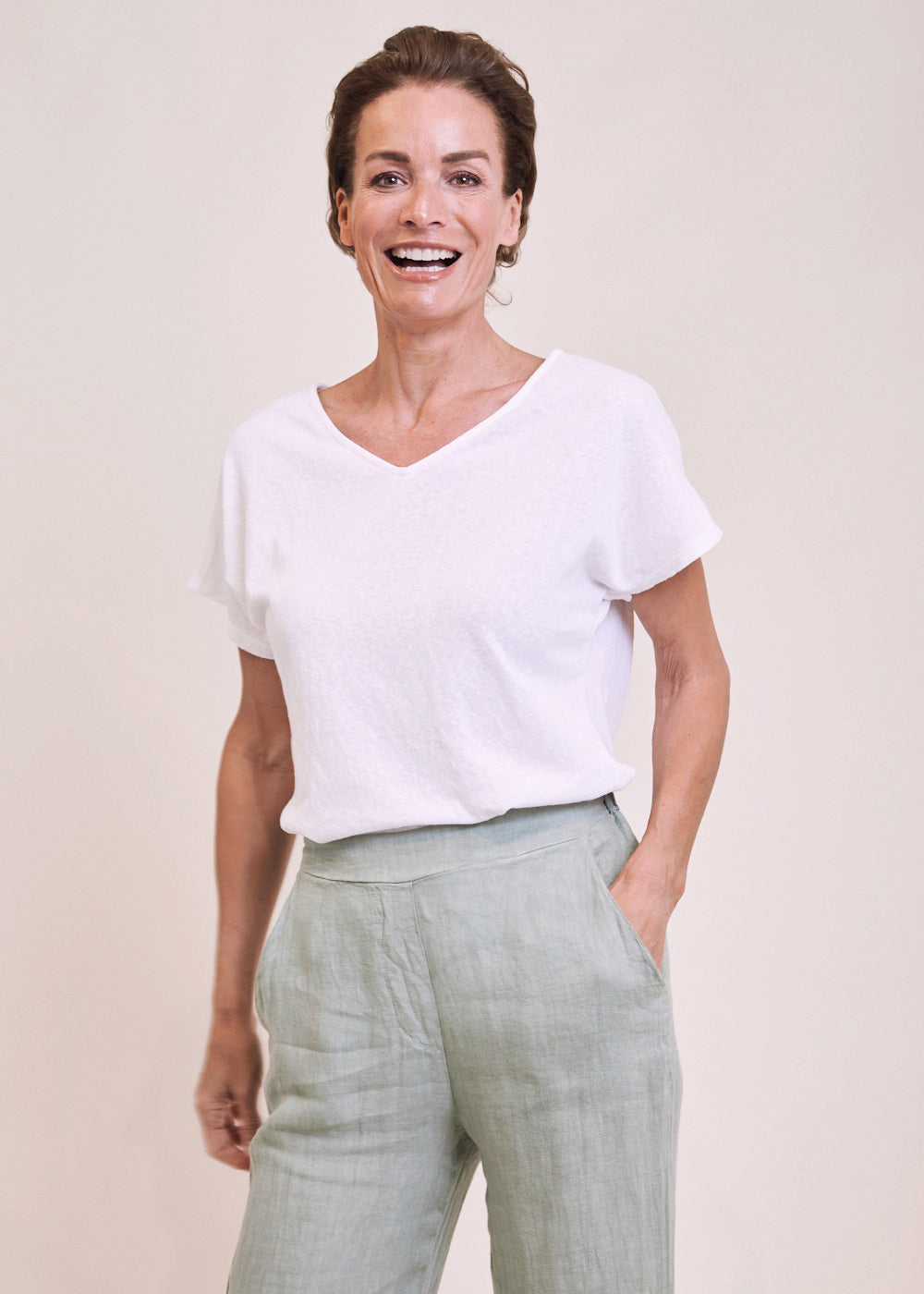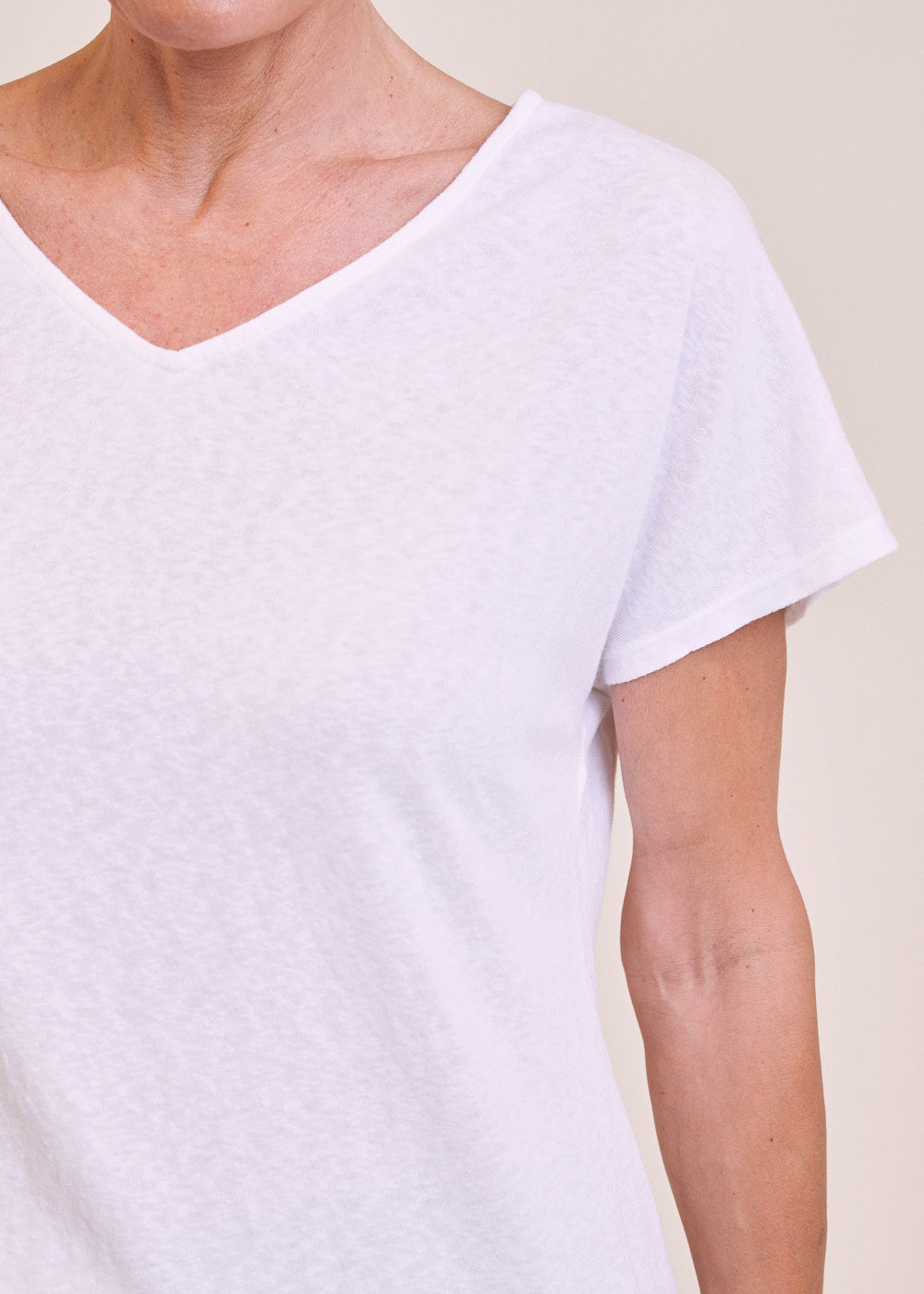 Unser Frühlings-Shirt in Flammgarn-Optik ist der perfekte Kombinationsartikel für jedes Outfit. Wunderbar leicht umspielt der semi transparente Stoff deinen Körper und sorgt für ein angenehmes Tragegefühl auf der Haut. Das Bündchen befindet sich auf Hüfthöhe und garantiert für einen optimalen Sitz. Das Shirt ist gerade geschnitten und verfügt über einen V-Ausschnitt.