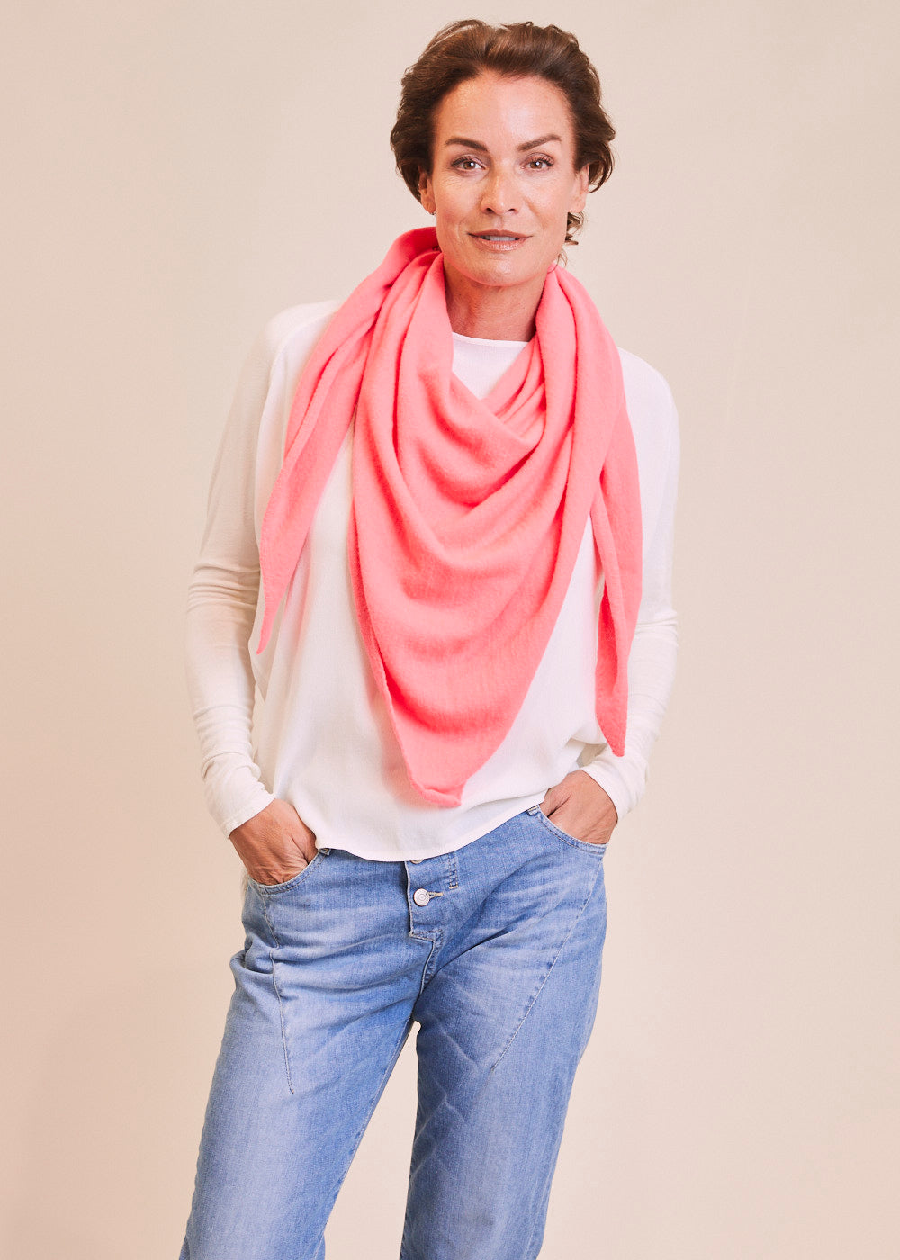 Unser geliebtes Dreieckstuch aus 100% feinsten Kaschmir. Für den absoluten Wohlfühl-Look. Es hat fein umsäuberte Kanten. Dieses besonders weiche Kaschmirteil lässt sich zum Kleid kombinieren, indem du es als Stola nutzt. Darüber hinaus ist es auch ein stylischer Begleiter zu unseren neuen Frühlings-Looks. Ein absoluter Alltagsheld, der jedem Outfit einen großartigen Touch verleiht.