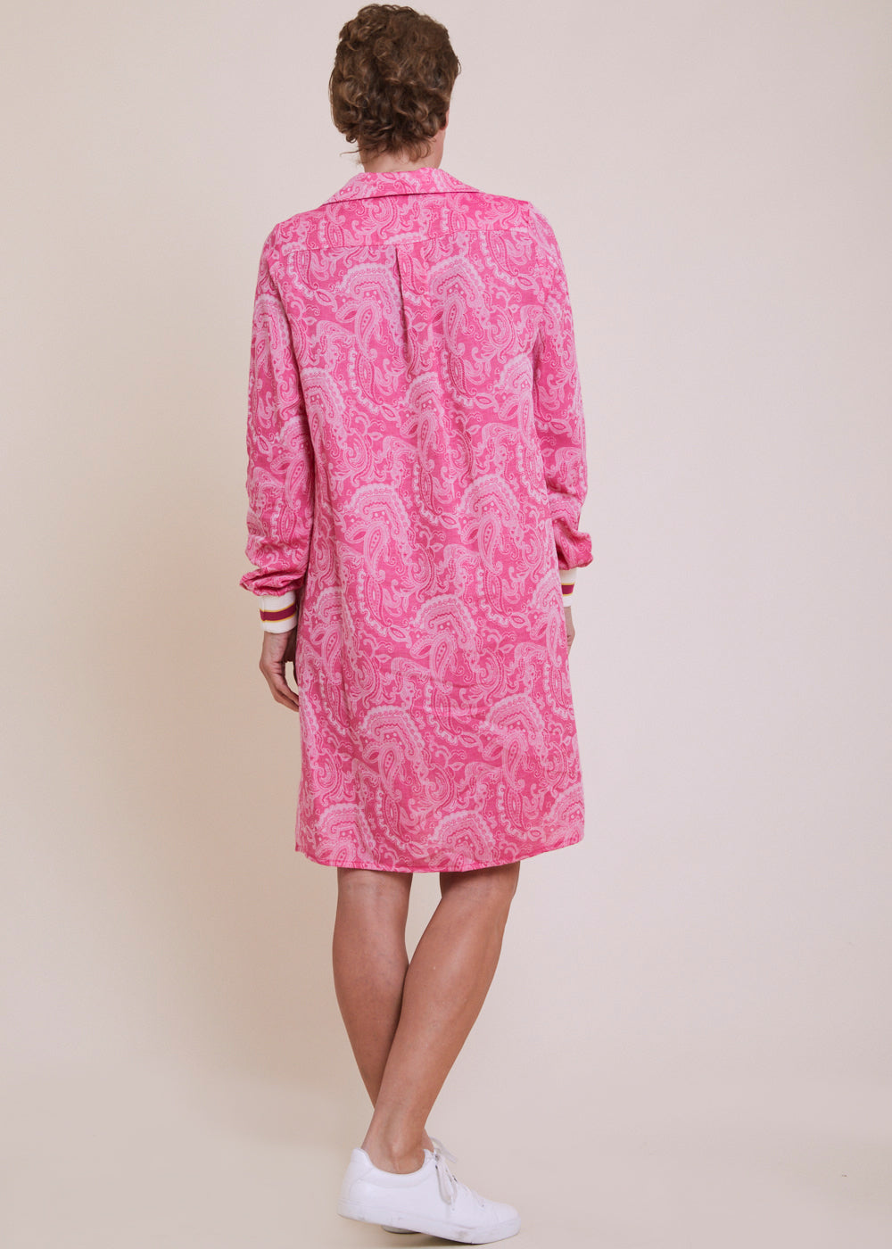 Lässig geschnittenes Kleid mit langen Armen aus einem Baumwoll und Viskosemix. Es hat besondere Rippenbündchen an den Armen, die dem Kleid einen großartigen Casual Touch verleihen. Mit einer Knopfleiste als Detail. Länge:100cm .