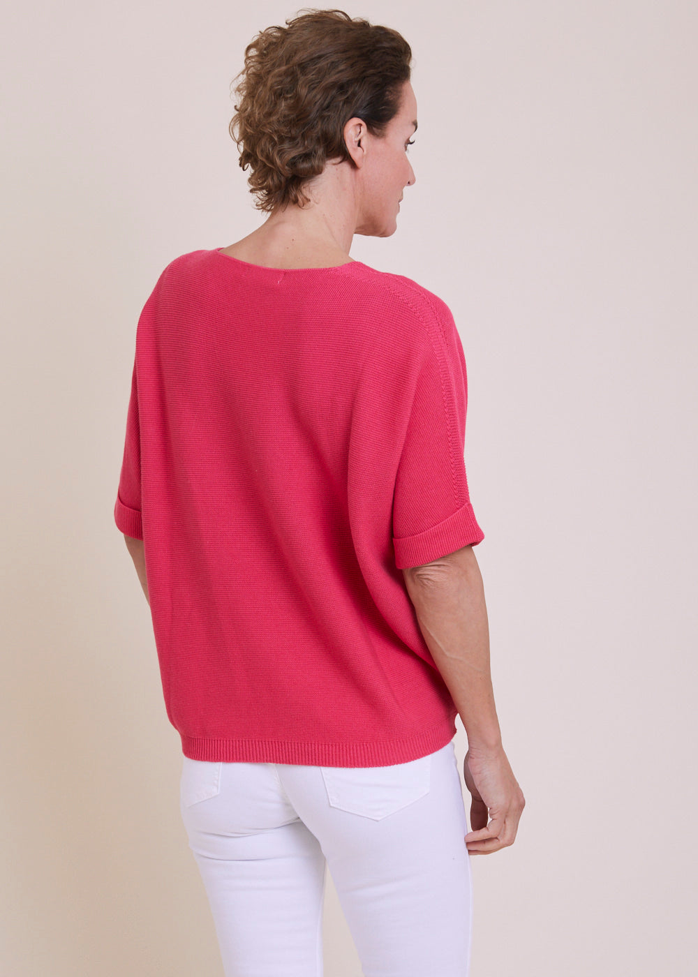 Locker geschnittener V-Ausschnitt mit dreiviertel Armen aus einem reinen Baumwollmaterial. Er hat Rippenbündchen an den Armen und am Saum. Einfach zum drüber werfen und wohlfühlen. Tragt diesen leichten Pullover gerne mit einer weißen Hose oder Jeans, mit Sneakern und einem unserer Basic Tops, um den Look zu vervollständigen.