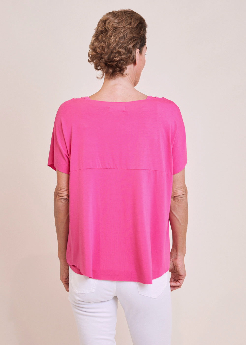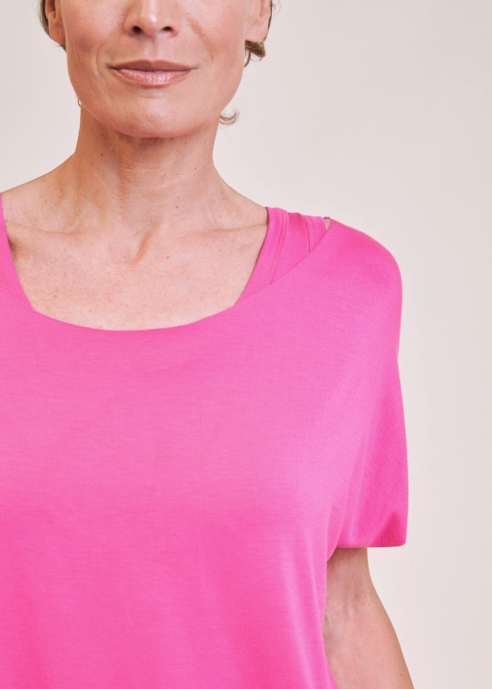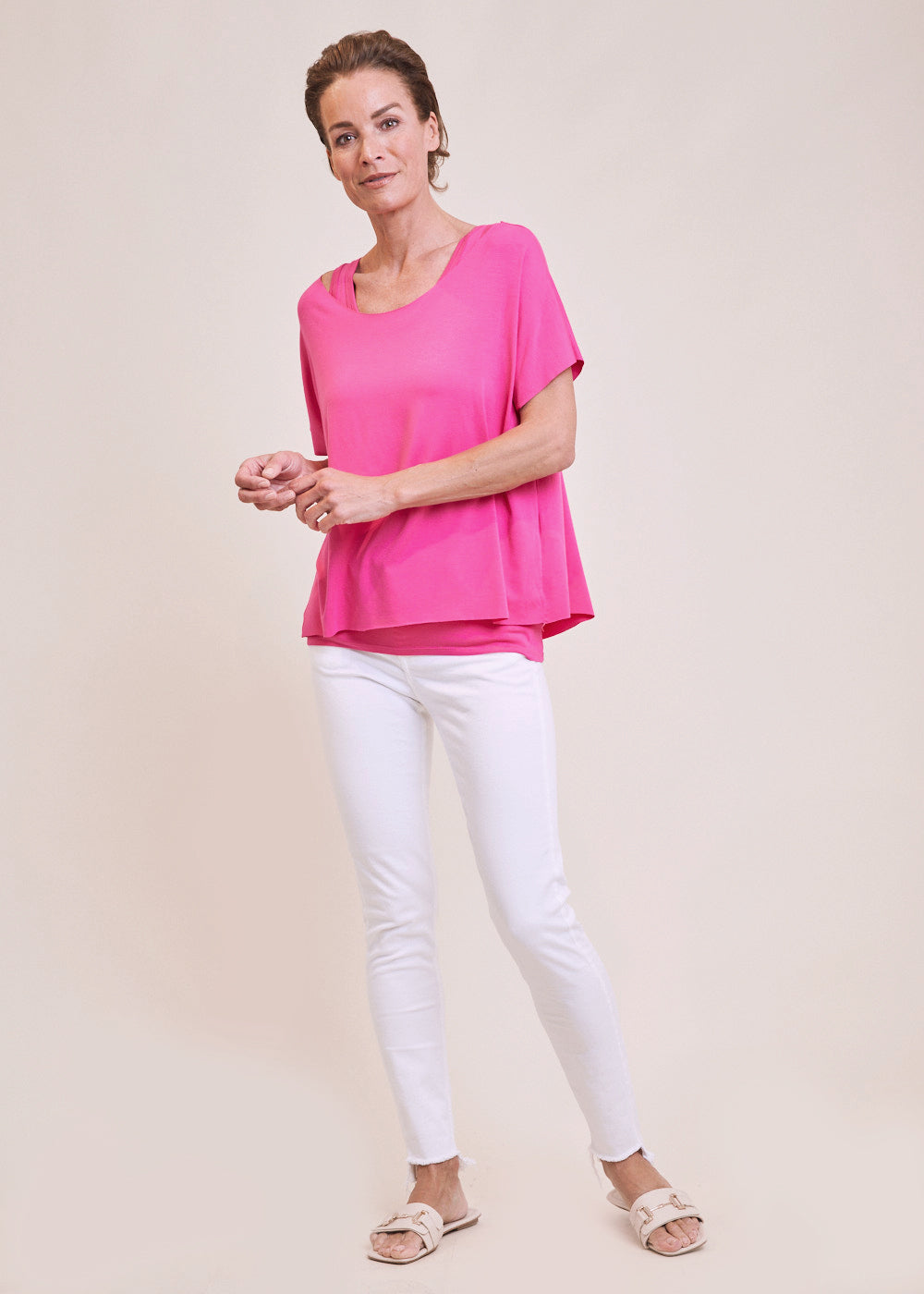 Unser Shirt-Set in strahlendem Fuchsia ist nicht nur ein toller Kombinationsartikel, sondern verleiht deinem auch Outfit auch einen sportiven, modernen Touch. Das Set, bestehend aus einem Top und einem Obershirt, schmiegt sich fließend um deinen Oberkörper und sorgt für ein angenehmes Tragegefühl auf der Haut.