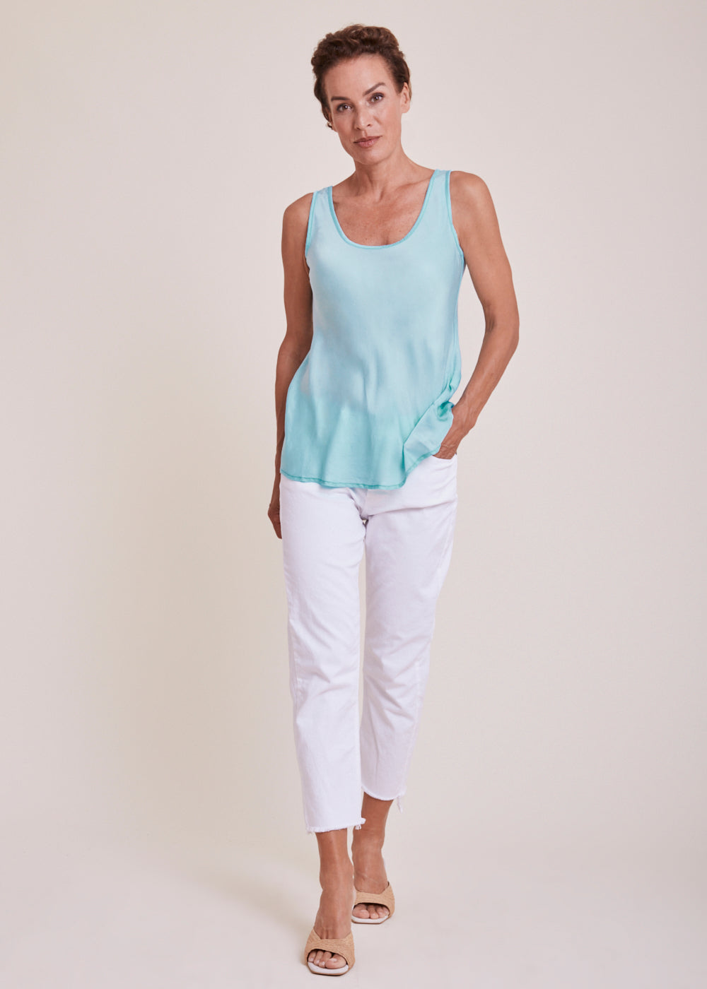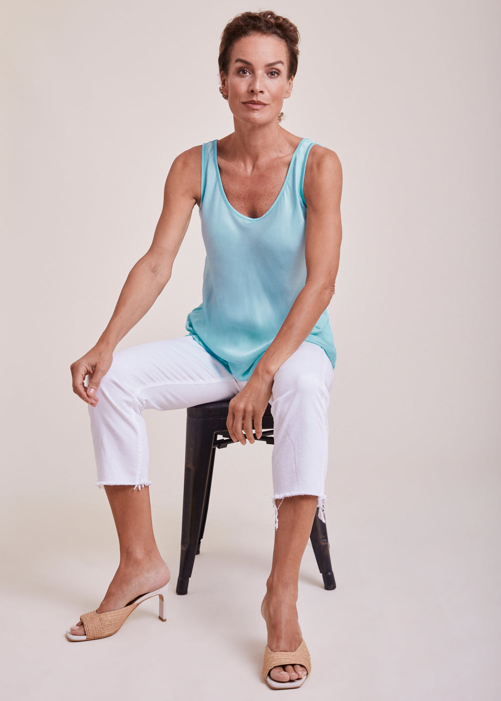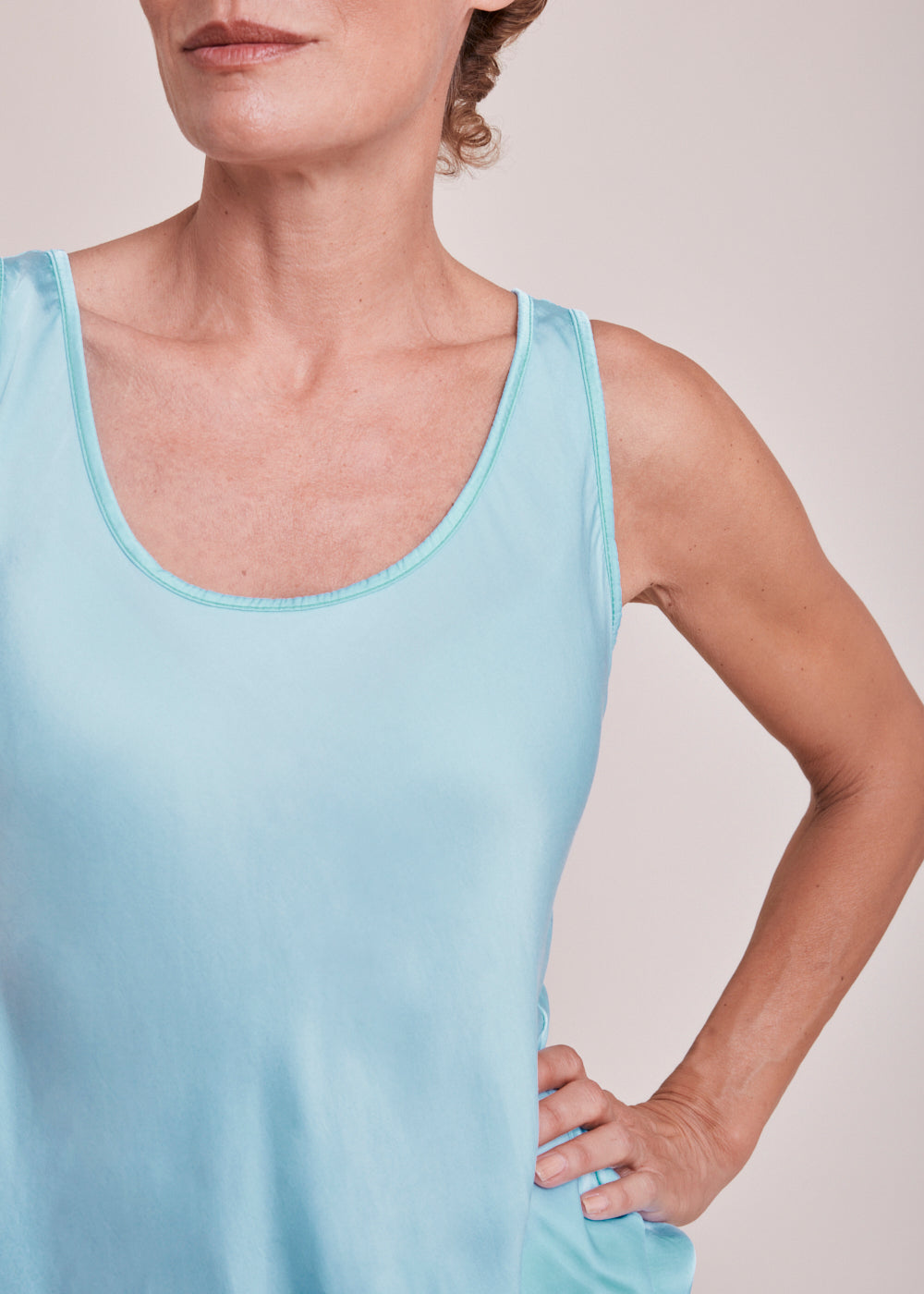 Sommerliches Satintop mit breiten Trägern in einem luftig-leichten Schnitt. Ein besonders schöner Kombinationsartikel, auch für elegantere Looks.
