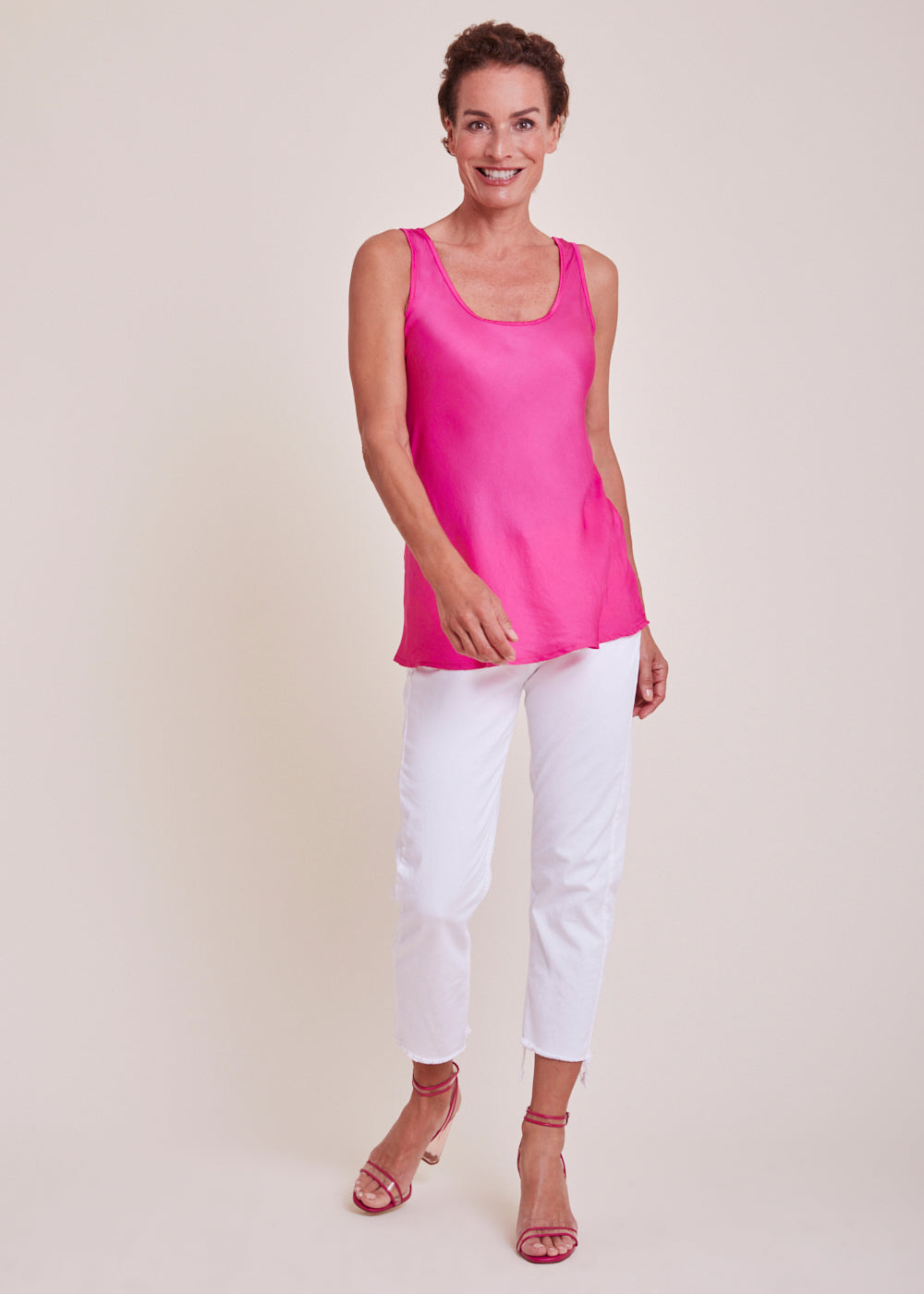Sommerliches Satintop mit breiten Trägern in einem luftig-leichten Schnitt. Ein besonders schöner Kombinationsartikel, auch für elegantere Looks.