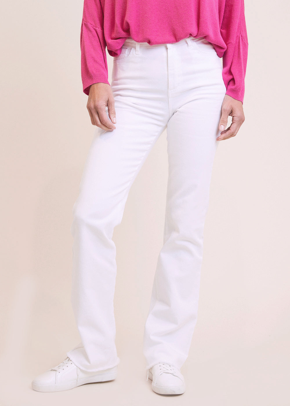 Tolle Boot-cut Jeans in Bianco-Ottico. Die Jeans hat eine mittlere Leibhöhe und aufgesetzte Taschen auf dem Gesäß. Sie lässt sich mit einem Knopf und einem verdeckten Reißverschluss schließen. Das Bein ist leicht ausgestellt.