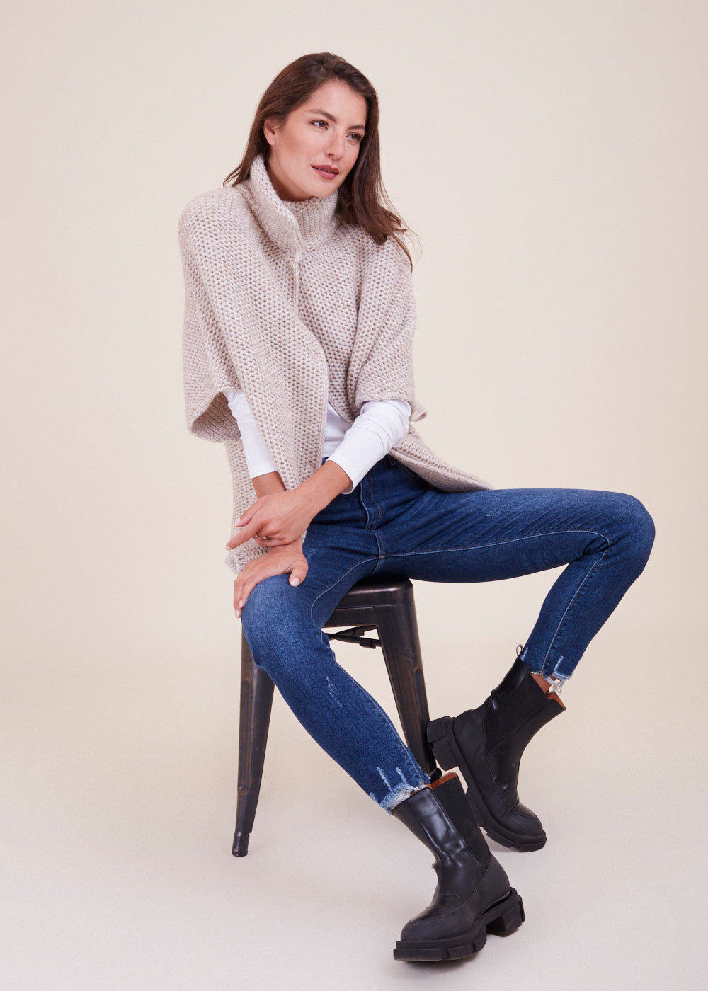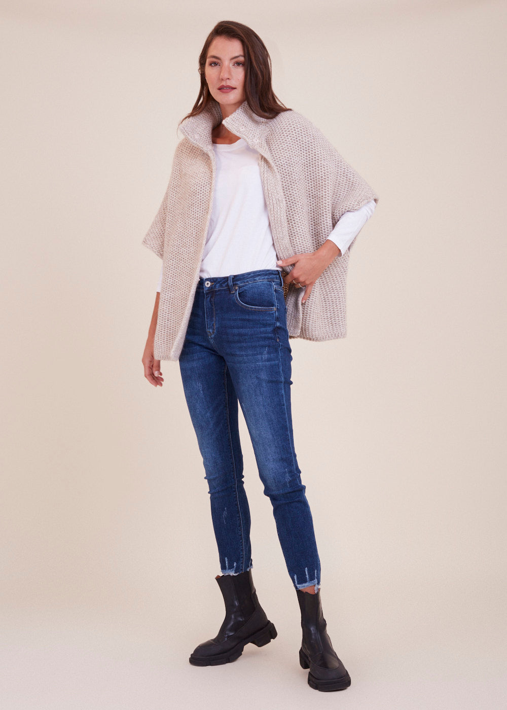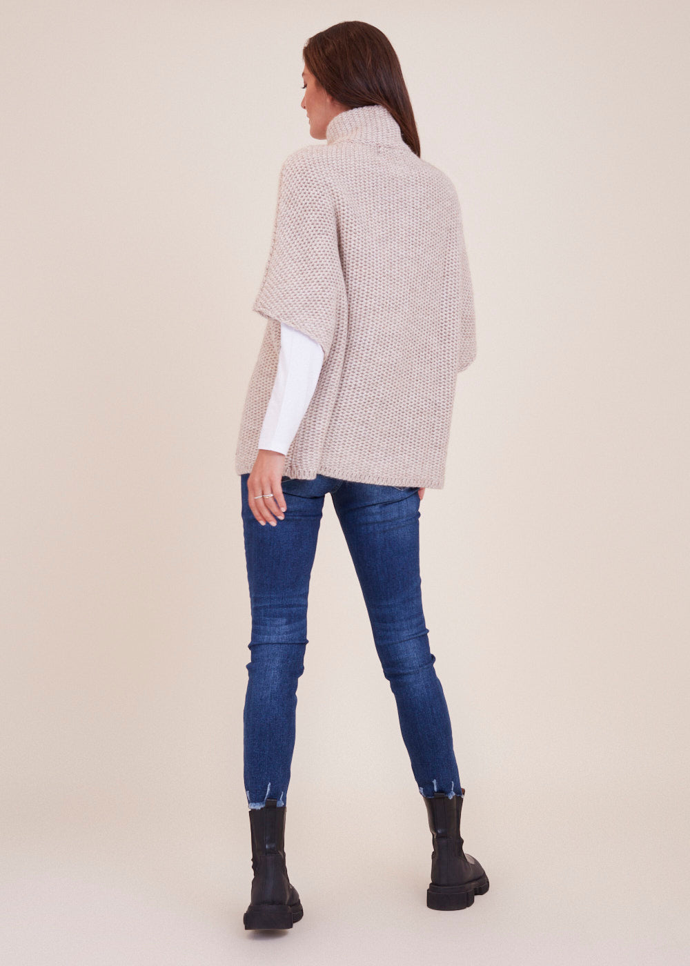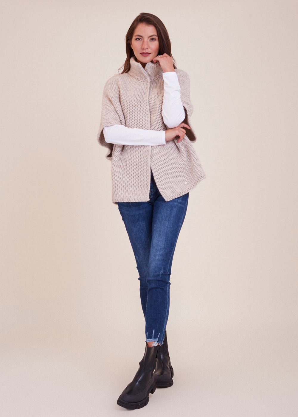 Unser geliebtes Strickcape mit kurzen Armen ist der perfekte Begleiter zum drüber werfen. Er ist mit einem Reißverschluss verschließbar und lässt sich daher auch perfekt geschlossen tragen. Durch sein Unifarbenes Design lässt er sich wunderbar kombinieren und macht dabei noch eine richtig gute Figur. Mit diesem extravaganten Strickstück sind wir für alle Fashion-Fälle gewappnet.