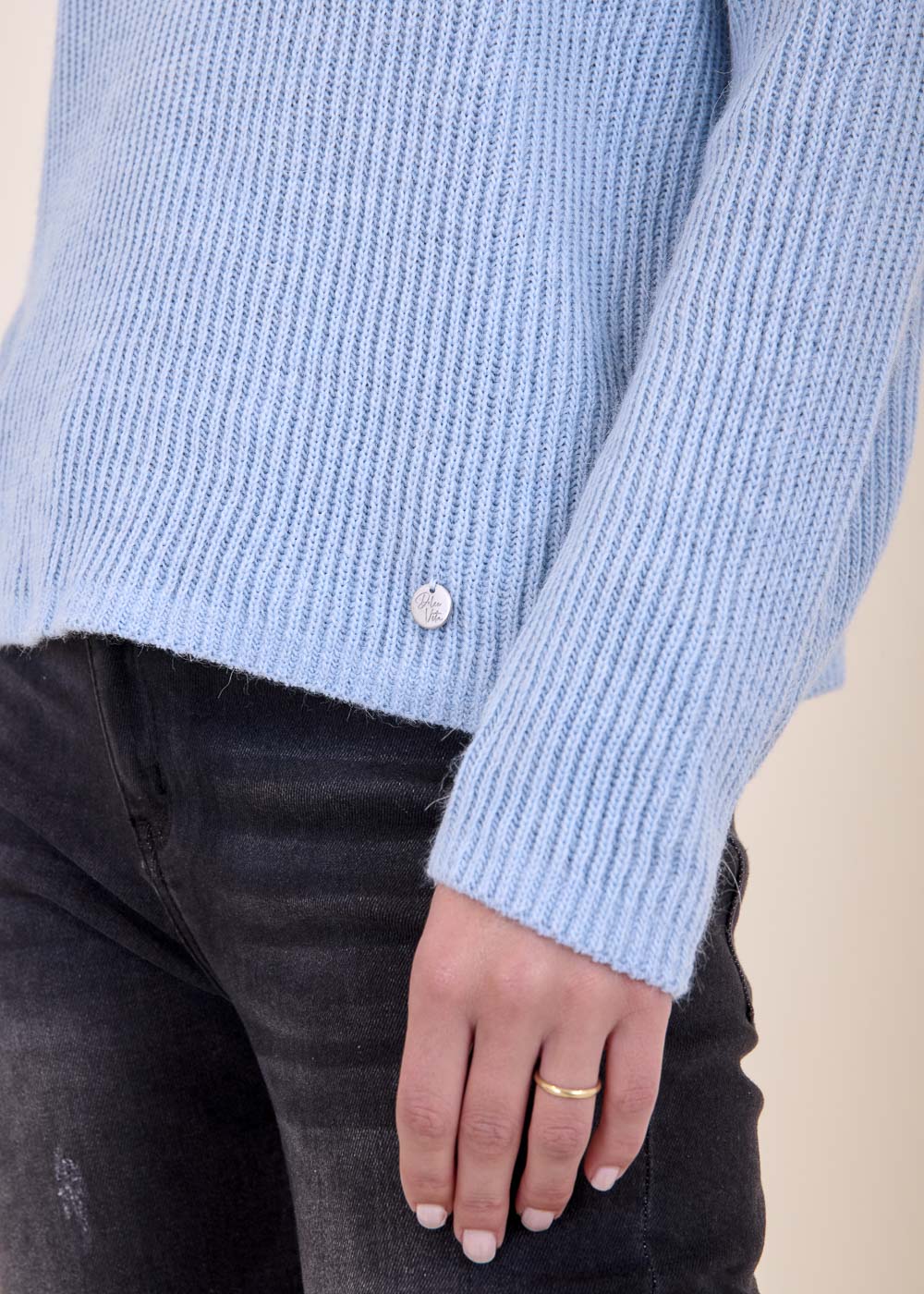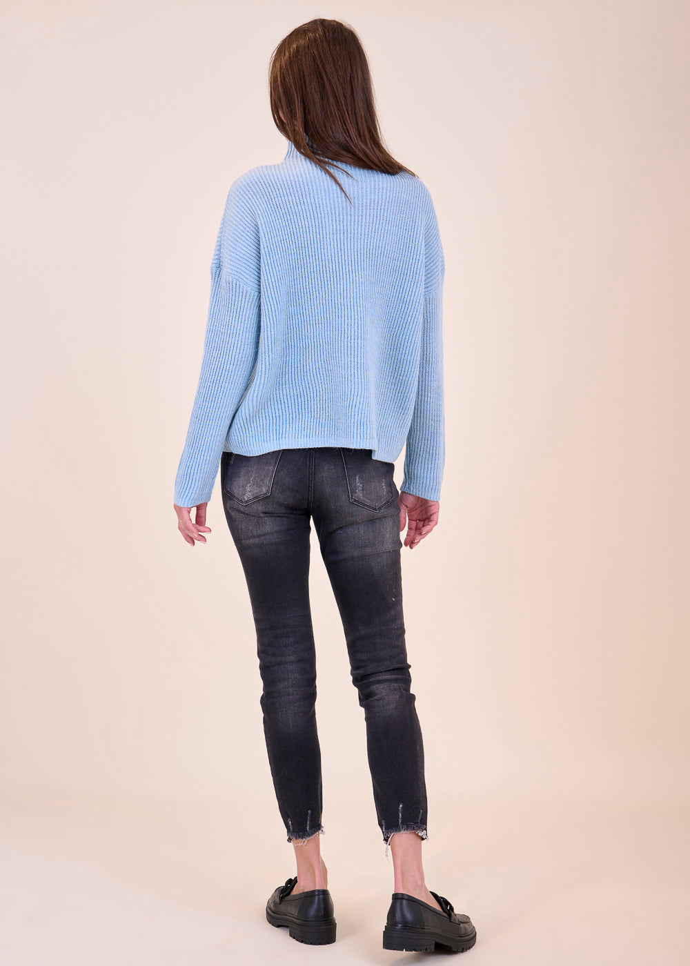 Strickpullover mit Rollkragen aus einem angenehmen Garn. Er hat überschnittene Schultern und eng geschnittene Arme. Der perfekte Pullover für kältere Tage.