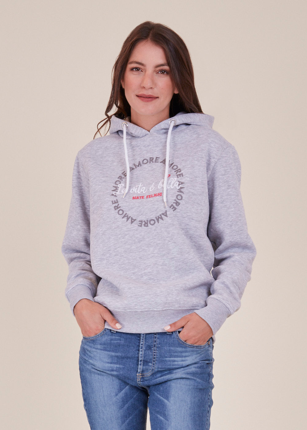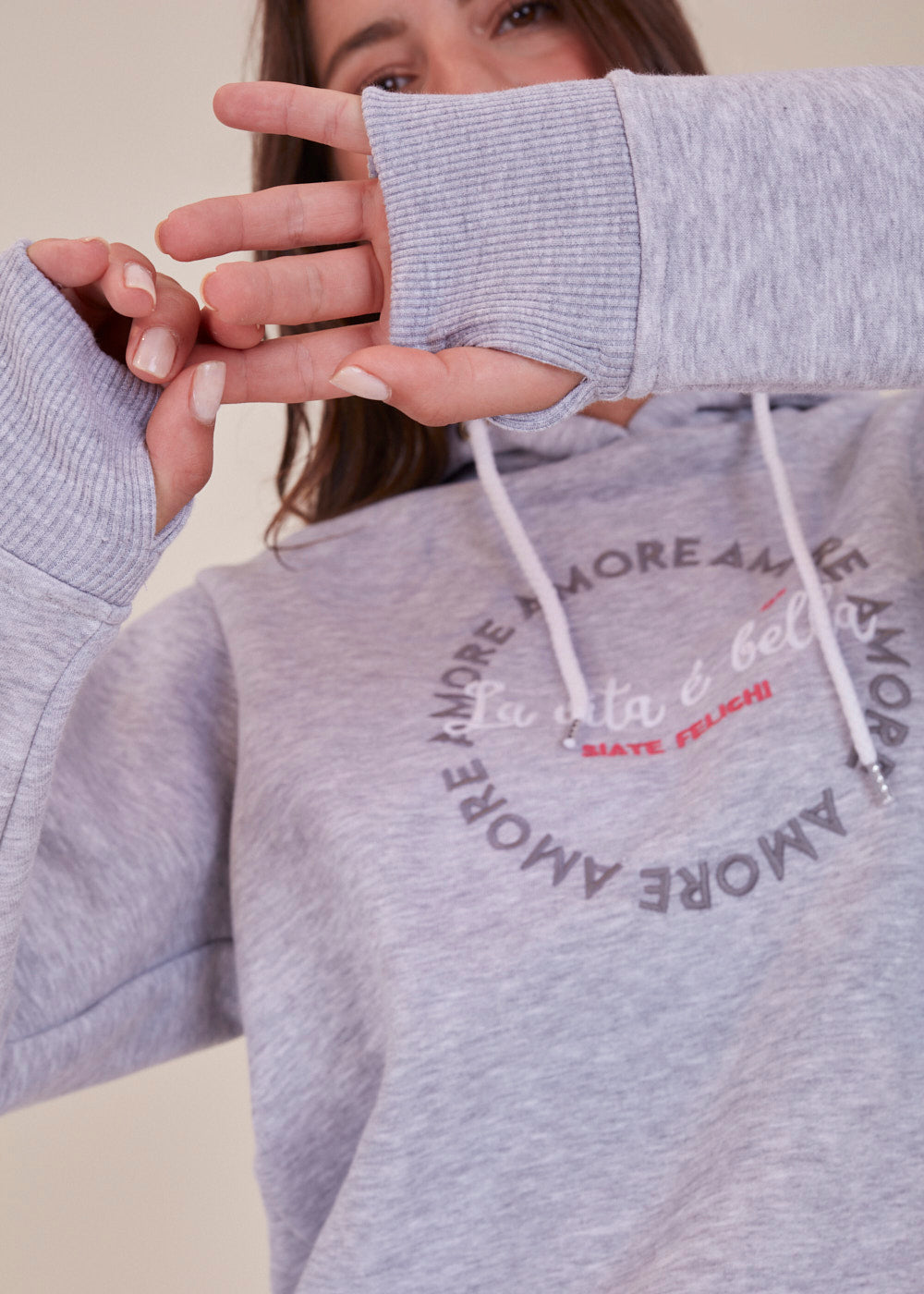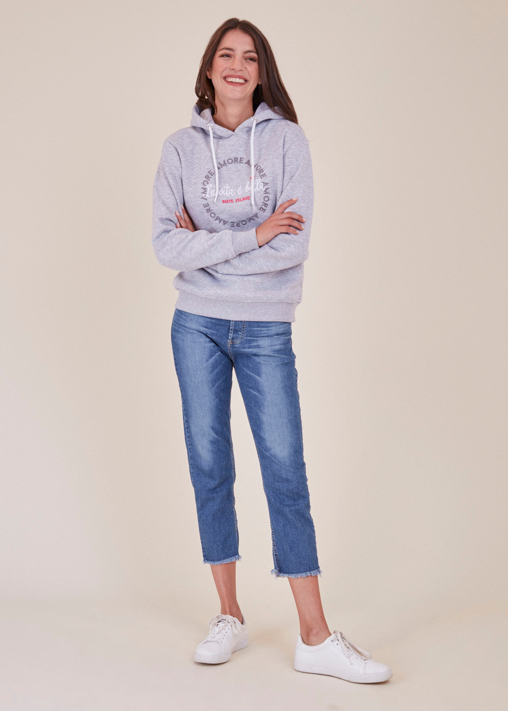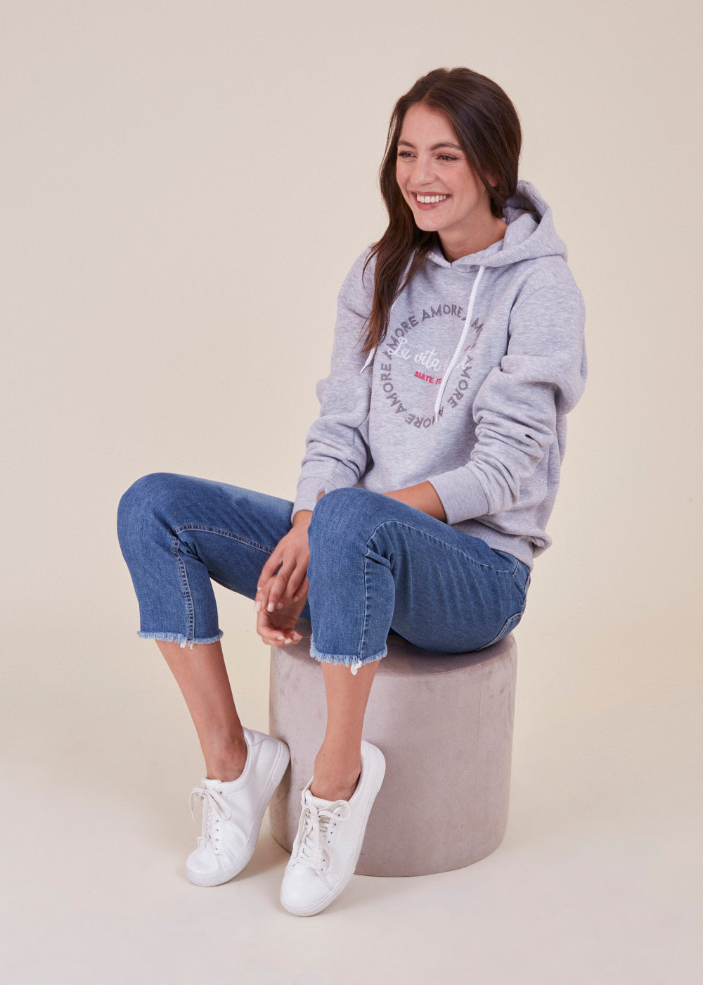 Dieser kastenförmige Kapuzenpullover aus einem Baumwoll- und Polyester Mix hat leicht überschnittene Schultern. Mit Rippbündchen an den Armen und am Saum. Der perfekte Begleiter für sportliche Alltags- Looks. Mit einer besonderen Stickerei auf der Vorder- und Rückseite.