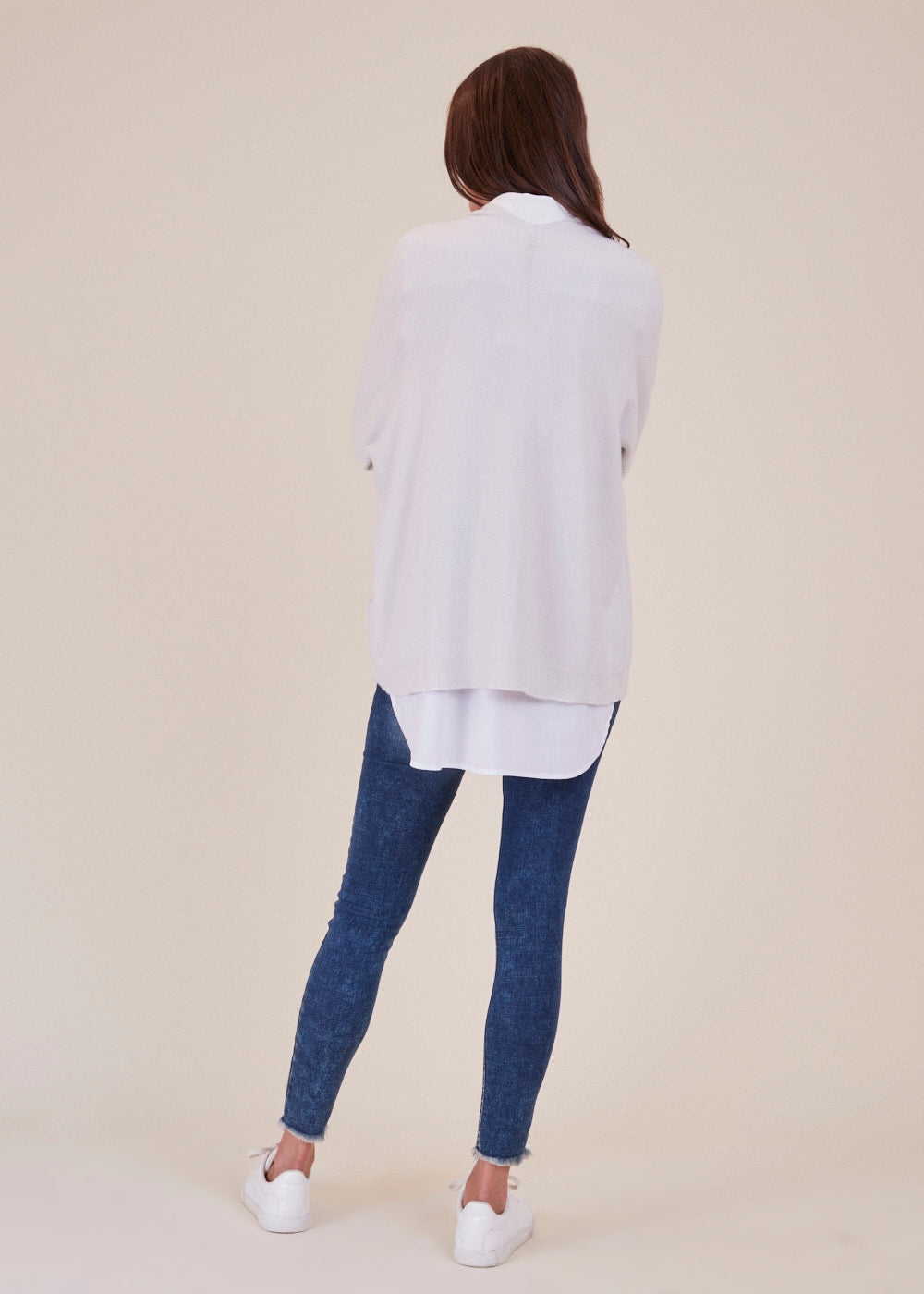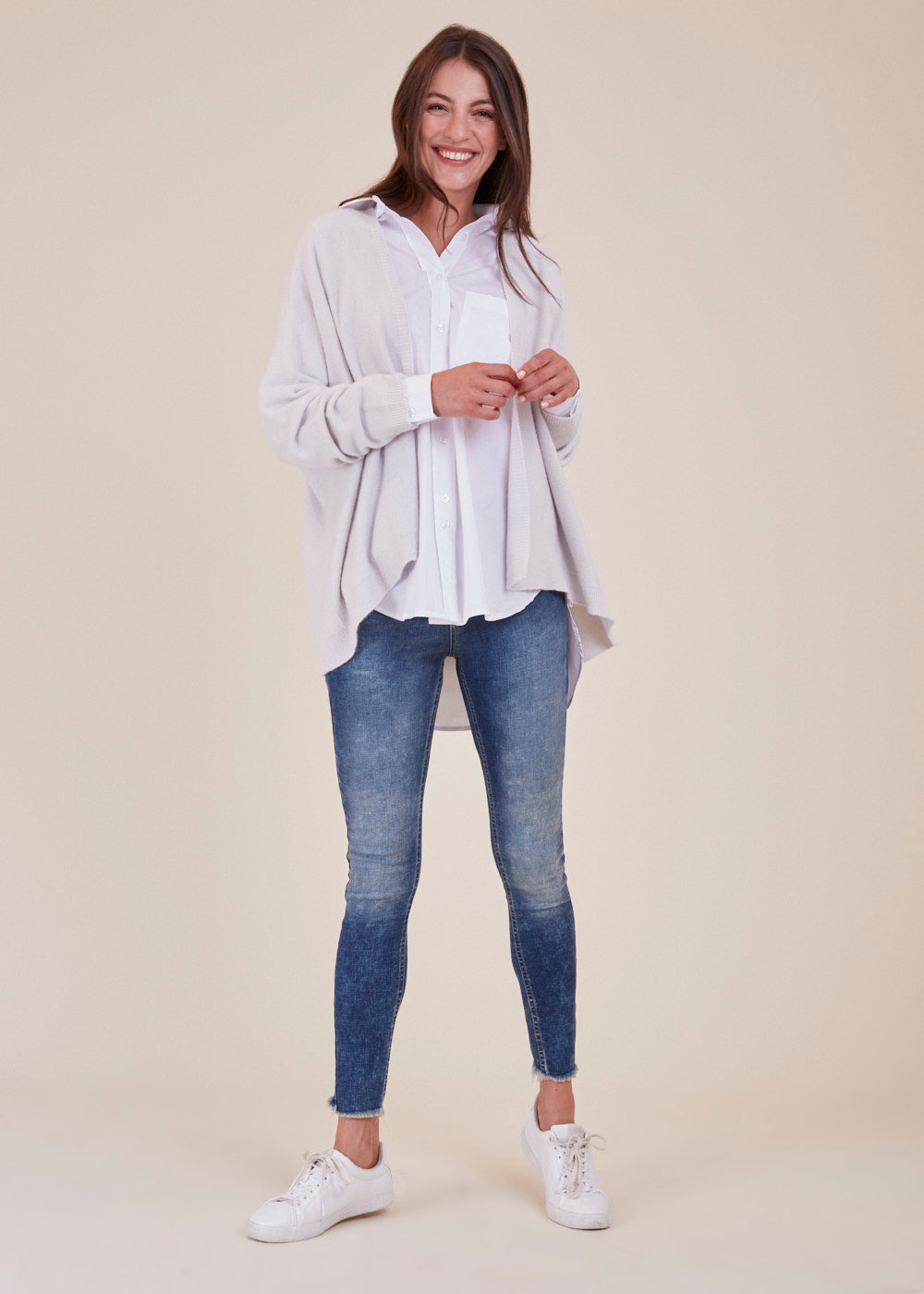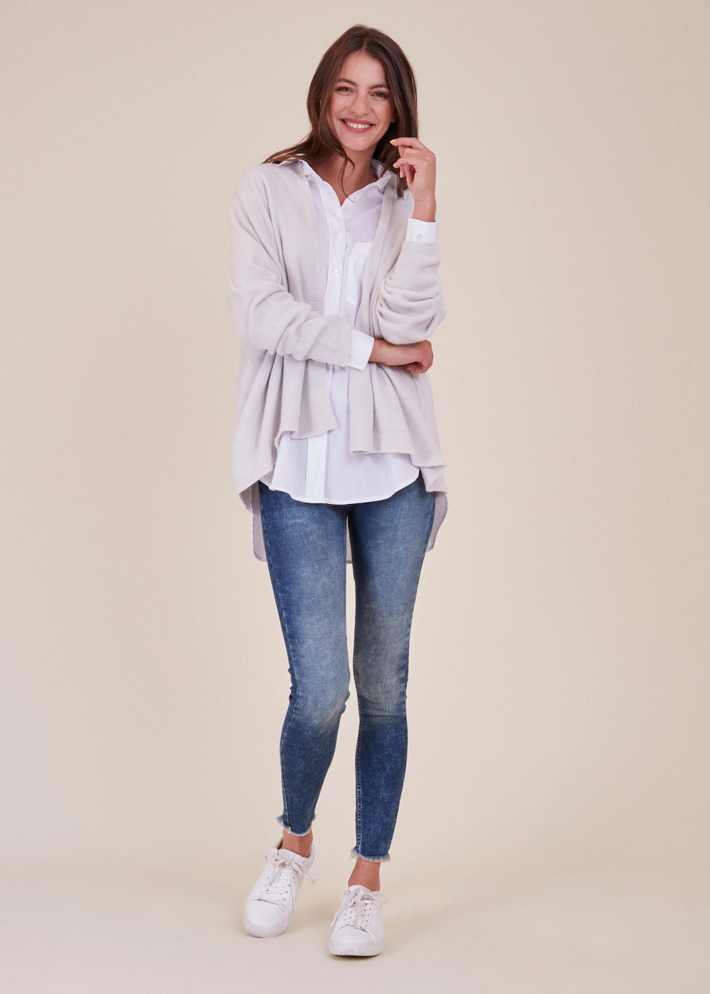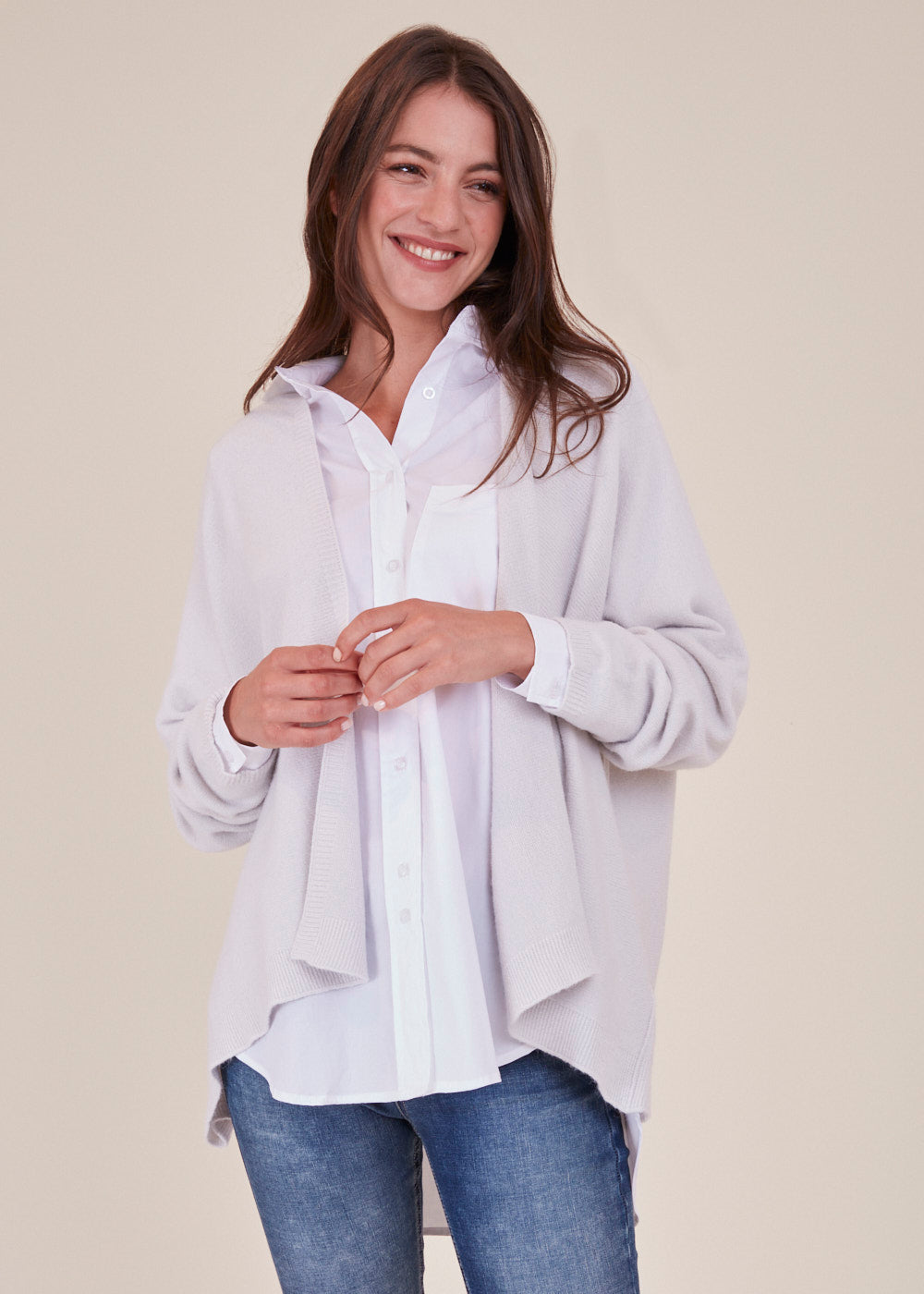 Kastenförmig geschnittene Strickjacke mit langen Armen aus unserem Bestseller Garn. Sie hat ein Rippenbündchen an den Ärmeln und am Saum. Zum darunter tragen empfehlen wir dir unsere Basic Tops. Kuschelig weicher Tragekomfort mit absoluter Wohlfühlgarantie.