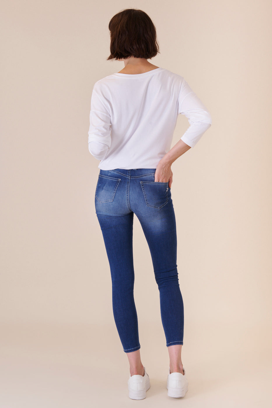 Yes, Please! Please-Jeans mit dunkelblauer Waschung, seitlichen Eingriffstaschen und kleinem Metallherz auf der Gesäßtasche. Die Jeans hat einen engen Schnitt und passt sich durch ihr wundervolles Material optimal an deine Figur an.