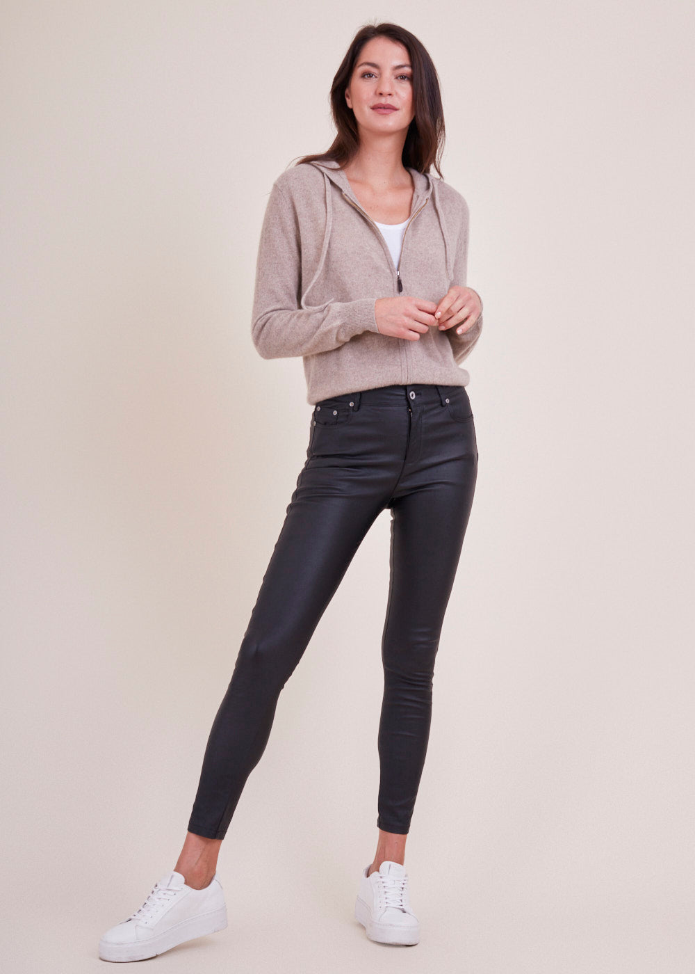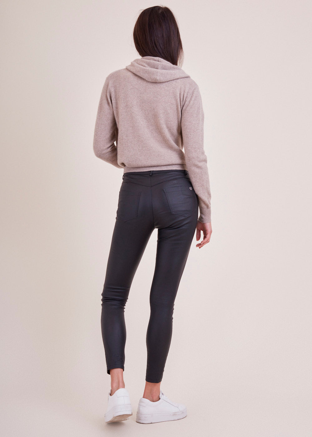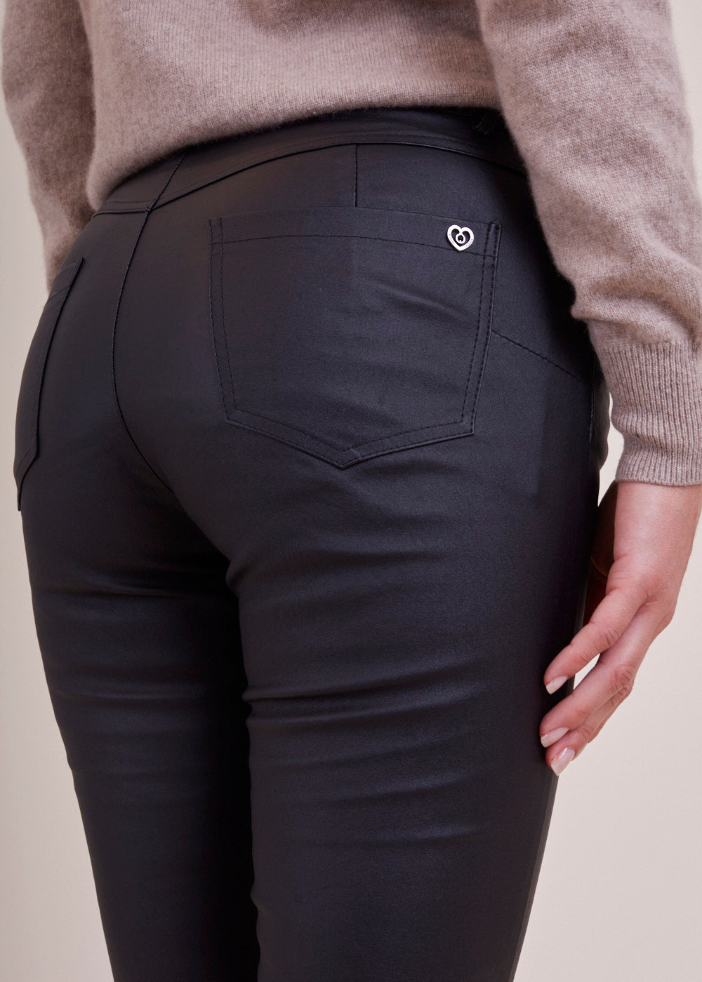Skinny Jeans Modell von Please in einer beschichteten , schwarze Variante. Sie hat einen Figurbetonten Schnitt. Durch die besondere Stretch-Qualität passt sich die Jeans angenehm an die Figur an und wird dadurch zum wahren Alltagshelden. Metallherz Element an der hinteren Gesäßtasche.