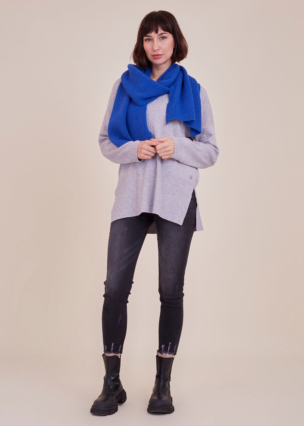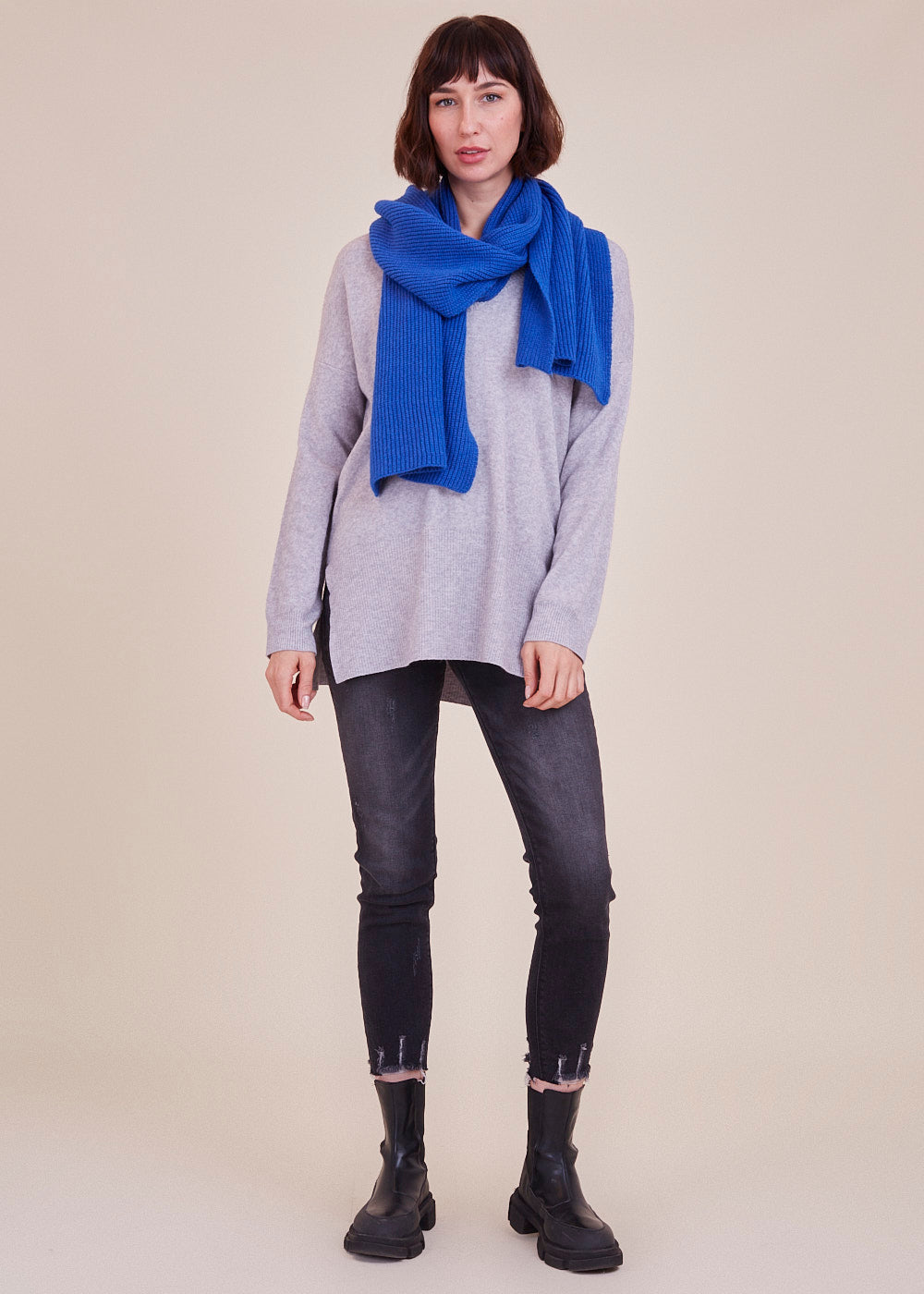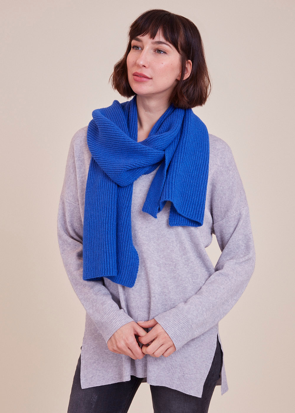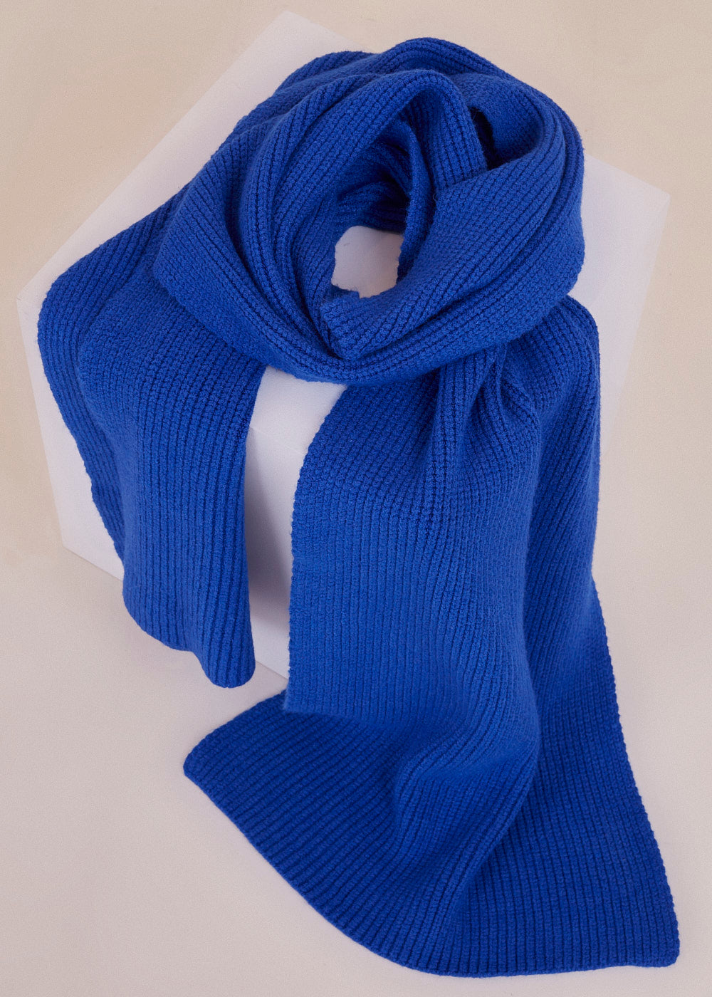 Kuscheliger Schal aus weichem Rippenstrick. Perfekt für die kalten Tage. Du findest auch die passende Mütze in unserem Shop.