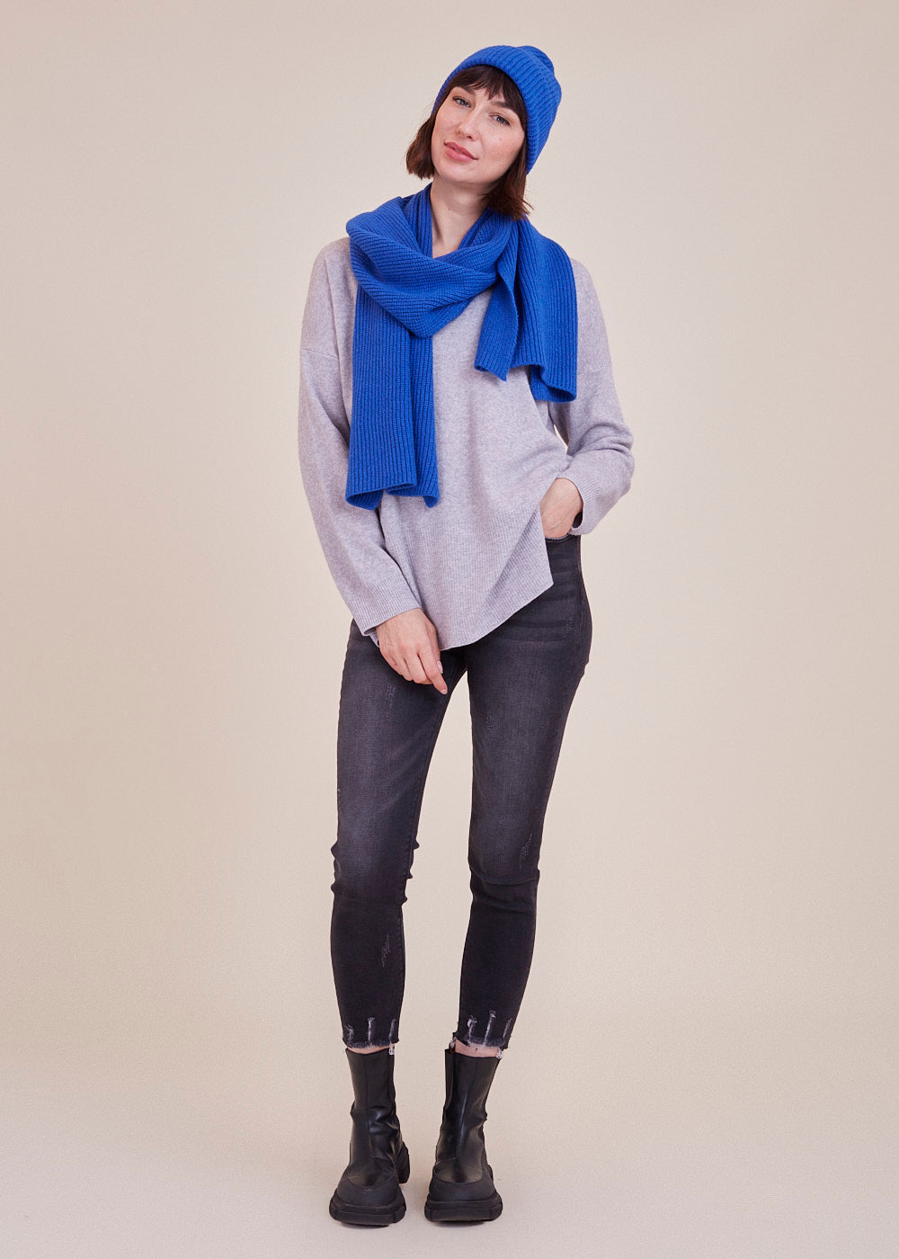 Kuschelige Mütze aus weichem Rippenstrick mit breitem Umschlag. Du findest auch den passenden Schal, in unserem Shop, dazu.