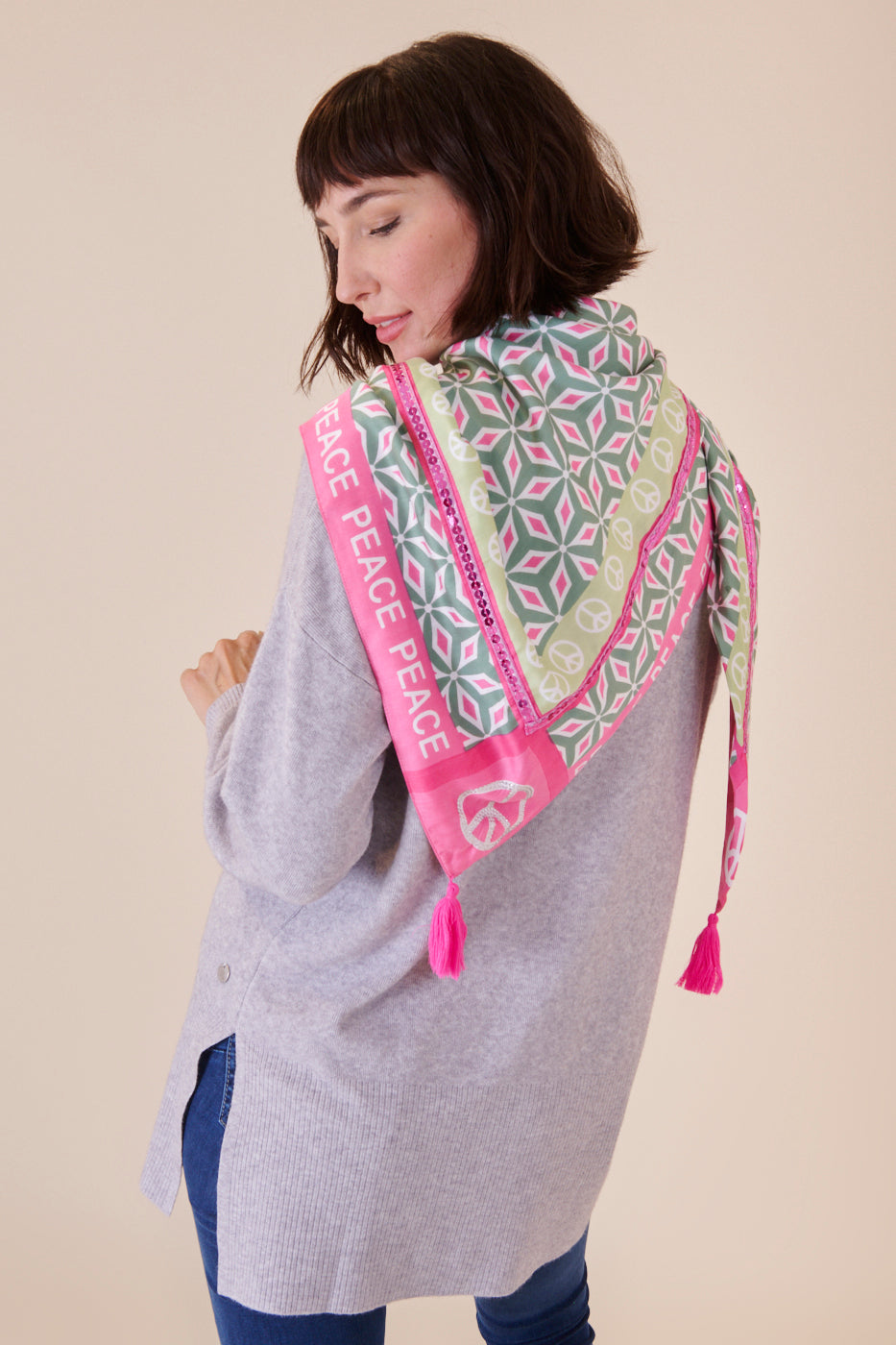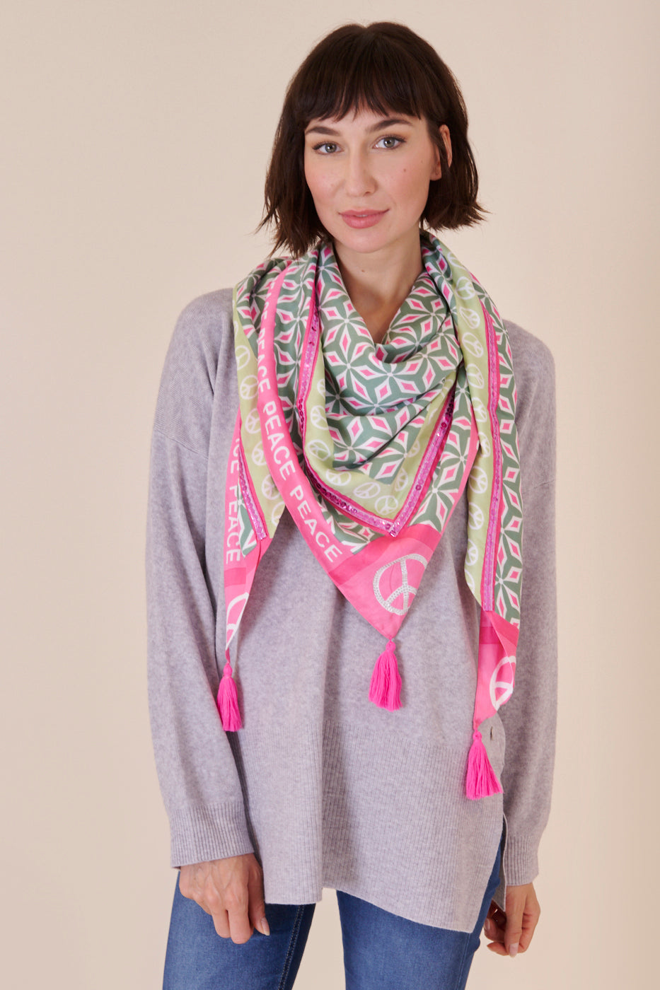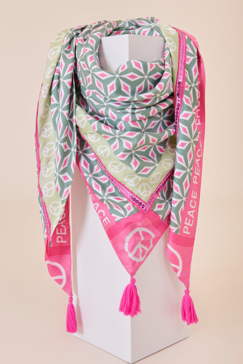 Dreiecks-Tuch aus reiner Bambus Viskose in Print Optik. Ein besonderer Hingucker! Mit dem verspielten Dreieckstuch kannst du dein Outfit ganz einfach aufpeppen. Wir lieben es jetzt schon.