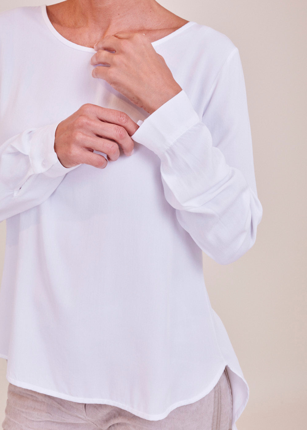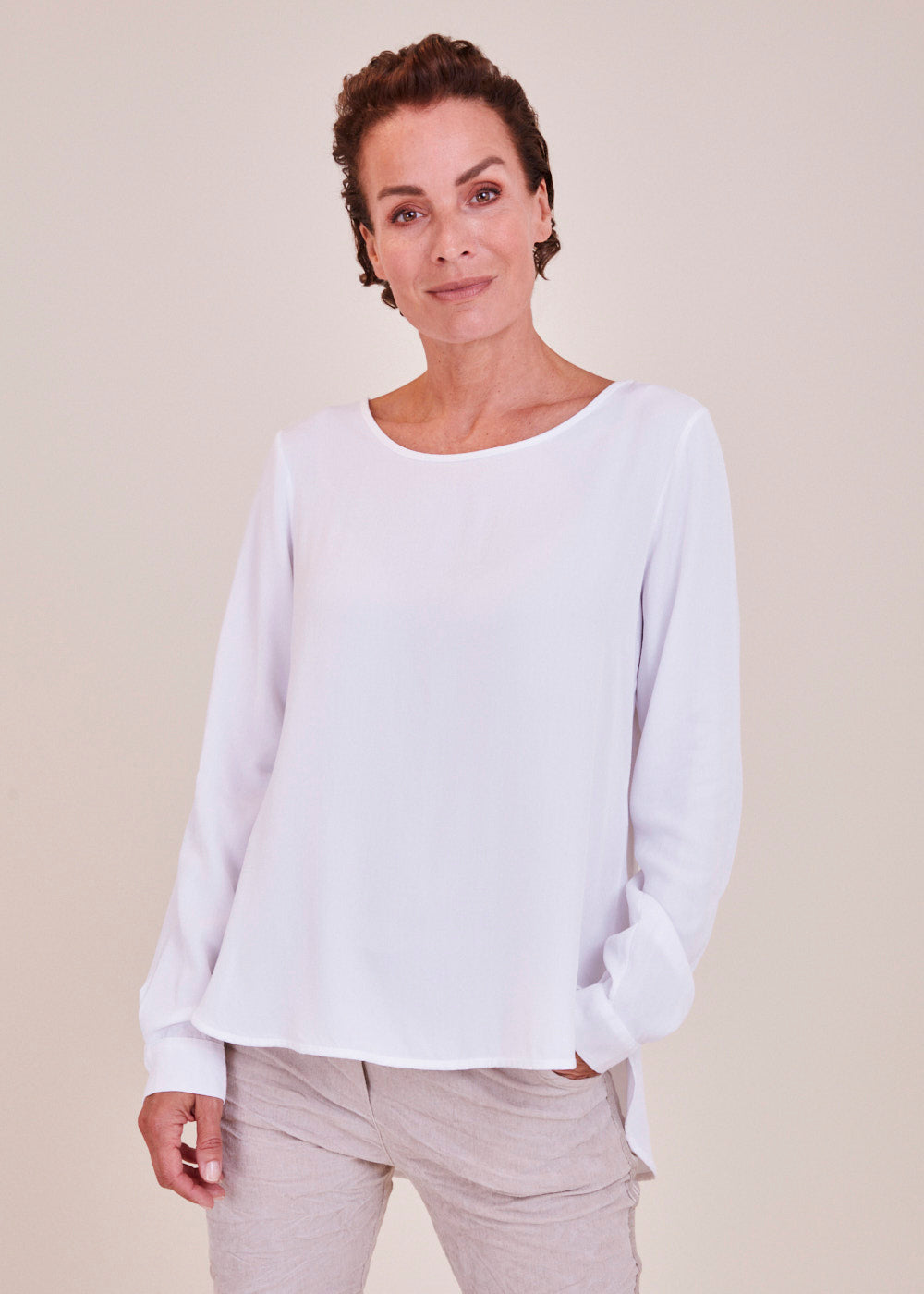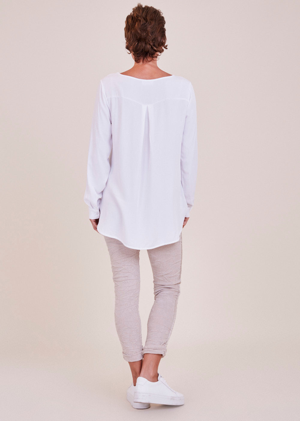 Umwerfende Tunika Bluse in einem Unifarbenden Design. Die Bluse hat eine Kellerfalte im Rücken und ist aus reinster Viskose. Sie hat lange Arme und ist das perfekte Basic zum Kombinieren. Trage diese umwerfende Tunika auch gerne mal unter einem Blazer.