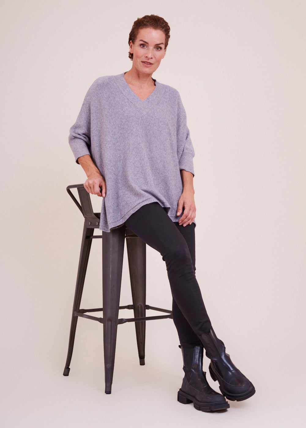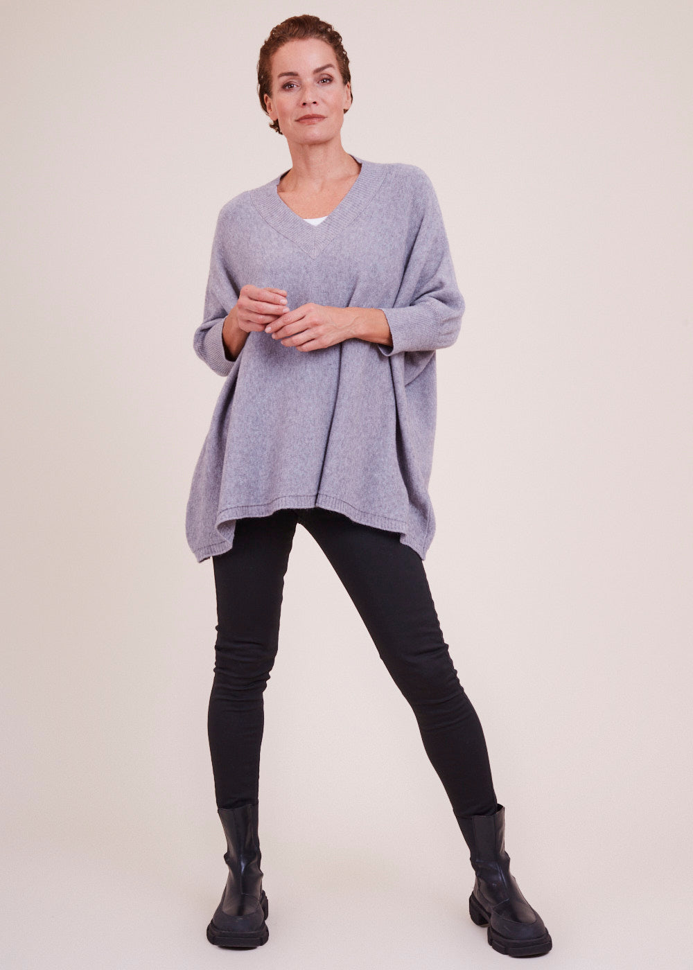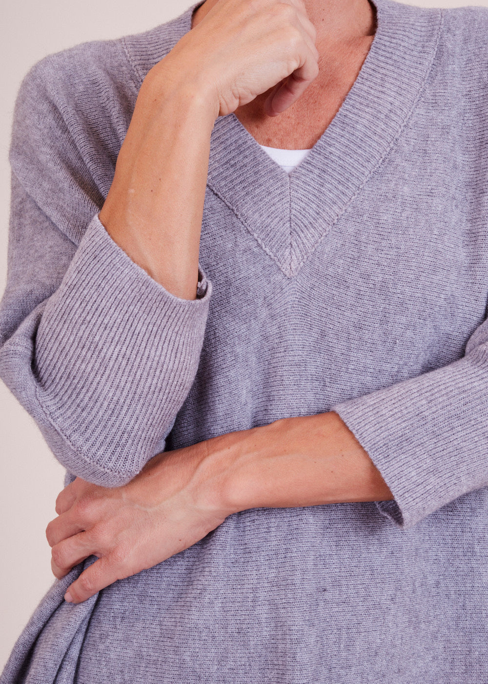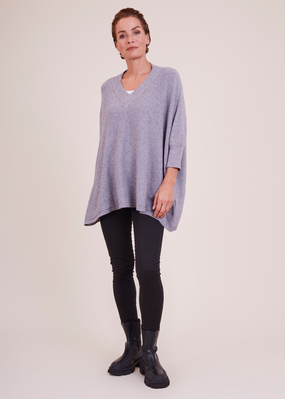 Lässig und kastenförmig geschnittener Pullover mit V-Ausschnitt. Er hat besondere Rippendetails am Ausschnitt, sowie am Saum und Armabschluss. Ein absoluter Wohlfühl Pullover aus einem großartigen Materialmix. Kombiniere diesen Artikel, um ganz lässig zu wirken, mit einer Jeans und Boots