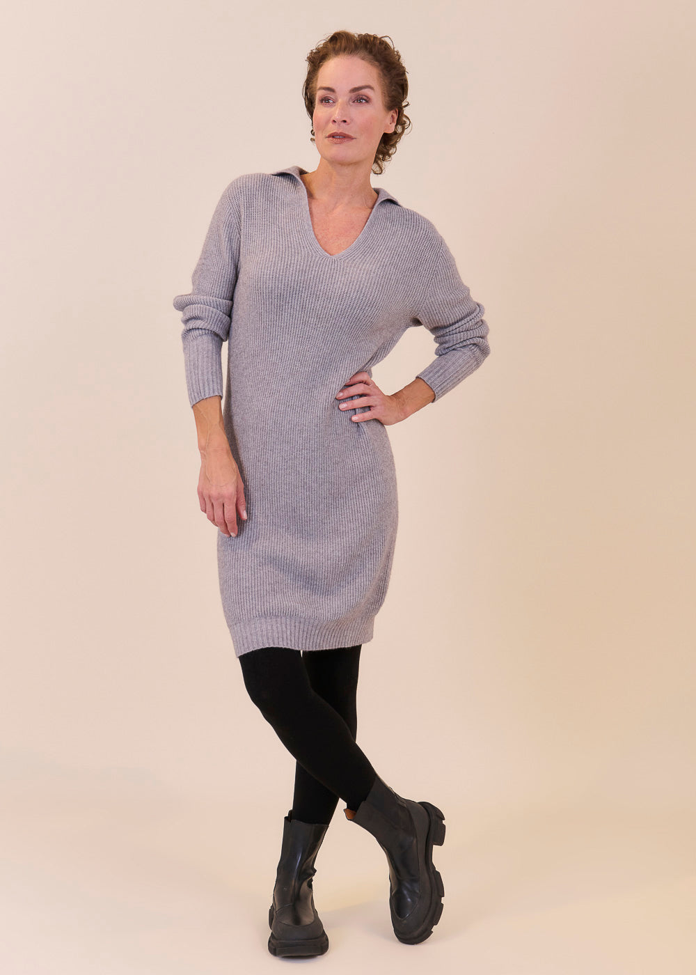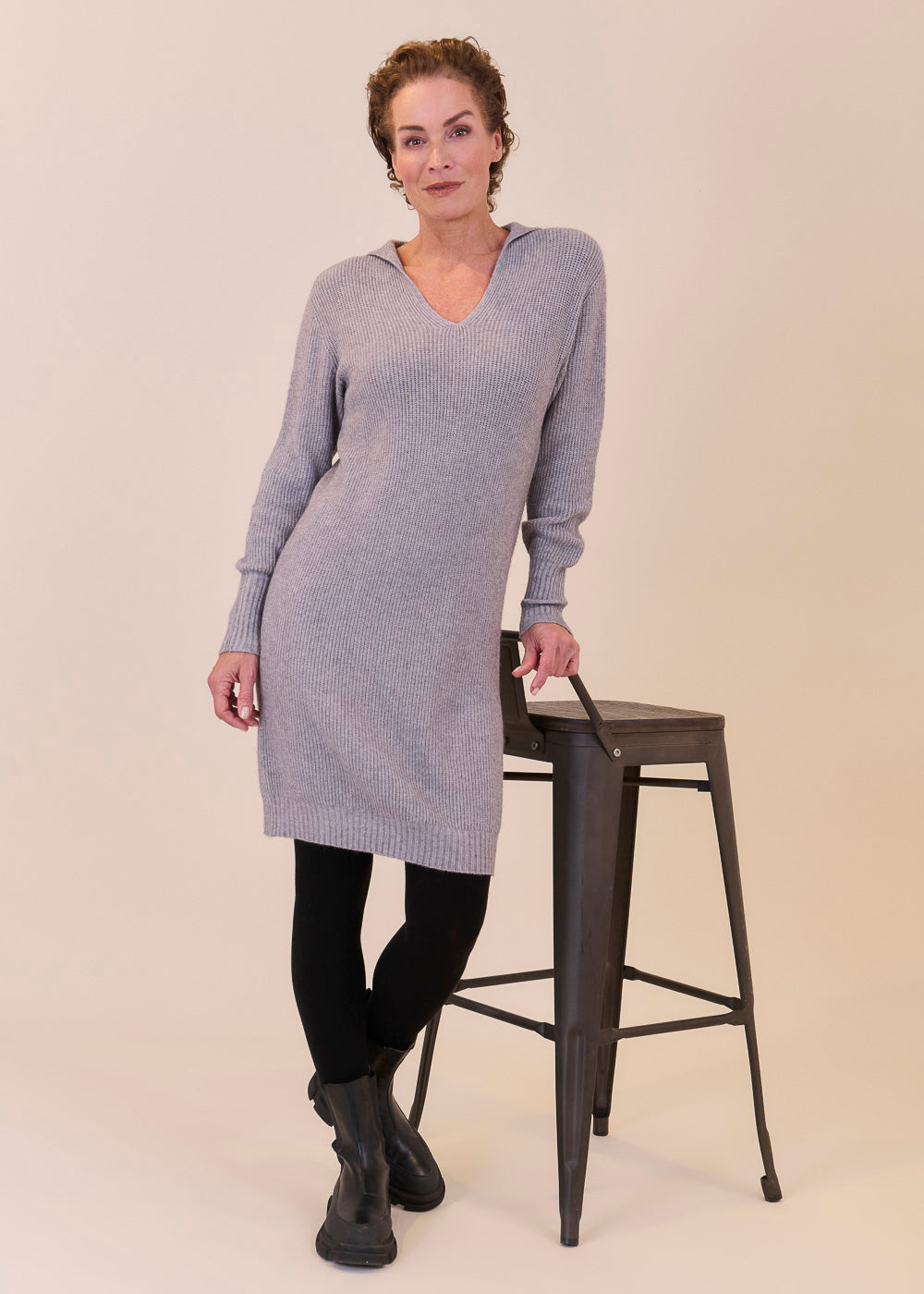 Figurbetontes Strickleid aus unserem Kuschelgarn. Es hat lang geschnittene Arme und ein Rippenbündchen an den Saum, sowie an den Ärmeln. Der V-Ausschnitt schmeichelt deinem Dekolletee und verleiht diesem besonderen Strickteil das gewisse Etwas. Einfach zum Wohlfühlen!