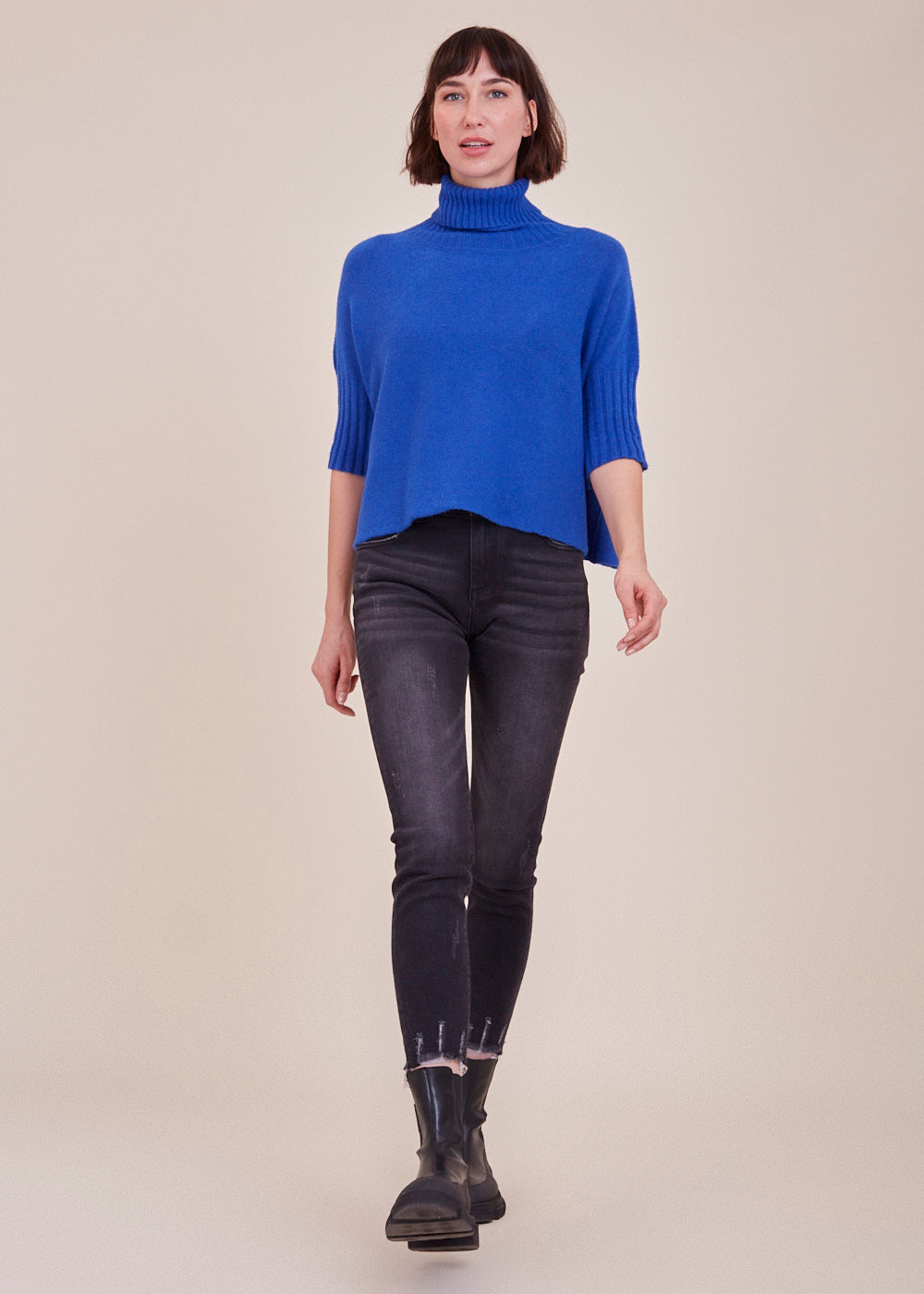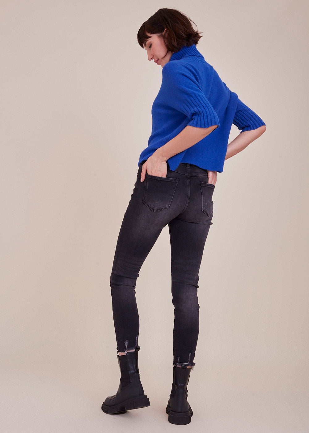 Das Model trägt bei einer Körpergröße von 179 cm die Konfektionsgröße XS.