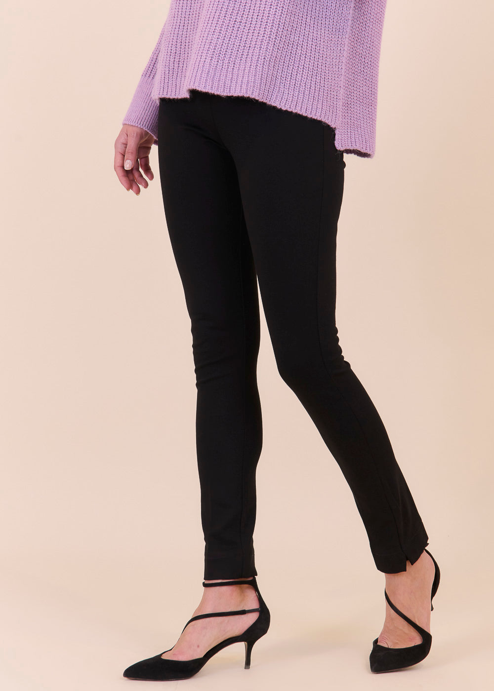 Mit dieser Leggings im Klassischen schwarzen Design bist du für jeden Look gewappnet. Mit extrahohem Bund, der sich schön weich an deine Körpermitte anschmiegt, werden die Damenleggings zum stylischen It-Piece für besondere Anlässe. Das trageangenehme Baumwollmaterial ist sehr elastisch und gibt dir dadurch viel Bewegungsfreiheit. Ein unifarbenes Pullover und Boots machen den Look komplett.