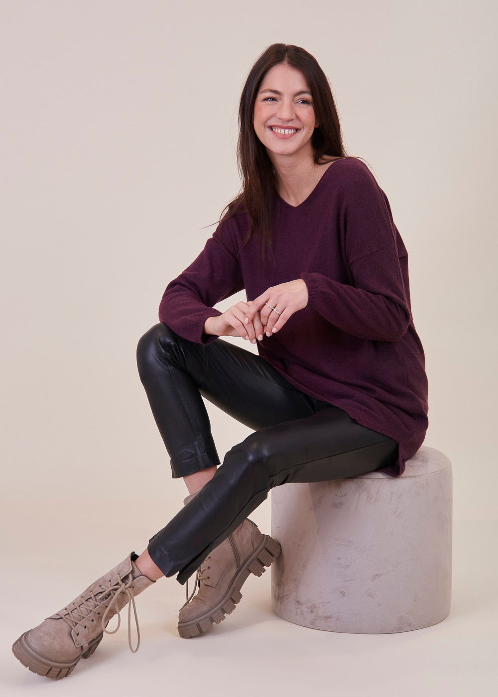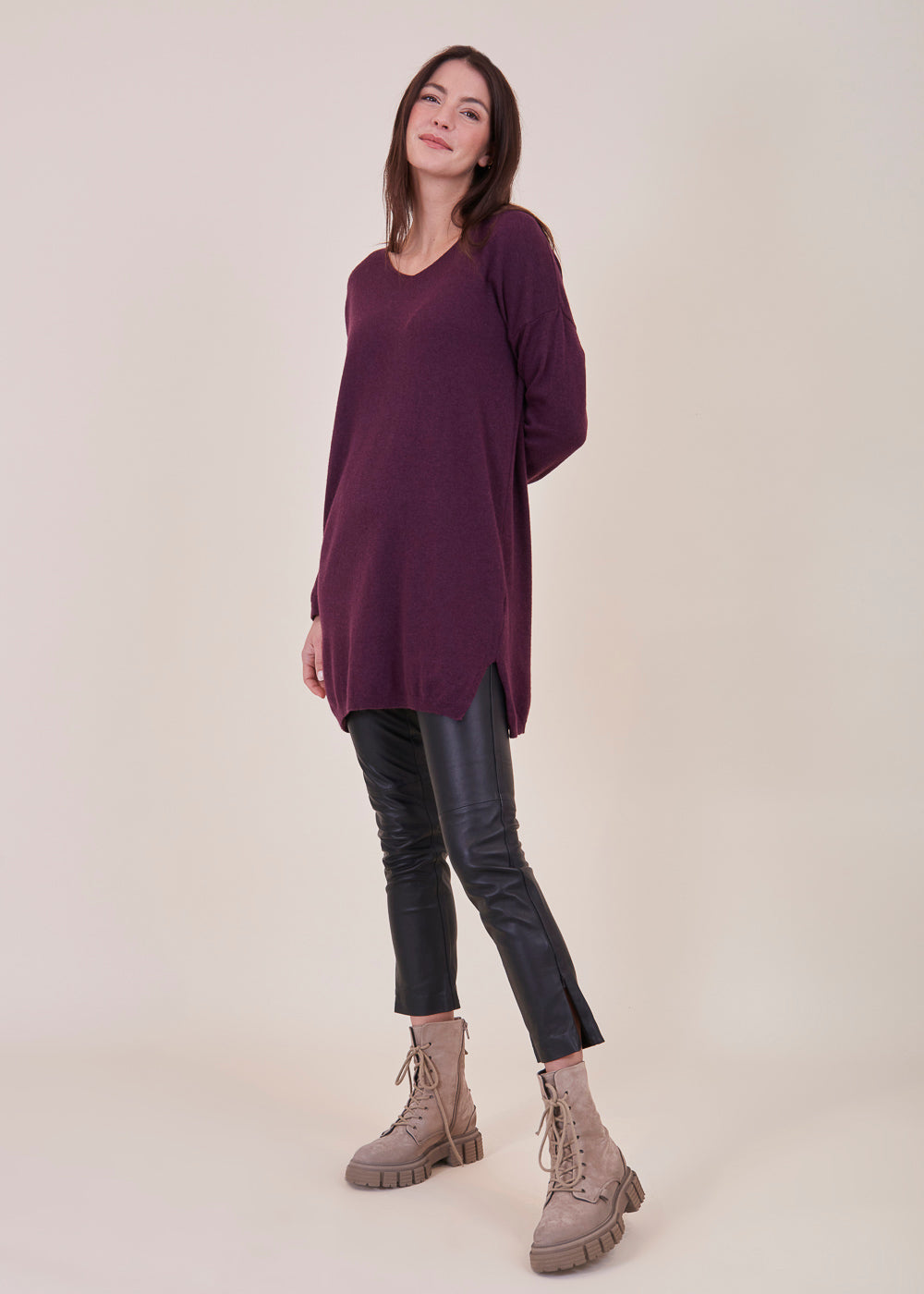 Hier kommt dein neuer Lieblingspullover. Dieser lässig geschnittene Longpulli hat lange Arme und seitliche Schlitze. Er lässt sich perfekt mit Skinny  und Hose Boots stylen. Zeit für etwas bequemes? Dann kombiniere ihn doch gerne mit einer Leggins aus unserem Shop.