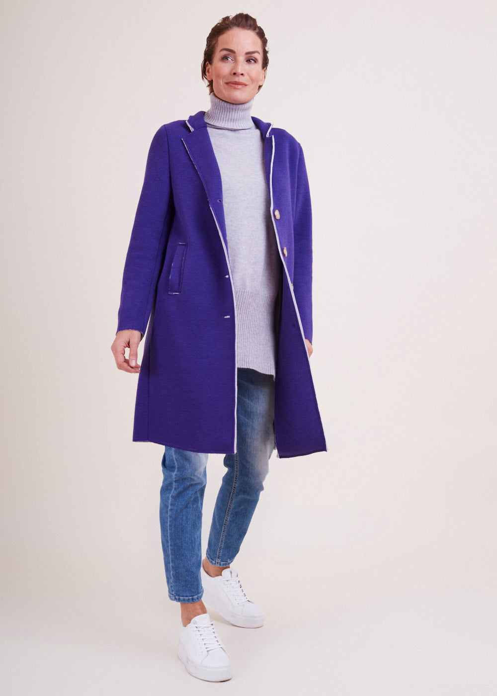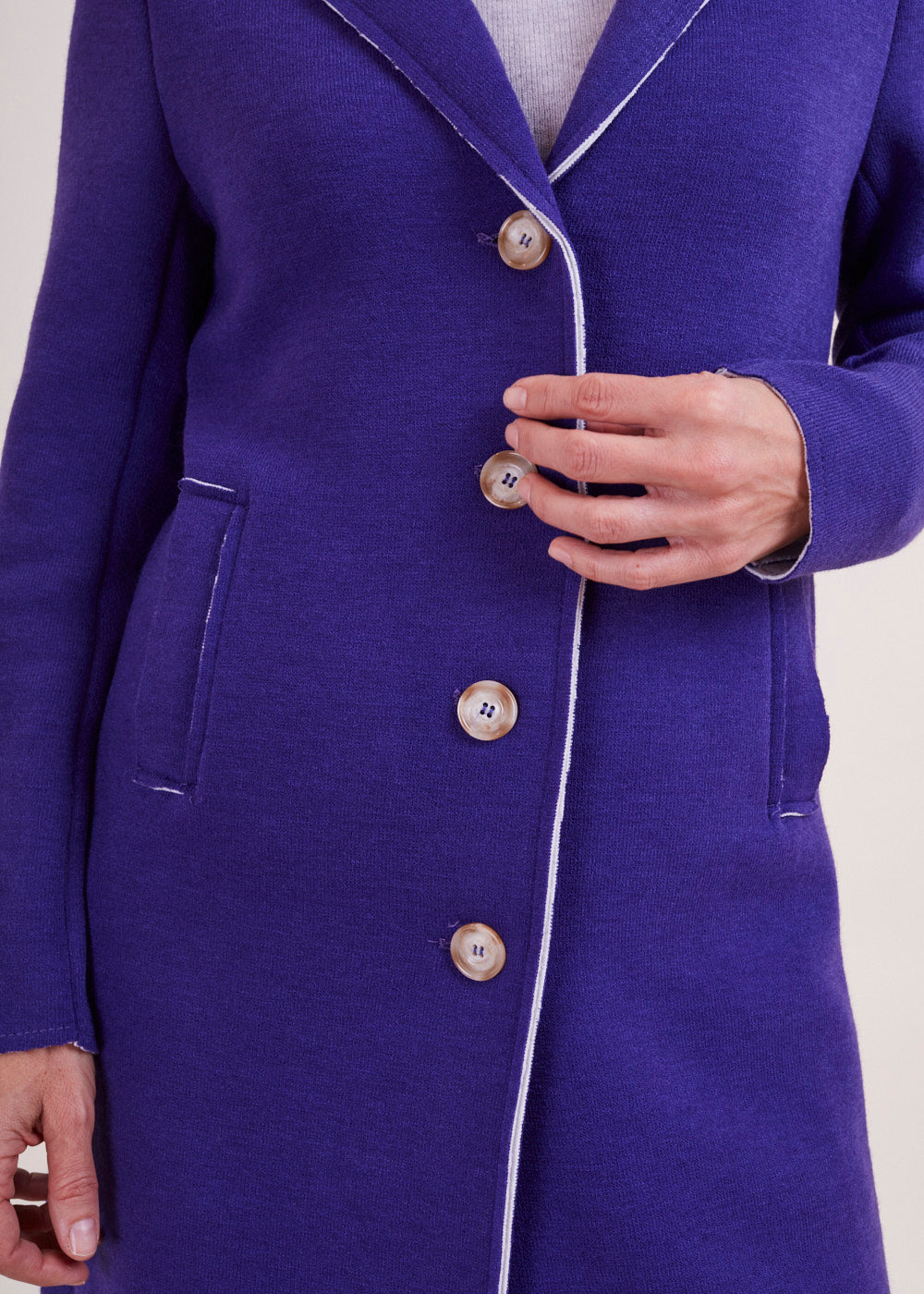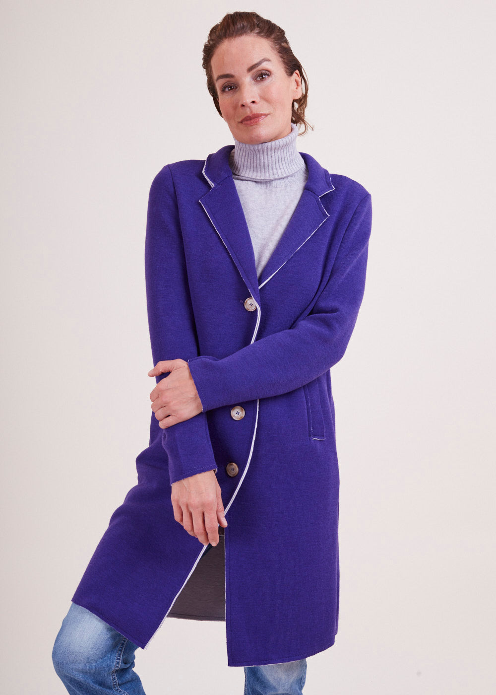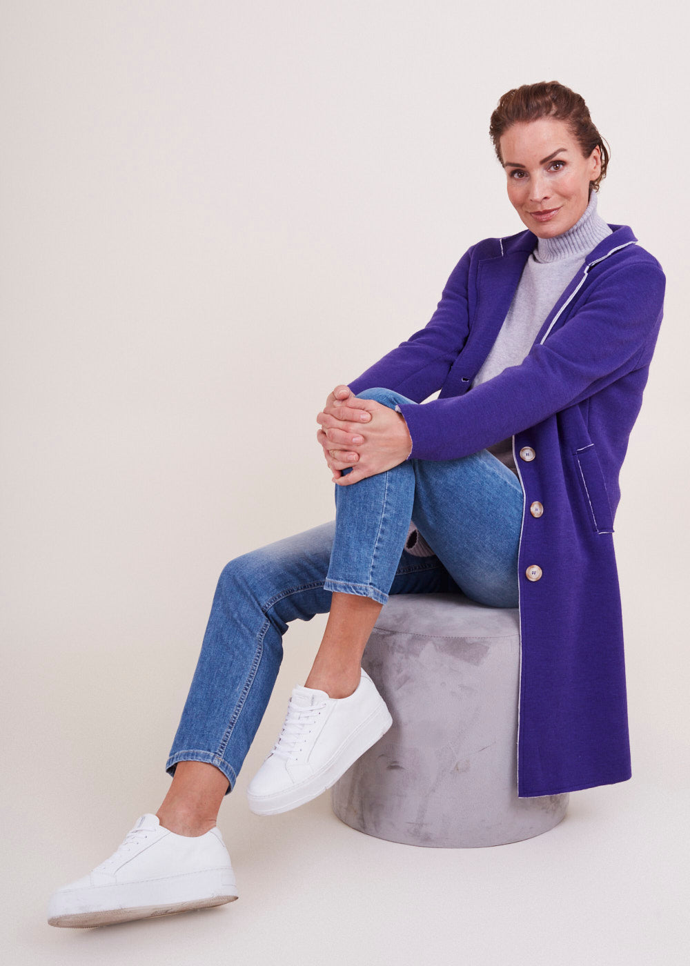 Absolutes Must-Have für alle, die es gleichzeitig unkompliziert und stylish lieben! Long Blazer mit Figur schmeichelndem Schnitt und besonderen Knöpfen. Die Kanten sind offen verarbeitet und mit weißen Overlocknähten eingefasst.