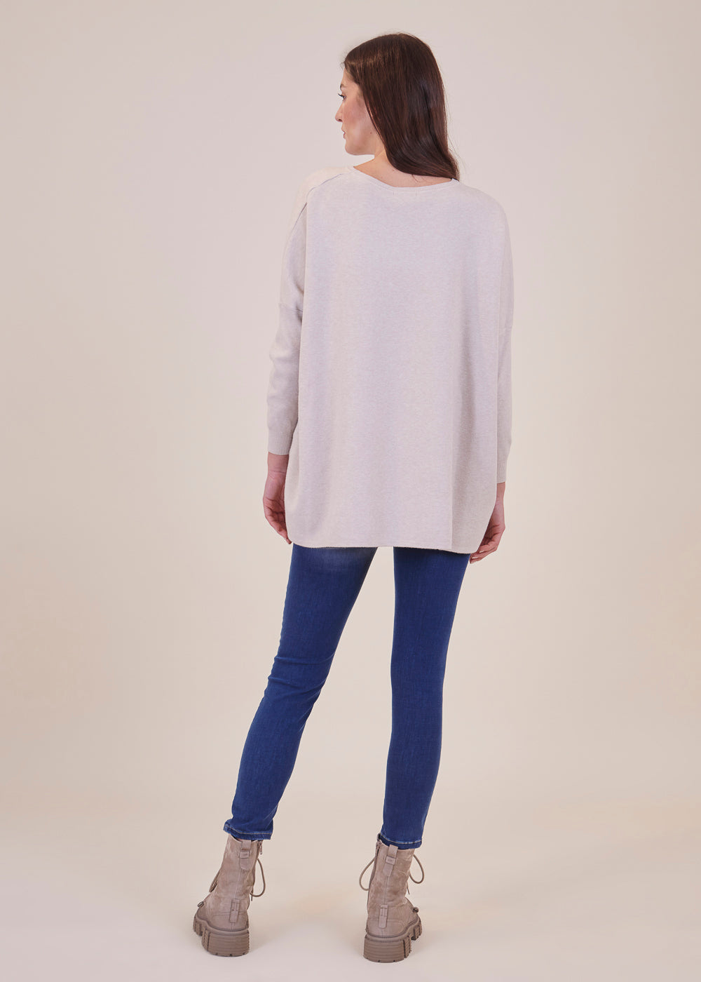 Dieser lässige Pullover gehört schon jetzt in deinen Kleiderschrank. Mit seinem schlichten Uniton ist dieser Feinstrickpullover ein zeitloser und moderner Begleiter. Durch seinen lässige Form gibt er sich besonders schmeichelhaft. Langer Ärmel mit geraden Abschlusses. Gefertigt aus unserem Kuschelgarn. Einfach zauberhaft.