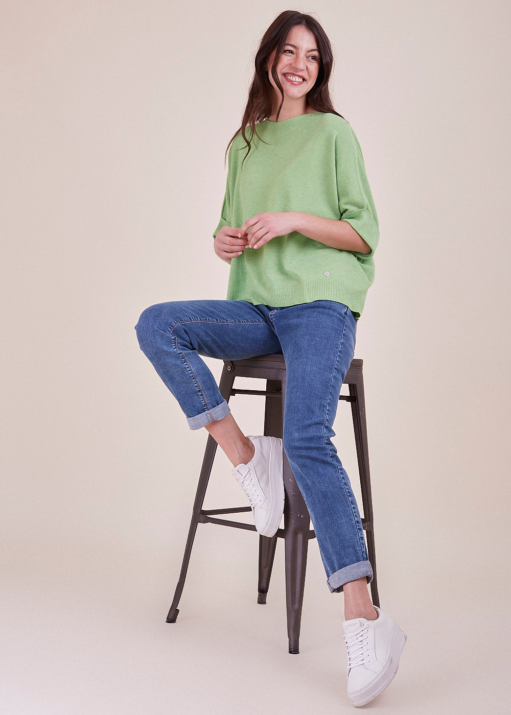 Vervollständigt dein Outfit und darf in keiner Garderobe fehlen: Dank diesem Oversize-Pullover kannst du unterschiedlichste, modische Outfits kreieren. Der Feinstrick ist herrlich weich und trägt sich angenehm auf der Haut. Smarte Design-Details, wie etwa die umgeschlagenen Ärmel und das Metallplättchen, runden den Gesamteindruck ab.