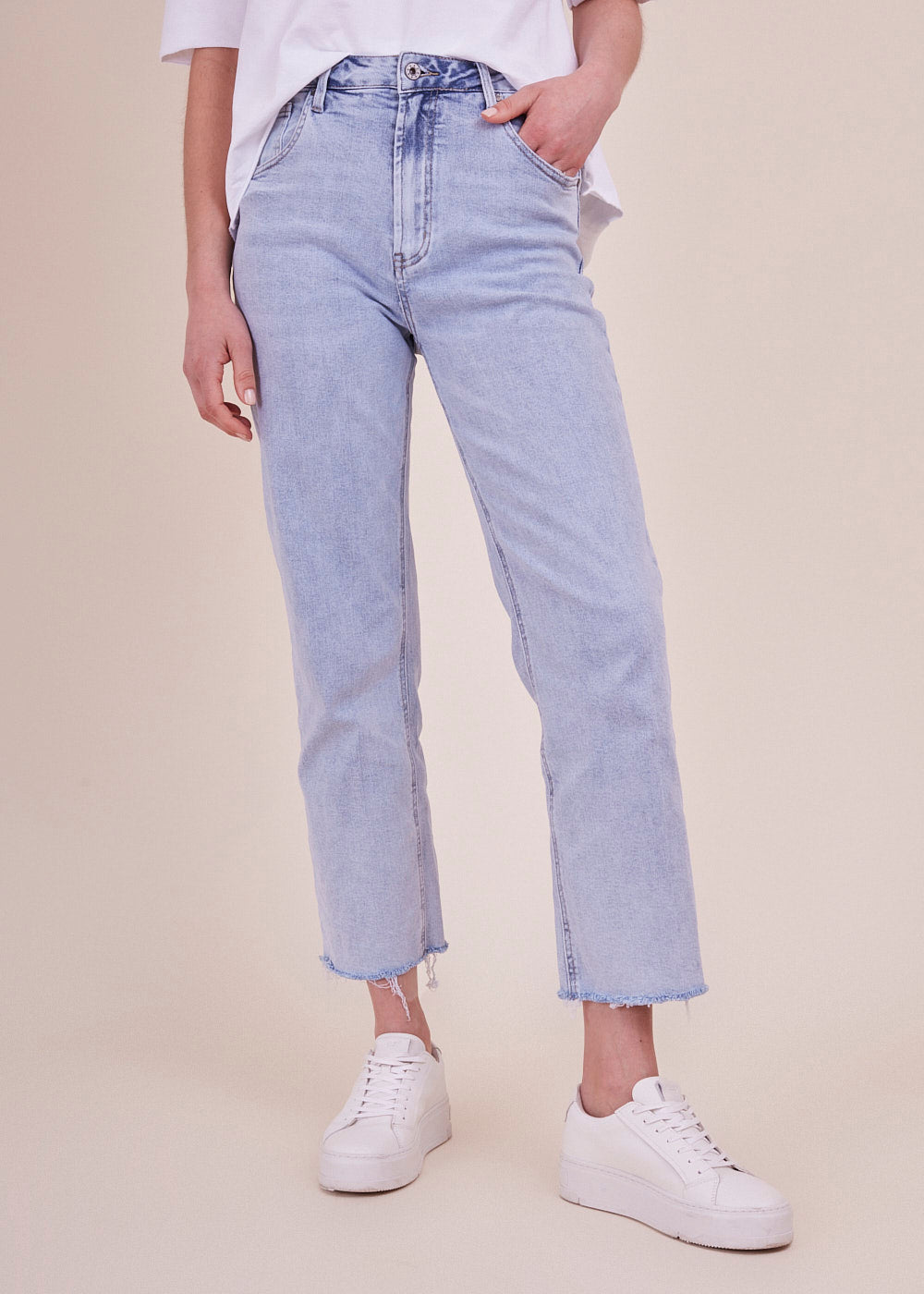 Deine neue Lieblings Jeans wartet schon auf Dich! Hochtailliert und an den Oberschenkeln etwas weiter geschnitten: Diese nach unten hin gerade zulaufende, blaue Hose mit besonderen Saumabschluss ist einfach nur besonders. Das angenehme Stretch Material sorgt für einen perfekten Sitz und ist darüber hinaus noch super bequem.