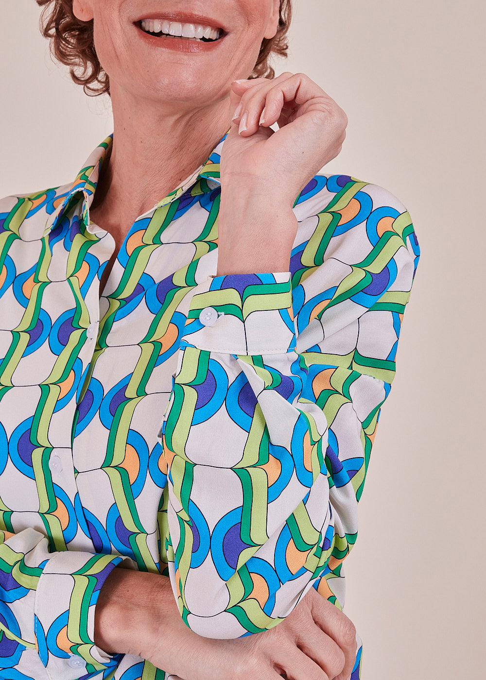 Wir lieben Druck! Diese lässig fließende Viskosebluse in den neuen Trendfarben hat lange Ärmel mit überschnittenen Schultern. Durch ihr leichtes Viskosematerial hat sie einen angenehmen Tragekomfort. Sie hat durchgehende Knopfleiste. Ein absoluter Hingucker.