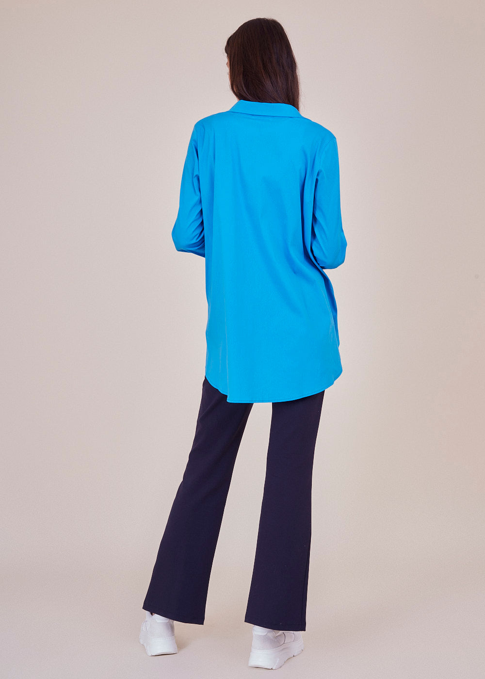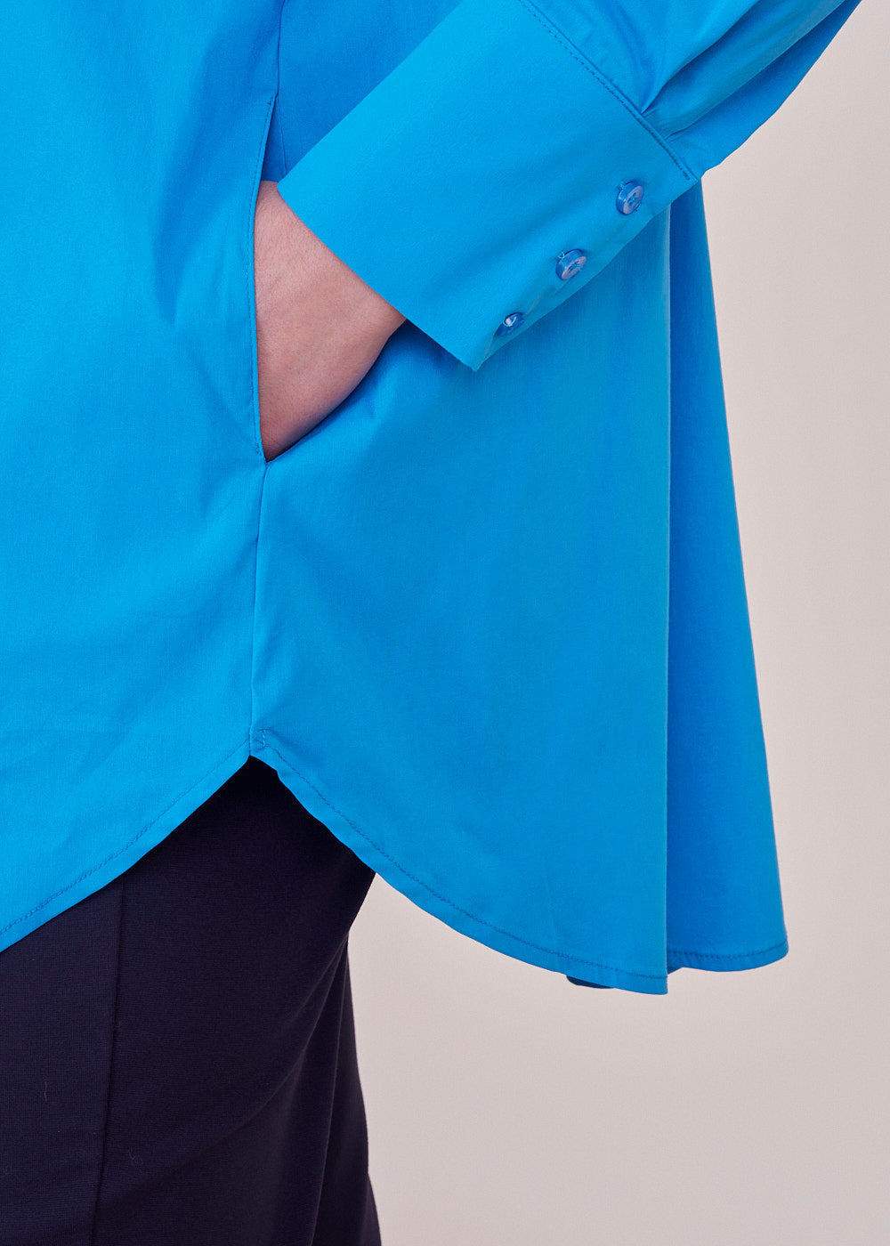 Wundervolle lässig geschnittene Bluse aus Baumwolle mit Hemdkragen und durchgezogener Knopfleiste. Die Bluse hat lange Ärmel, die sich ebenfalls mit Knöpfen verschließen lassen. Die Schultern sind leicht überschnitten. Als besonderes Highlight besitzt diese Bluse zwei seitliche Eingriffstaschen.