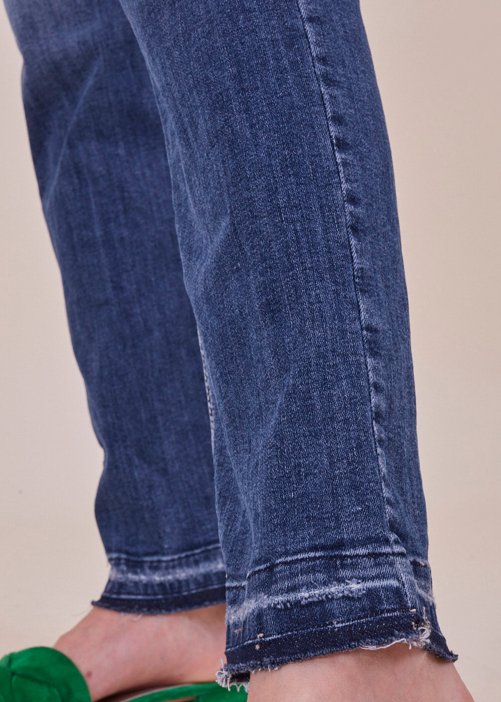 Das Material der Damen-Jeans ist elastisch. So ist sie ein willkommener Begleiter, wenn du den ganzen Tag unterwegs bist. Das pflegeleichte Material macht die Hose unkompliziert, sodass sie sich problemlos in der Waschmaschine waschen lässt.
