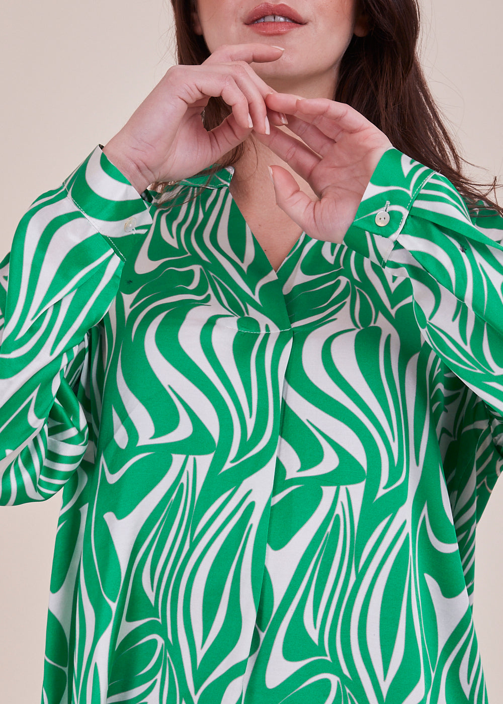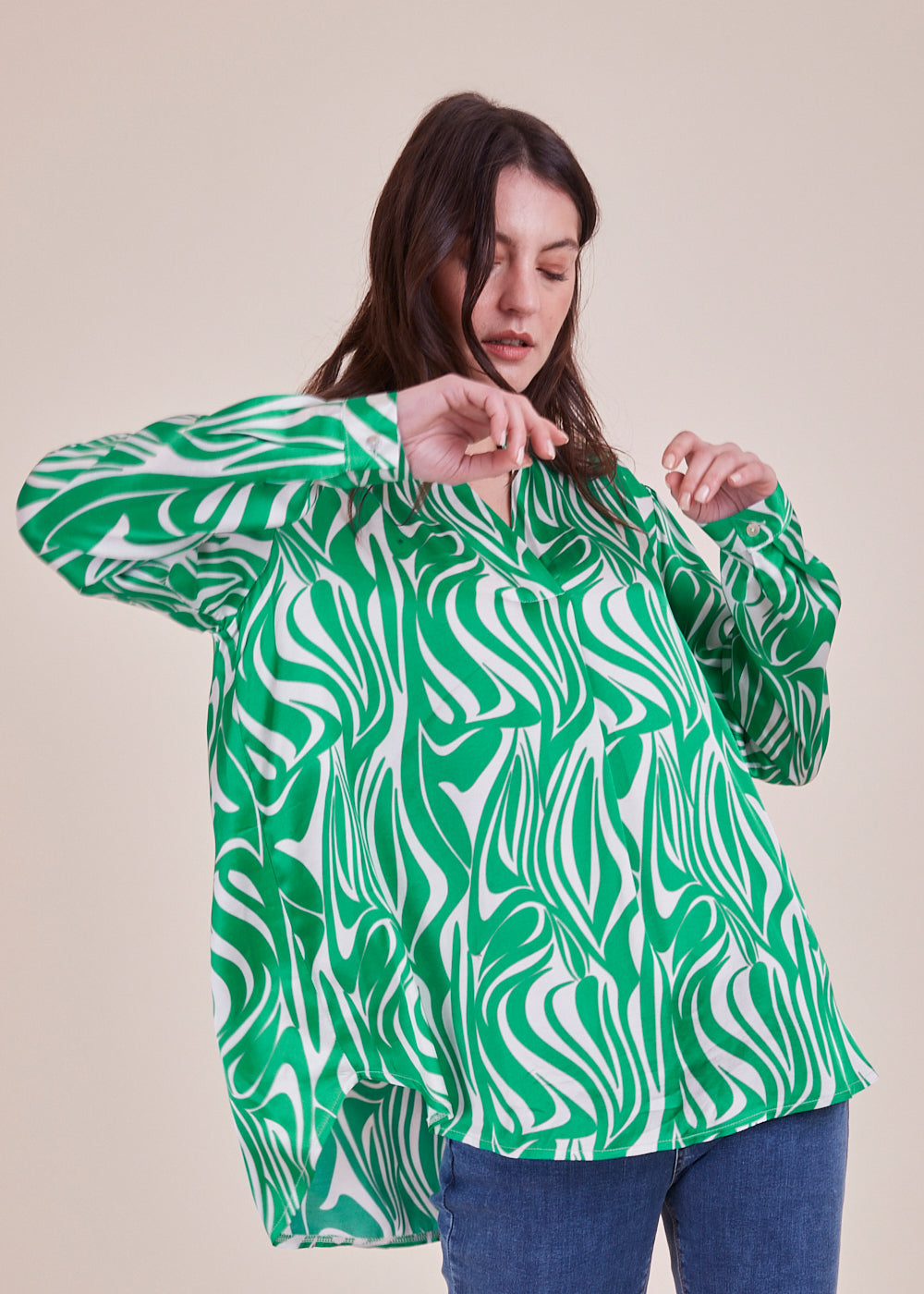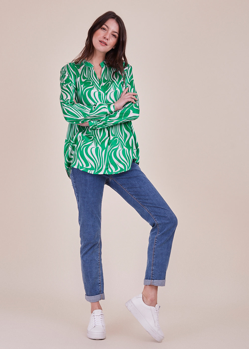 Wir lieben Grün! Diese lässig fließende Viskosebluse in den neuen Trendfarben hat lange Ärmel mit überschnittenen Schultern. Durch ihr leichtes Viskosematerial hat sie einen angenehmen Tragekomfort. Sie hat durchgehende Knopfleiste. Ein absoluter Hingucker.