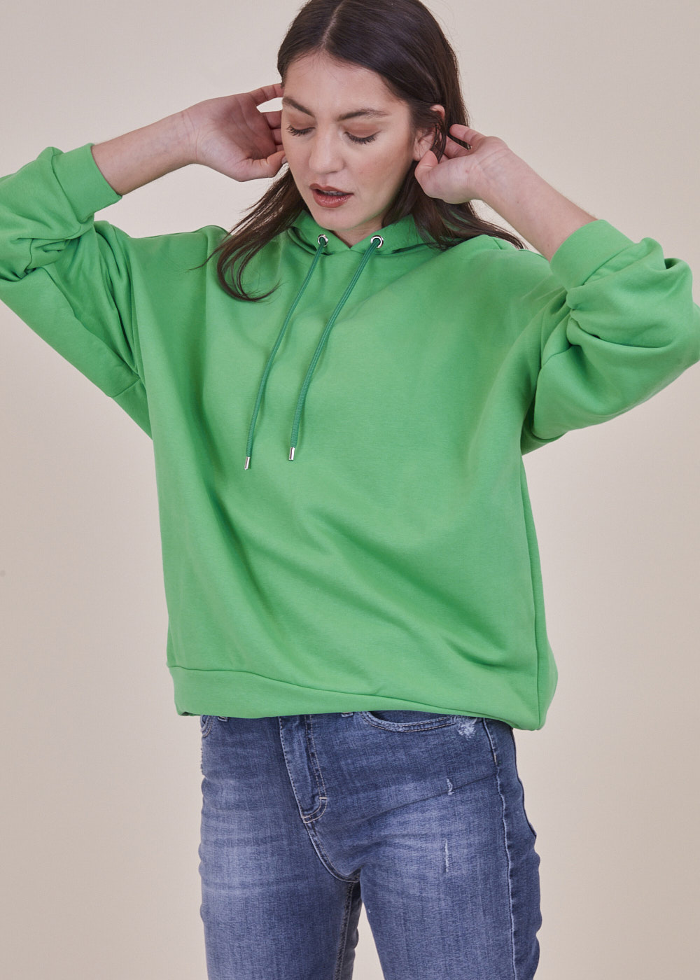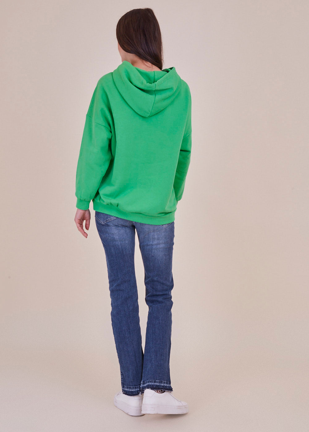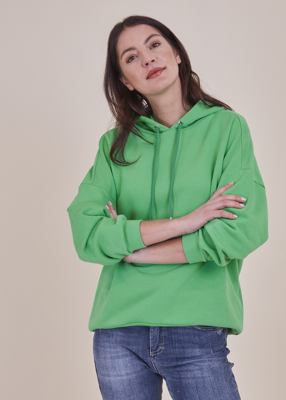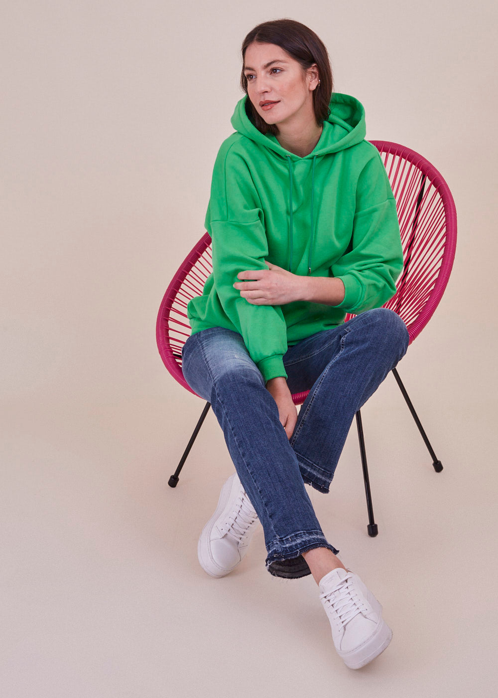 Dieser Hoody lässt einfach jeden Strahlen!! Unser Fashion Hoody in einem wunderschönen Grün Ton. Er hat einen lässigen Schnitt. Die langen Ärmel enden in einem Bündchen, das für guten Sitz sorgt. Mit Tunnelzug am Ausschnitt in einer aufwendigen Verarbeitung.