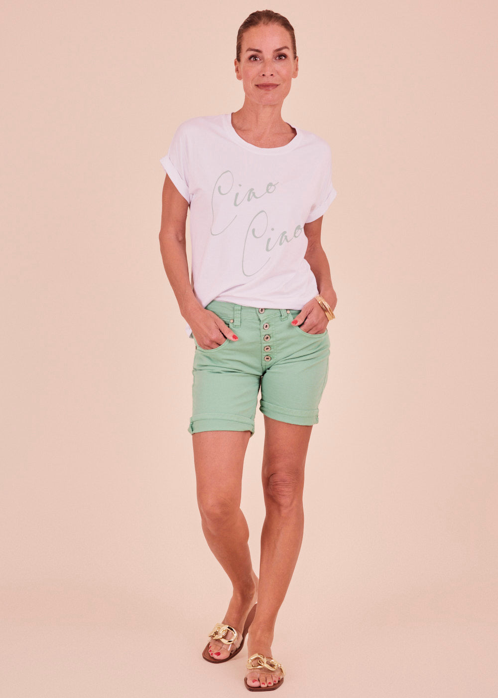 Yes, Please! Diese tolle Please-Shorts passt sich durch ihre außergewöhnliche Stretch-Qualität perfekt an deine Figur an und lässt dich den Alltag bequem meistern! Die mittlere Leibhöhe sorgt für einen sicheren Sitz der Hose etwas unterhalb des Bauchnabels. Sie hat einen Reißverschluss und das bekannte Metallherz auf der hinteren Gesäßtasche. Darüber hinaus kann sie ganz individuell von der Länge variiert werden.