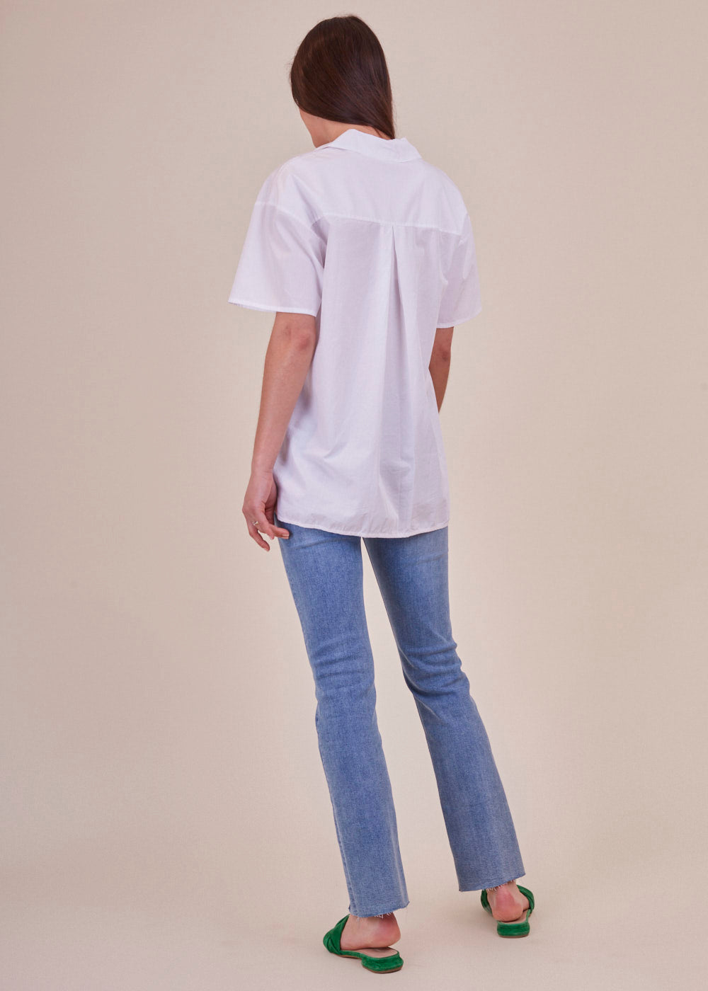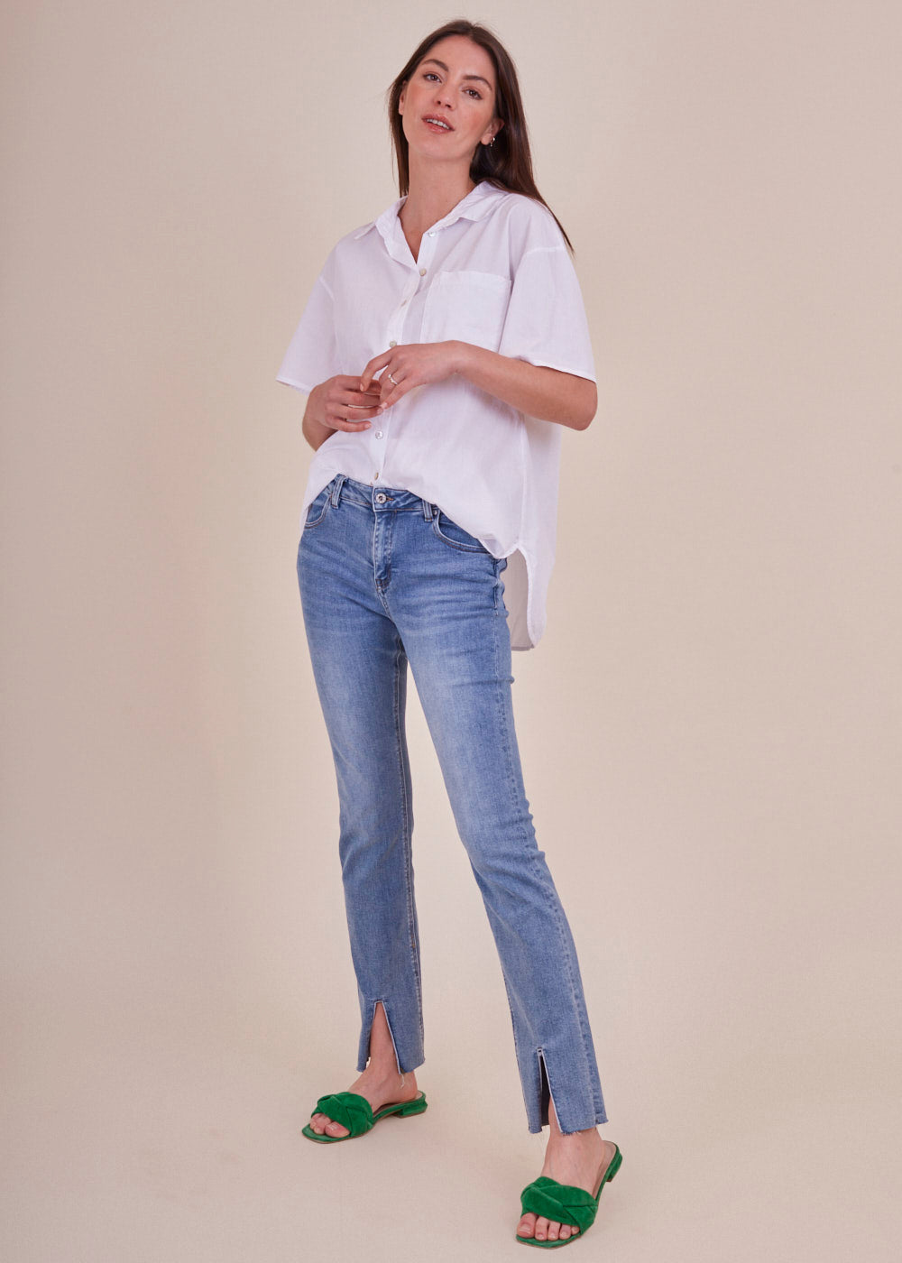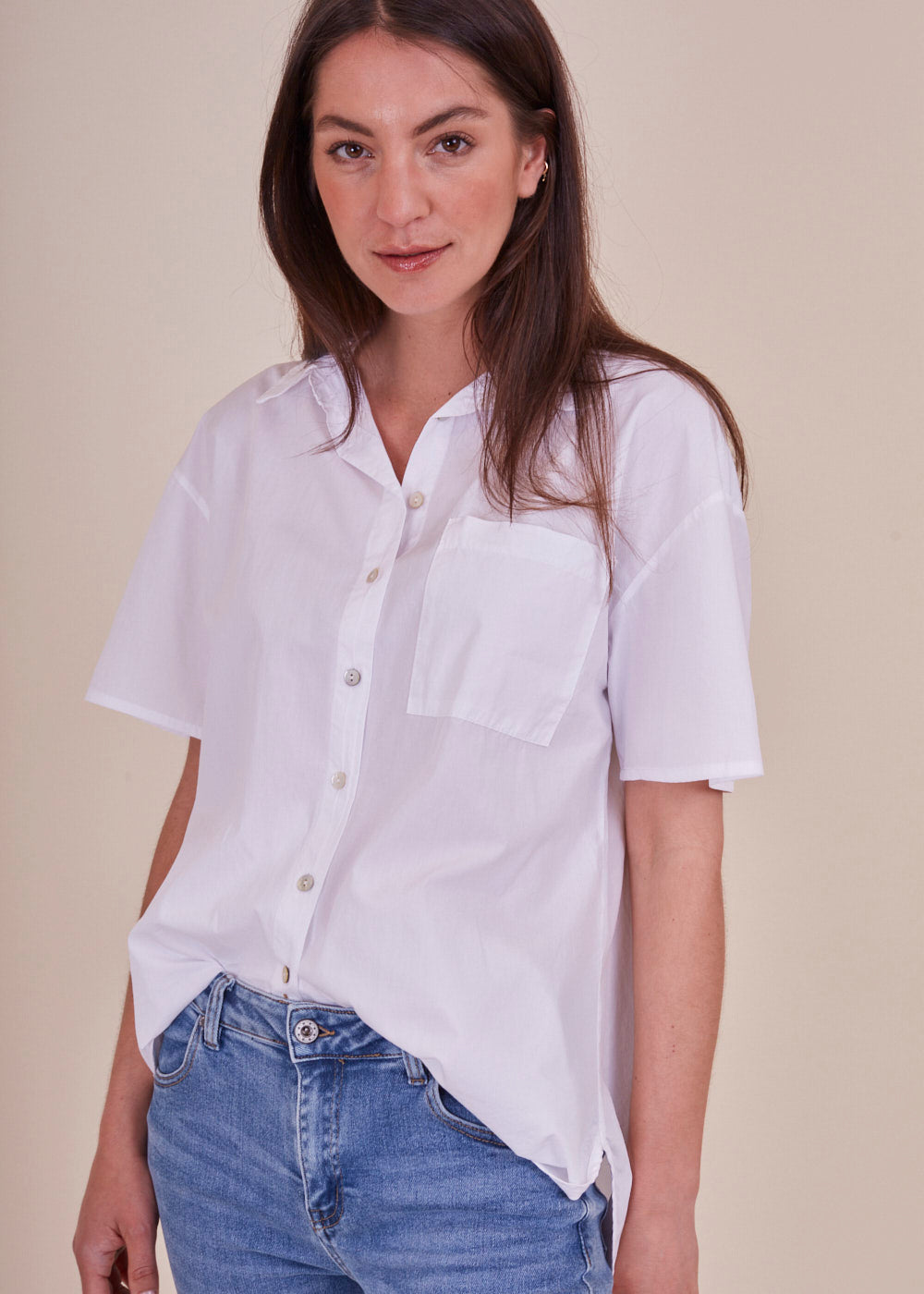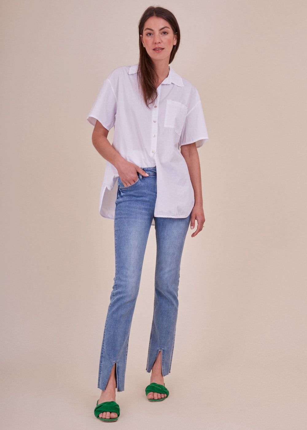 Lässig geschnittene halbarm Bluse mit verlängertem Rückenteil. Die durchgehend geknöpfte Hemdbluse mit Brusttasche und leicht überschnittenen Schultern ist der perfekte Begleiter für den bevorstehenden Sommer. Durch ihre schlichte Uni Farbe ist diese Bluse ein wunderbarer Kombinationsartikel, der nur darauf wartet, von dir gestylt zu werden.