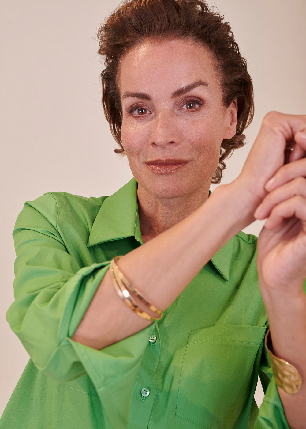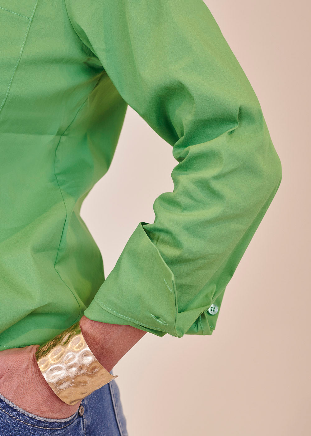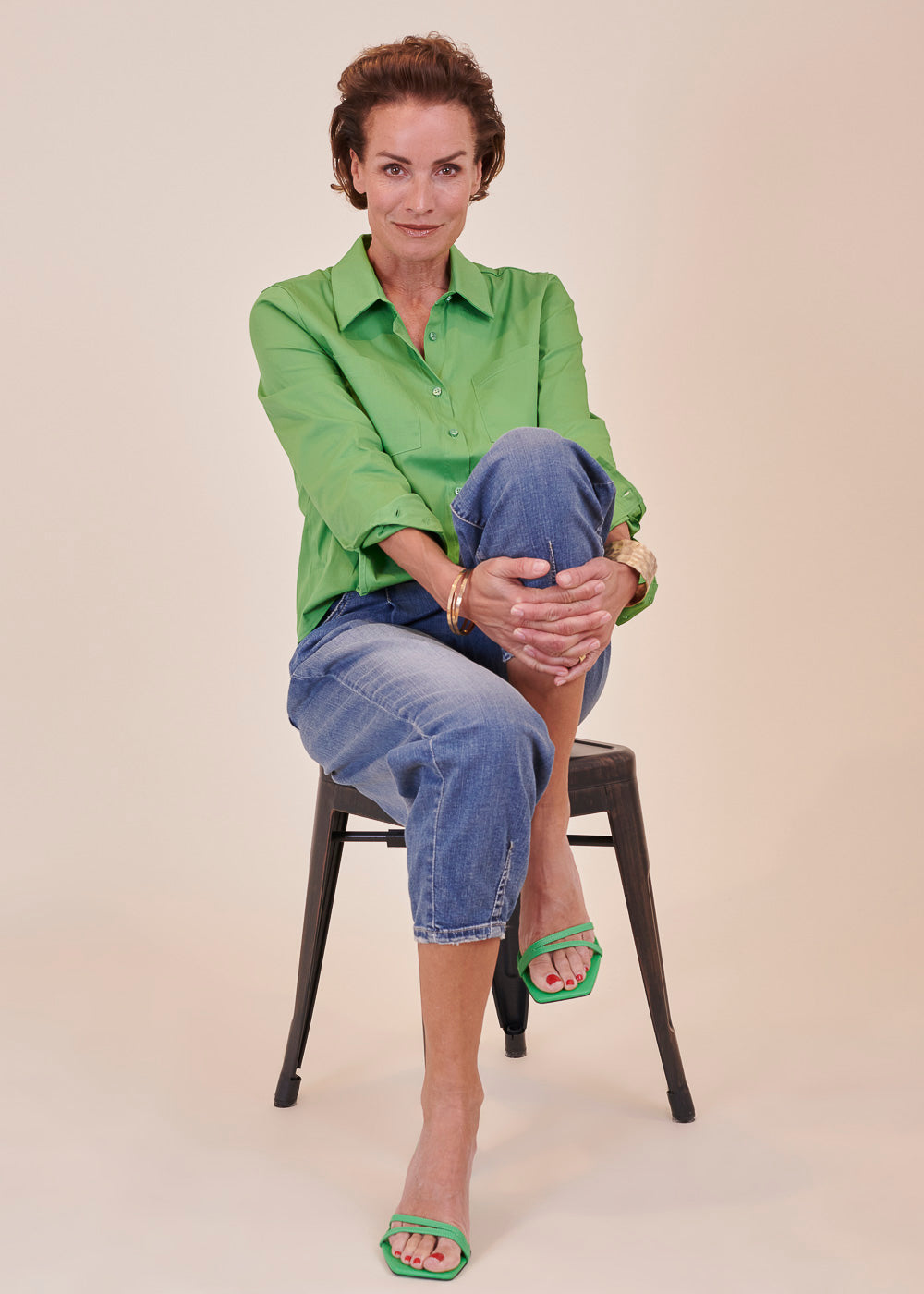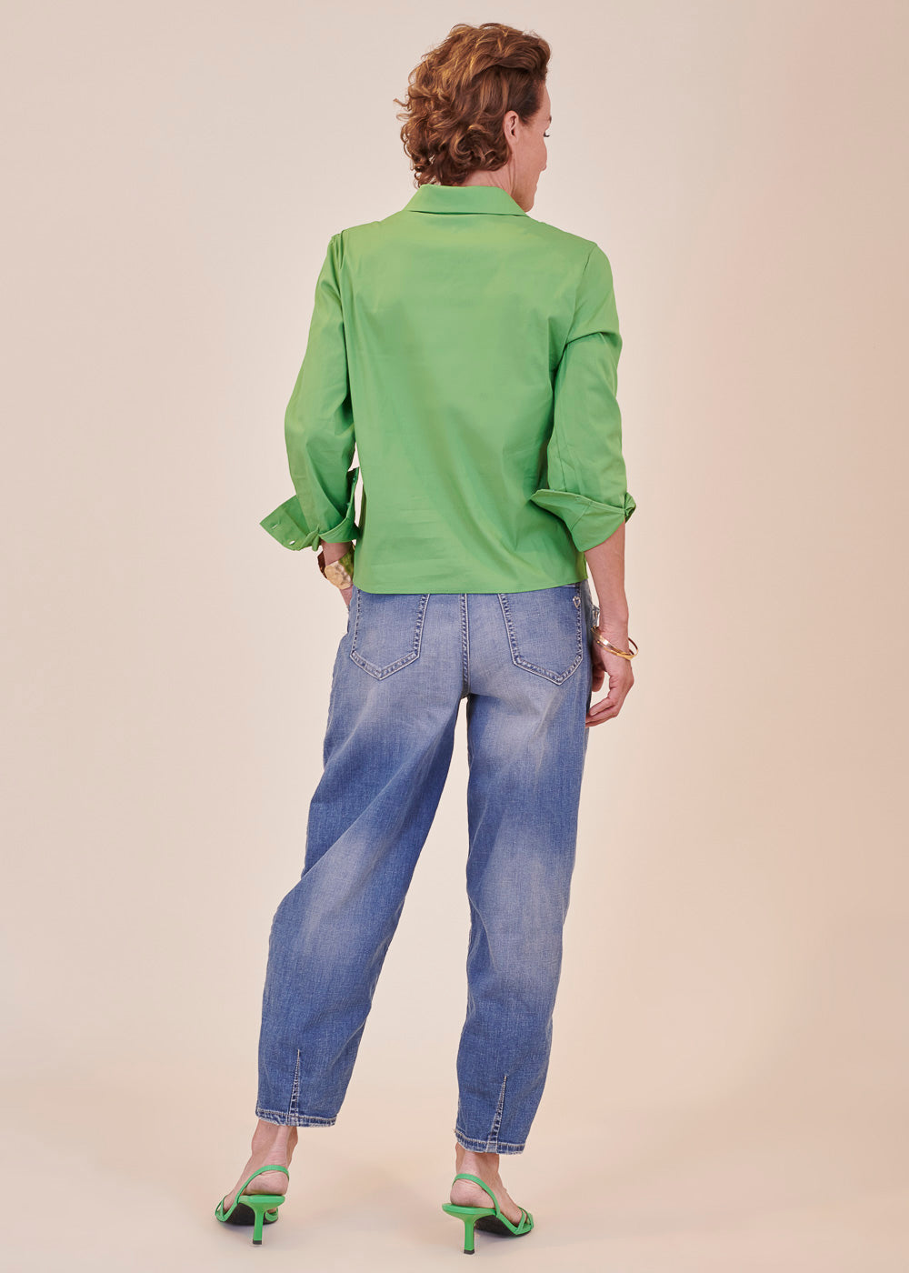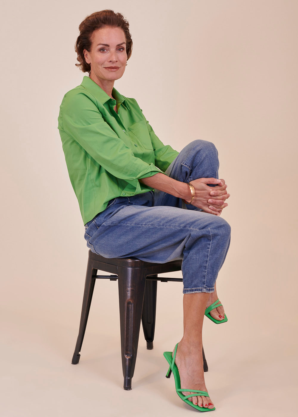 VERDE! Die Bluse gehört schon jetzt in deinen Kleiderschrank. Der kurze Schnitt, eignet sich besonders gut zu unseren höher geschnittenen Hosen. Einfach perfekt zu kombinieren.