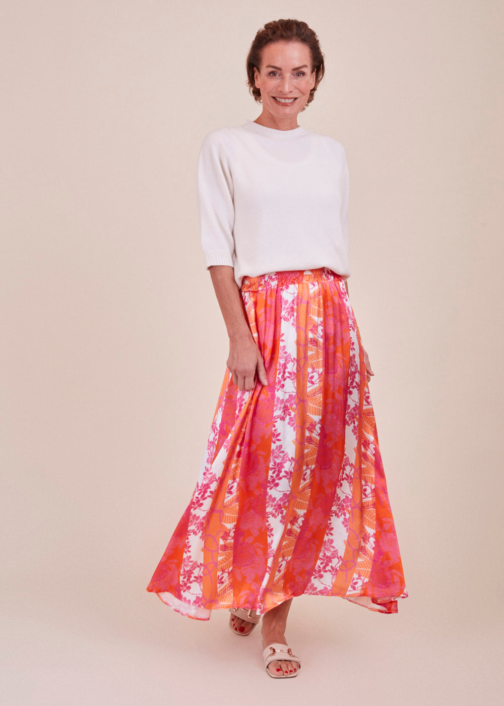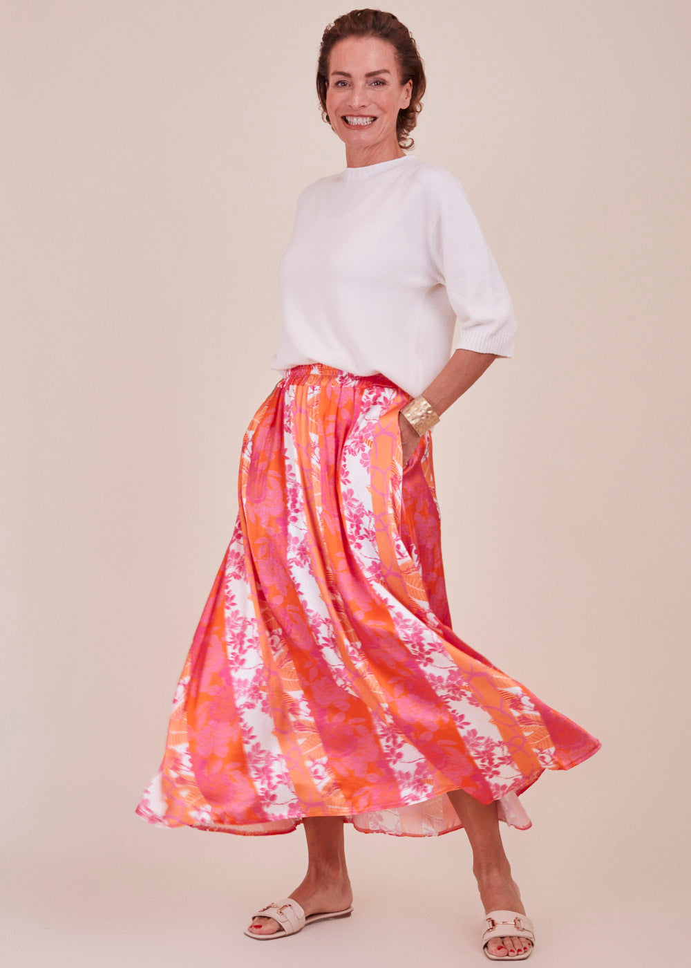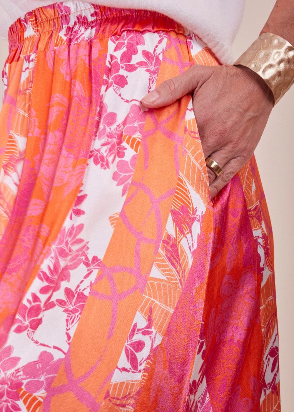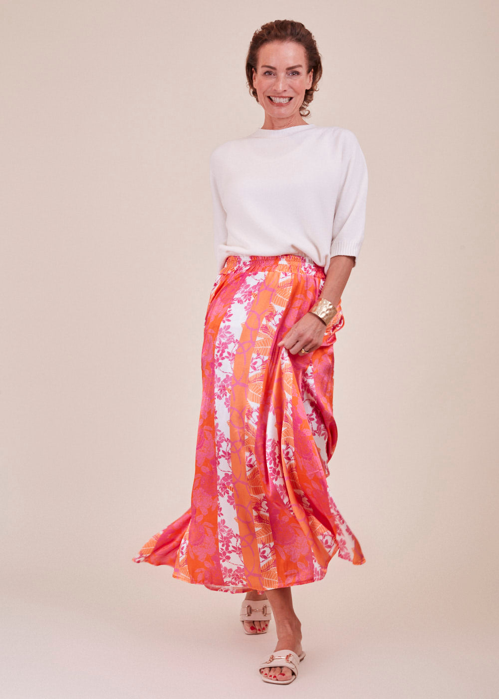 Diesen fließenden Rock im Print Design kannst du bestimmt nur schwer widerstehen. Der individuelle Print sorgt immer wieder für Eyecatcher-Qualitäten. Dabei trägt sich das geraffte Bündchen und das weich fließende Material zusätzlich sehr angenehm. Durch seinen Gummizug ist er besonders bequem in der Passform. Ein perfekter Begleiter für heiße Tage in der Strandbar.