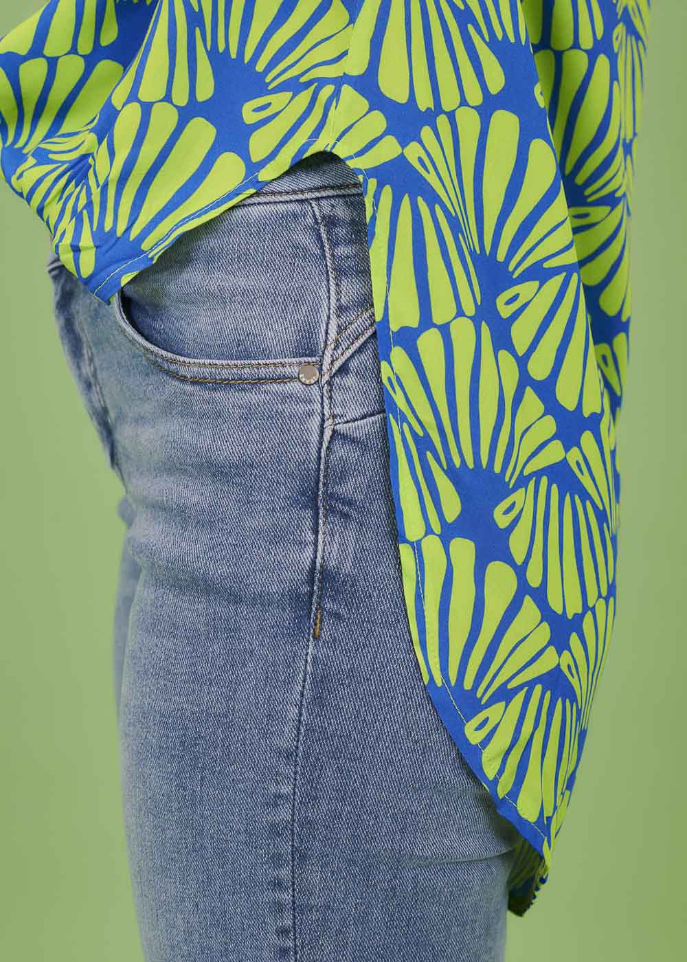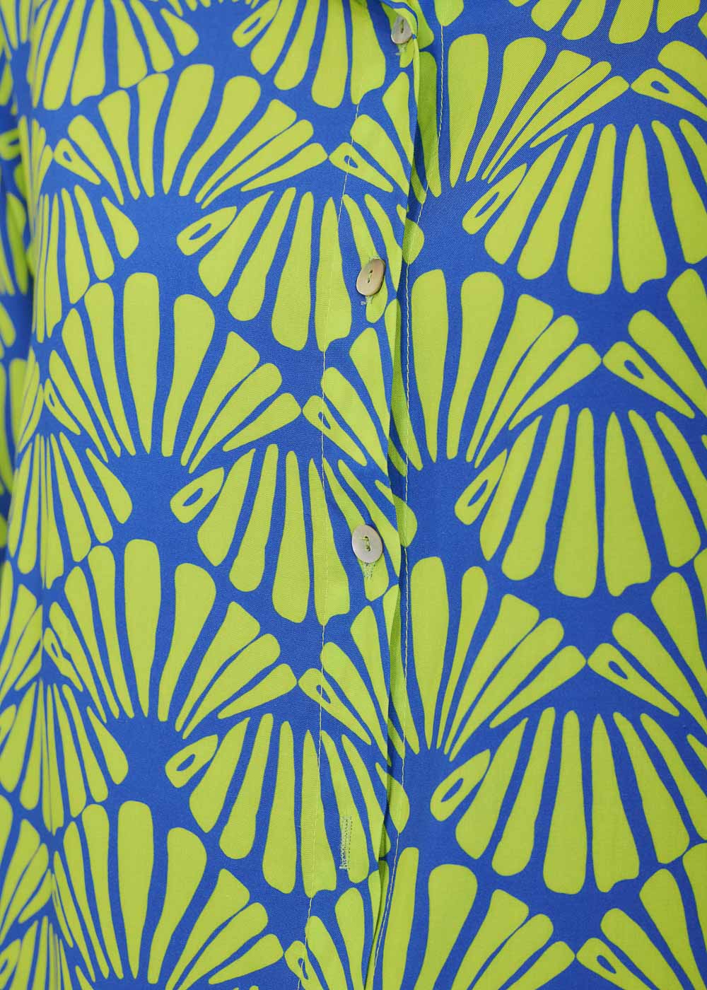 Wir lieben Print! Diese lässig fließende Viskosebluse in den neuen Trendfarben hat lange Ärmel mit überschnittenen Schultern. Durch ihr leichtes Viskosematerial hat sie einen angenehmen Tragekomfort. Sie hat durchgehende Knopfleiste. Ein absoluter Hingucker.